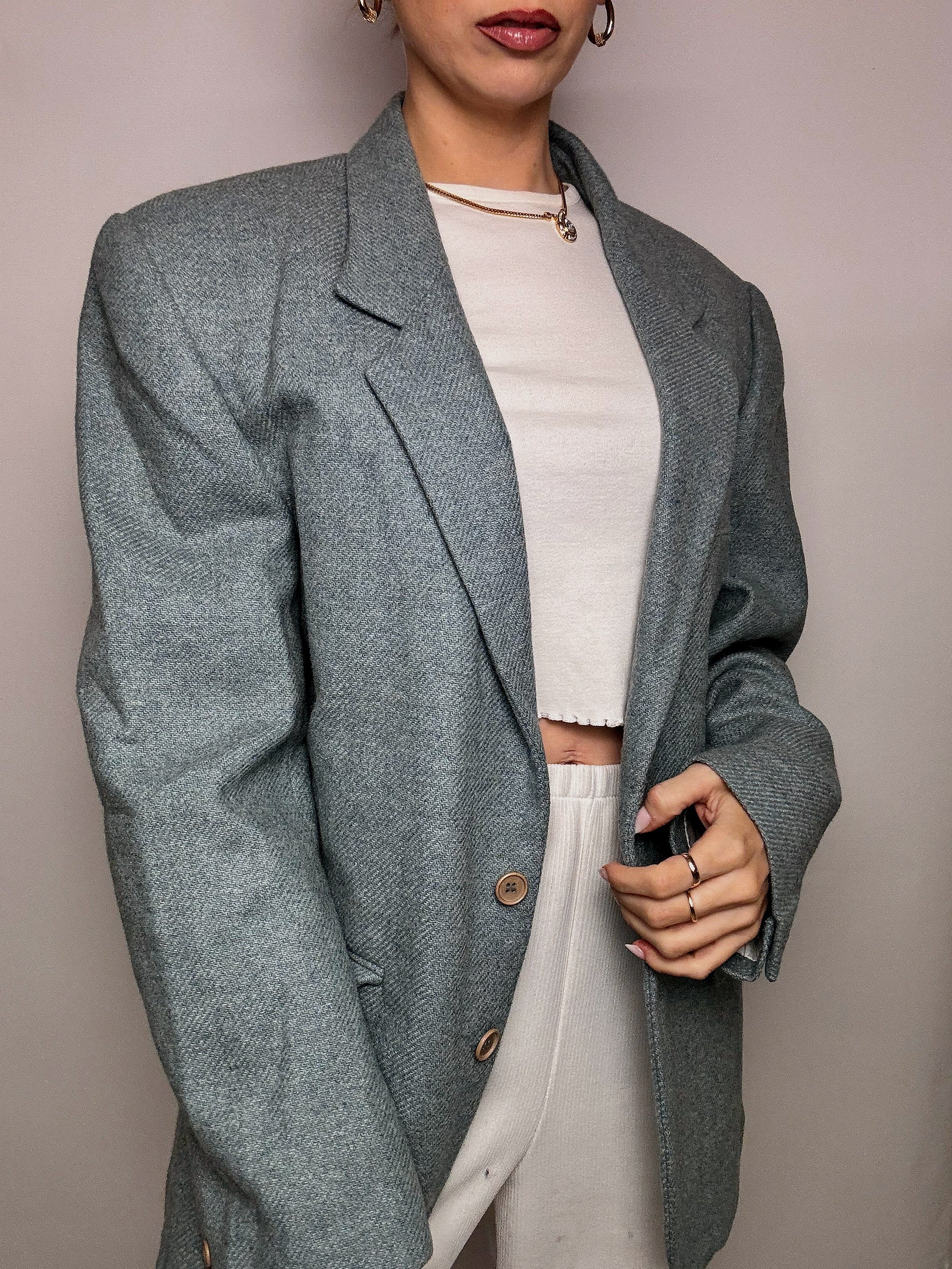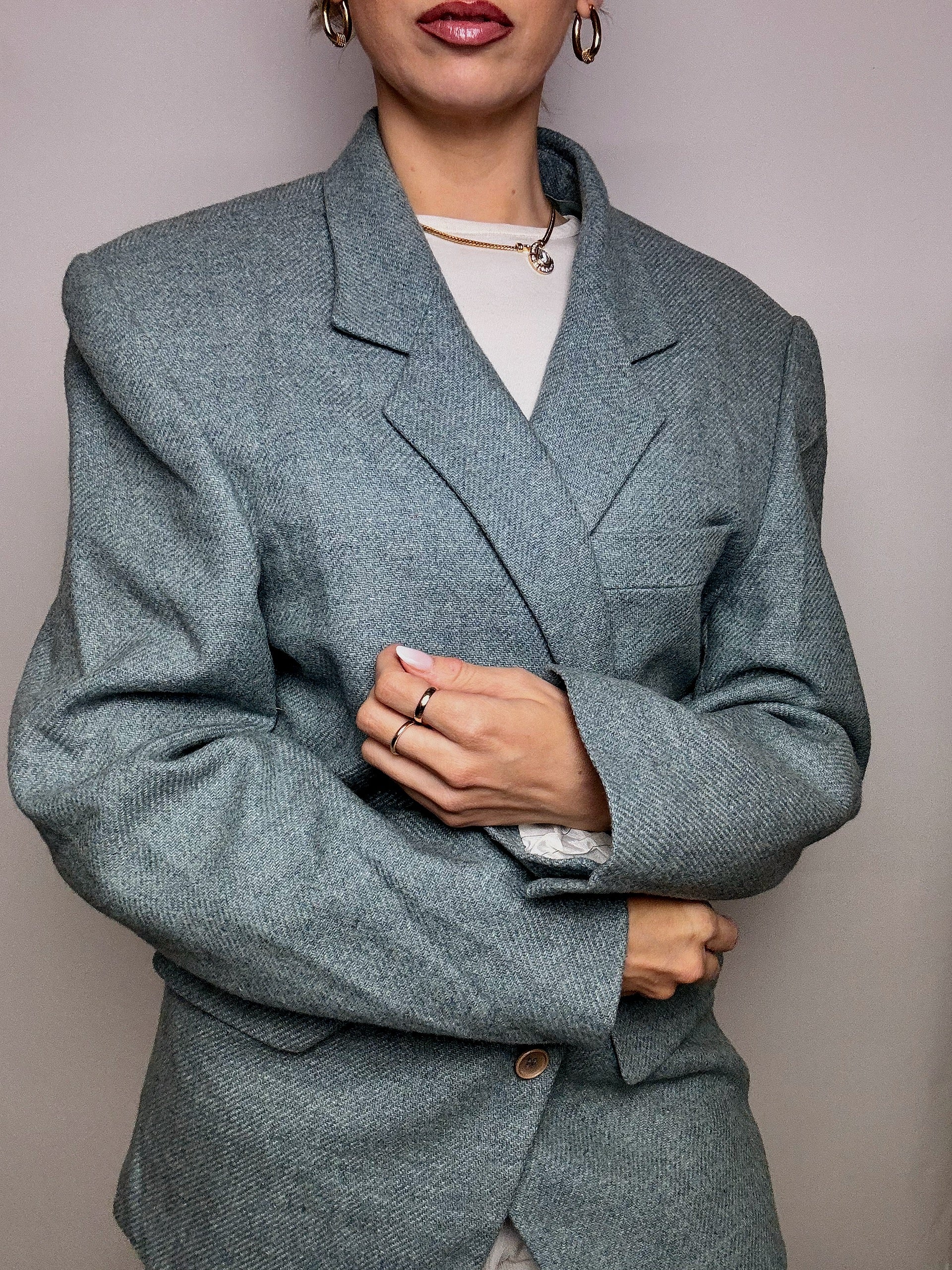 Vintage XL blaugrauer Wollblazer