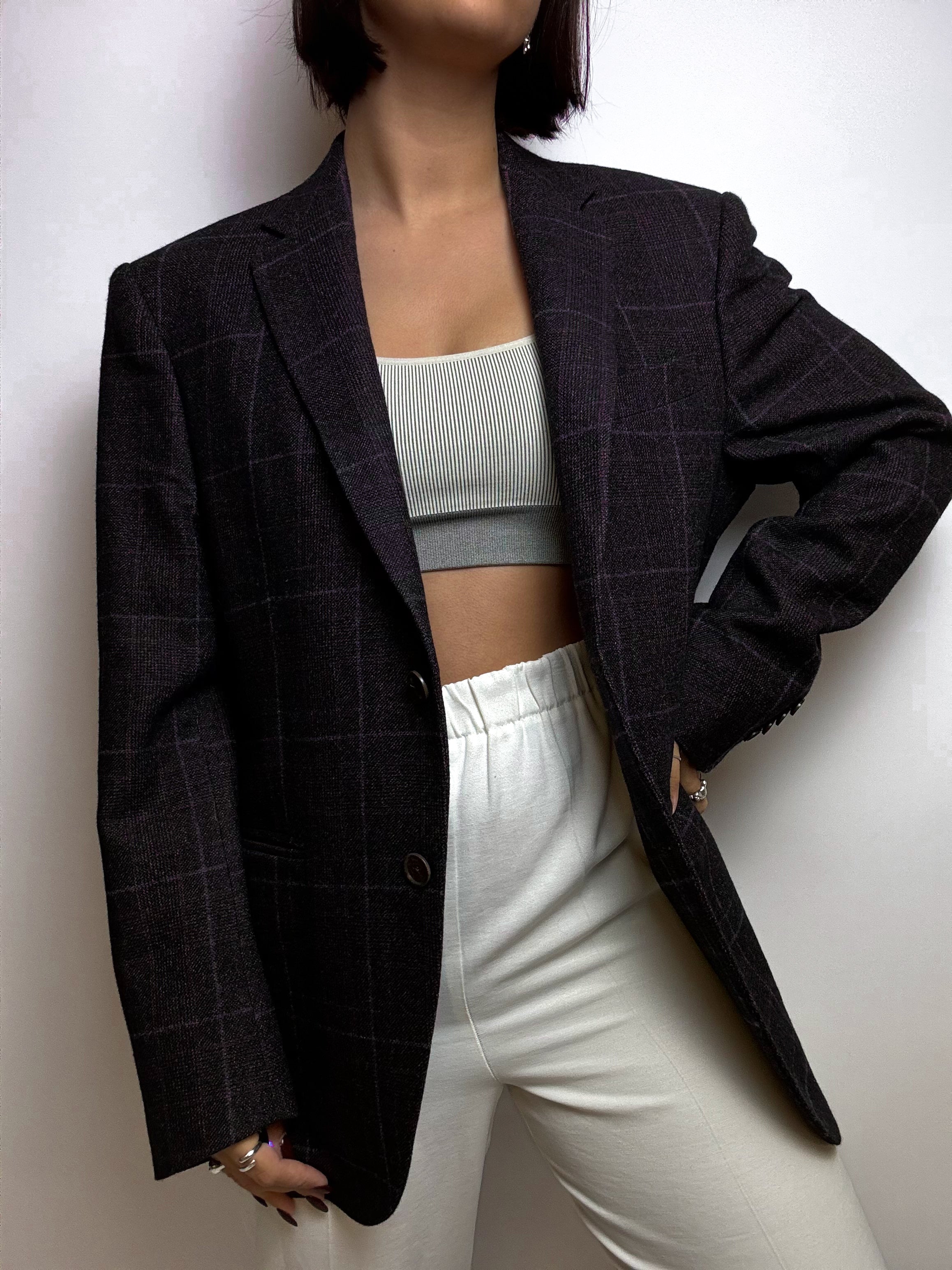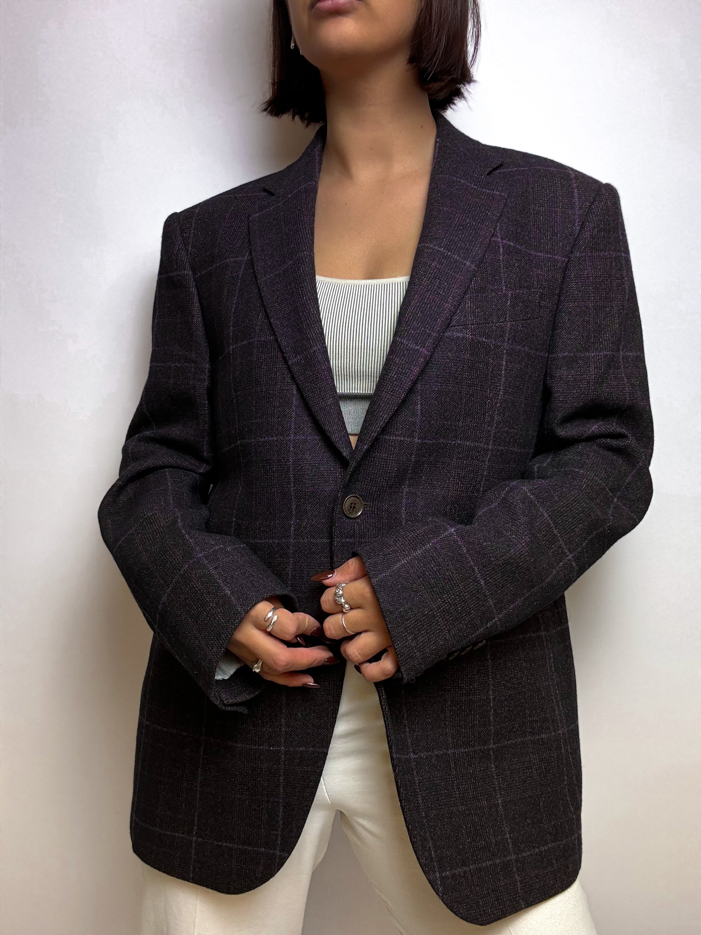 Vintage grauer und lila Wollblazer M