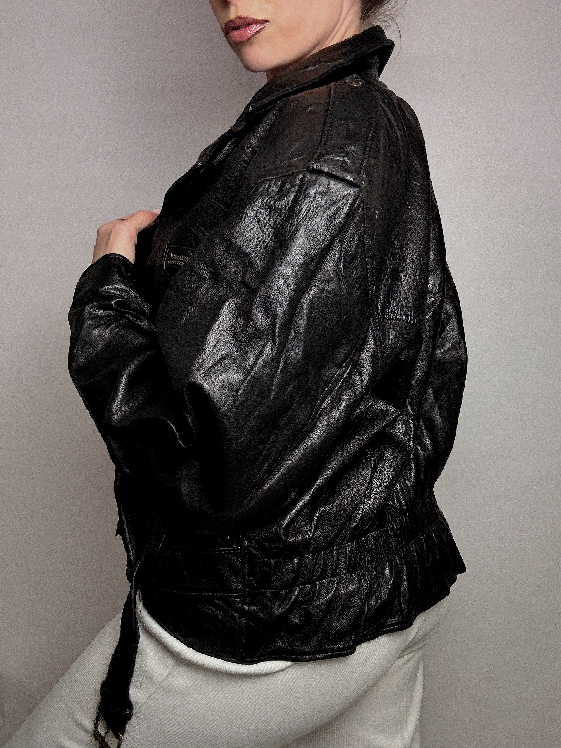 Eine Jacke, die Sie bereits in der Taille enger schnallen können und zu der ein Gürtel hinzugefügt wird, der ihr einen unendlich rockigen Look verleiht!