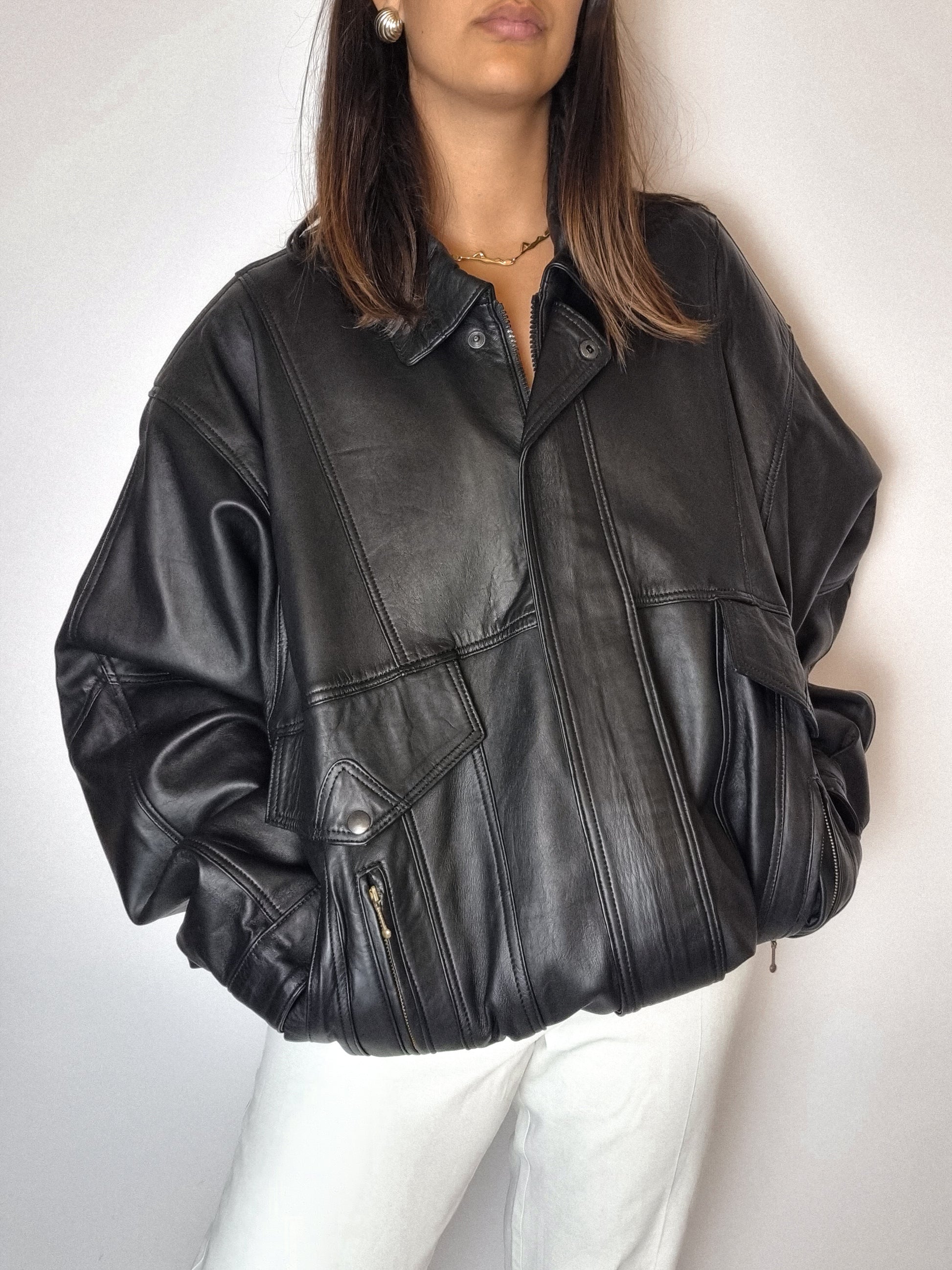 Vintage Bomberjacke aus schwarzem Leder M/L