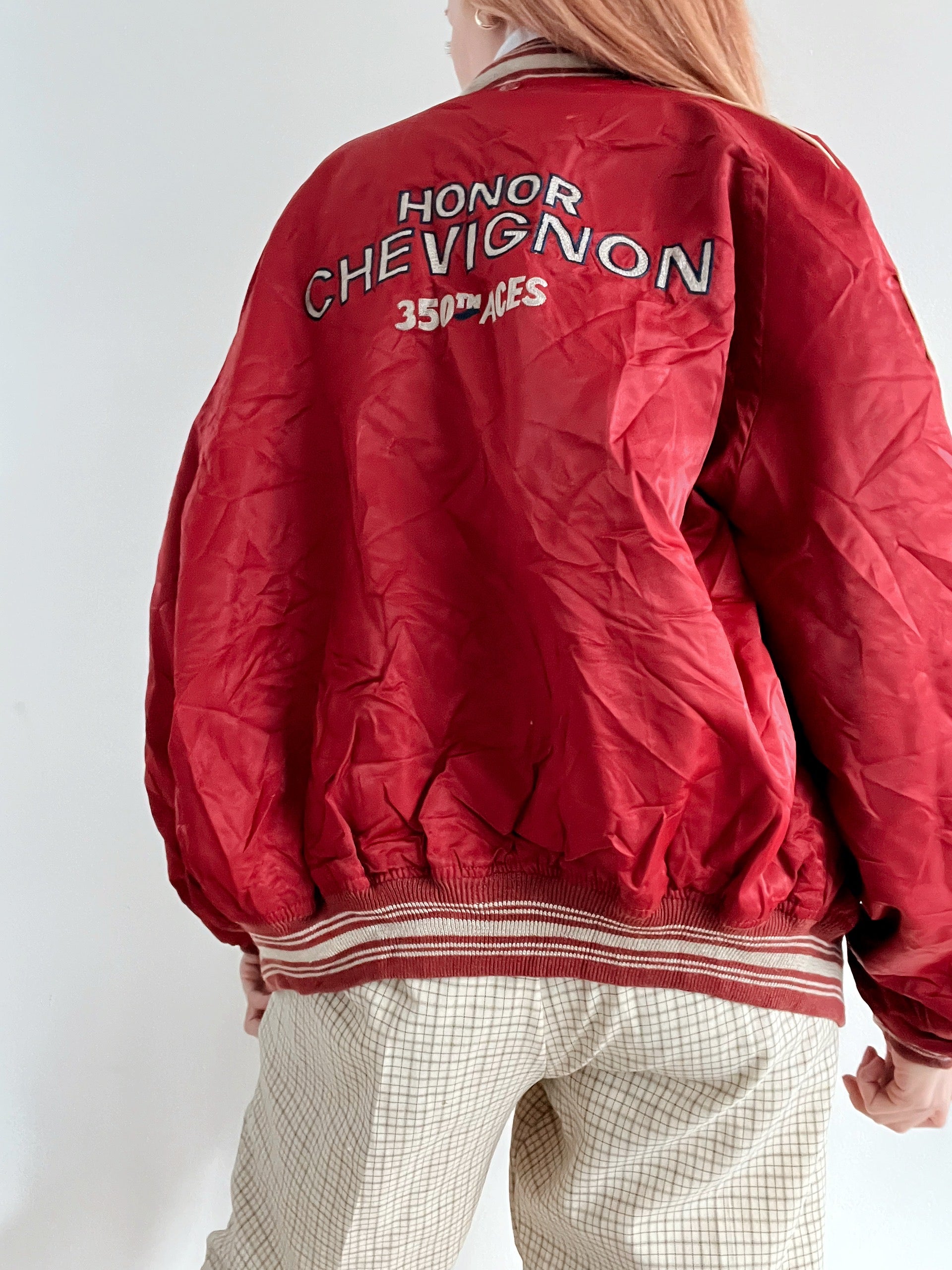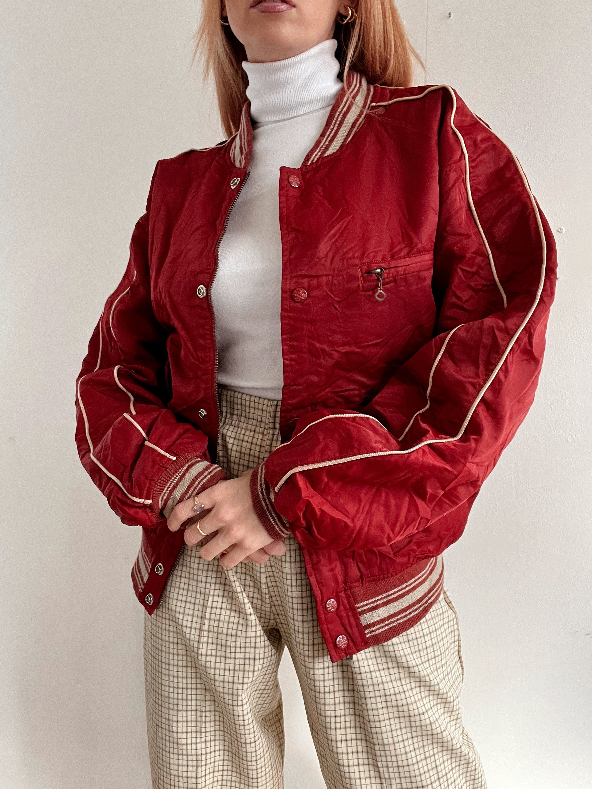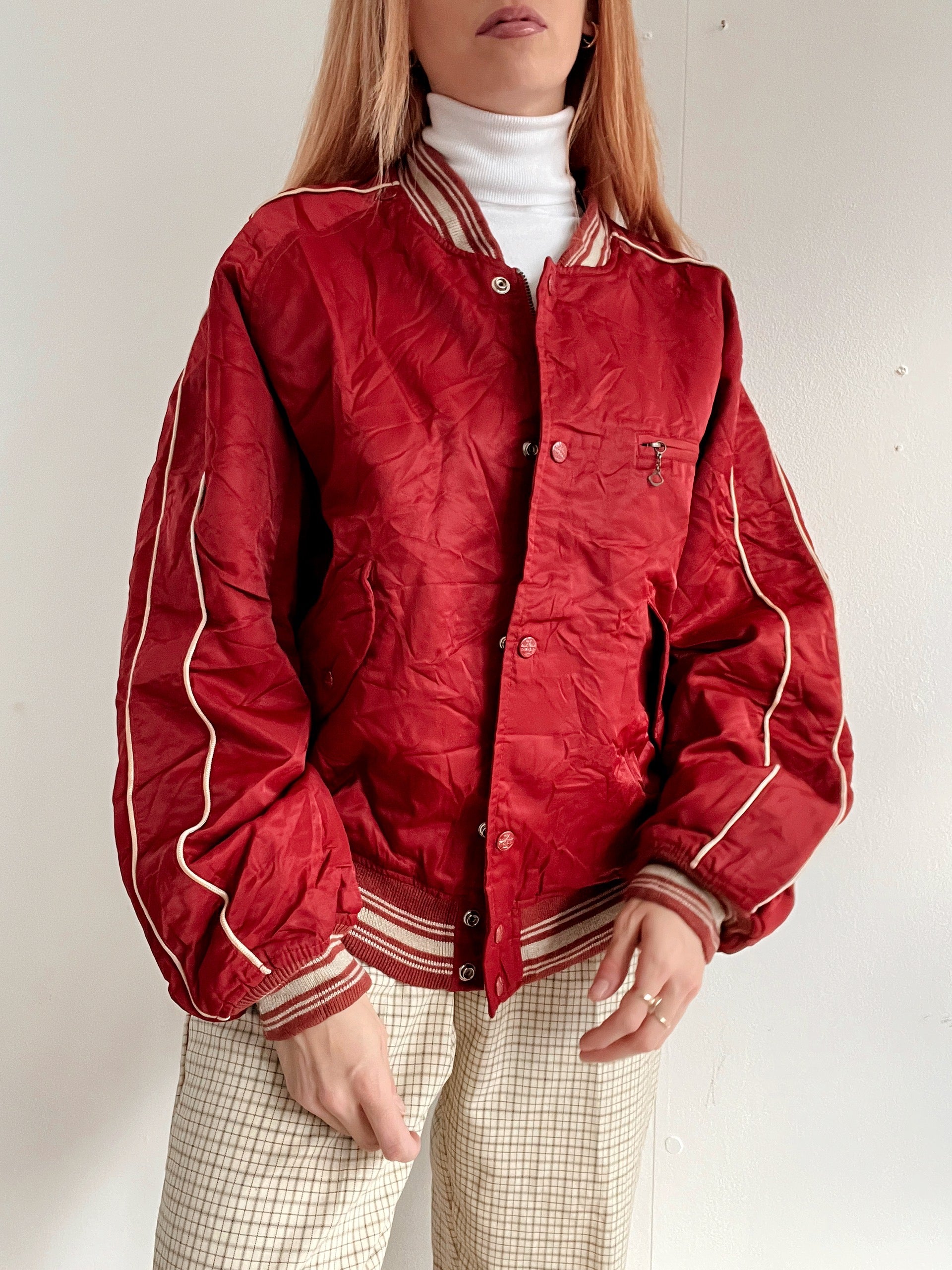 Amerikanische Vintage Bomberjacke glänzend rot L