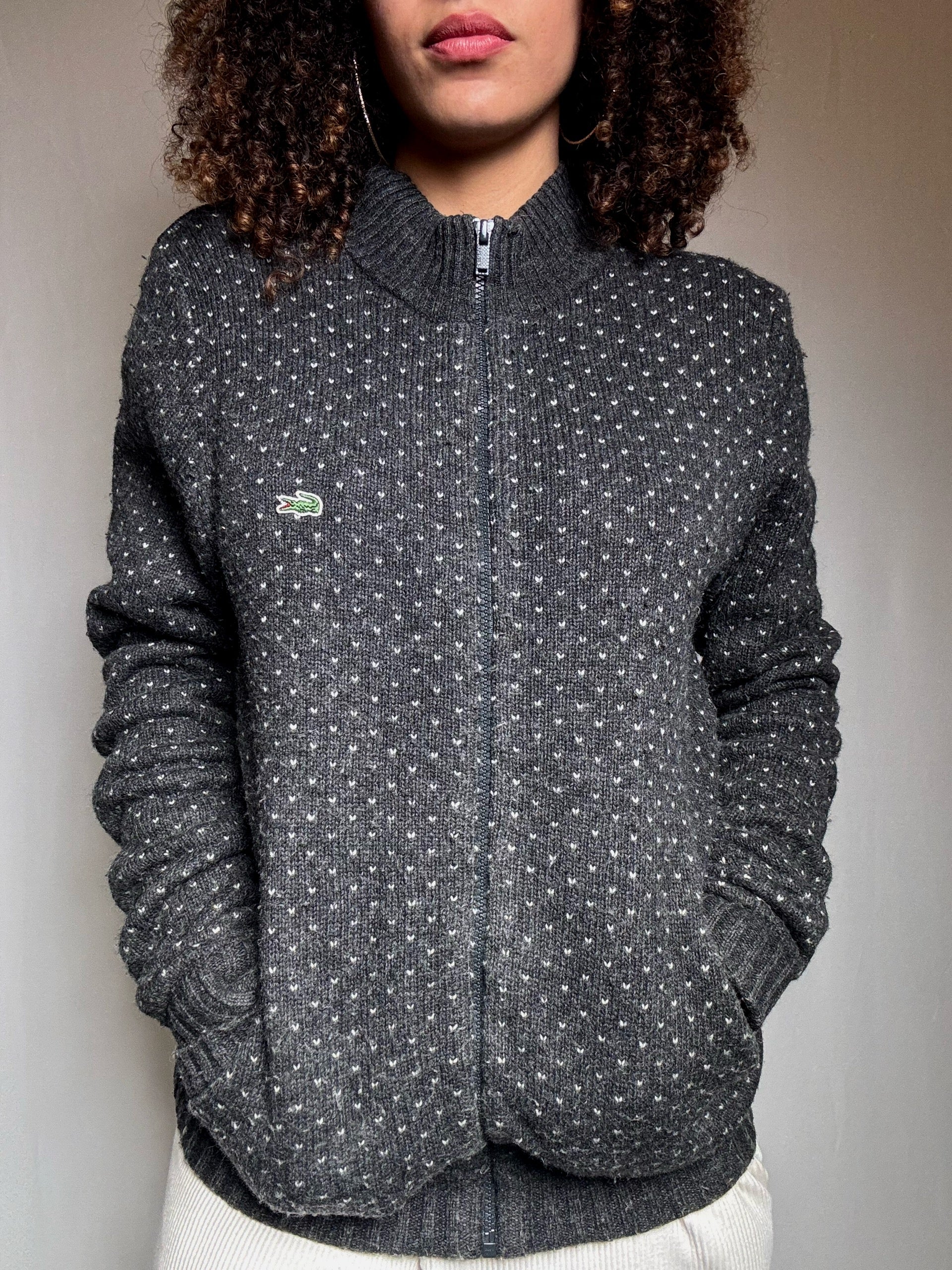 Cardigan zippé gris Lacoste M vintage