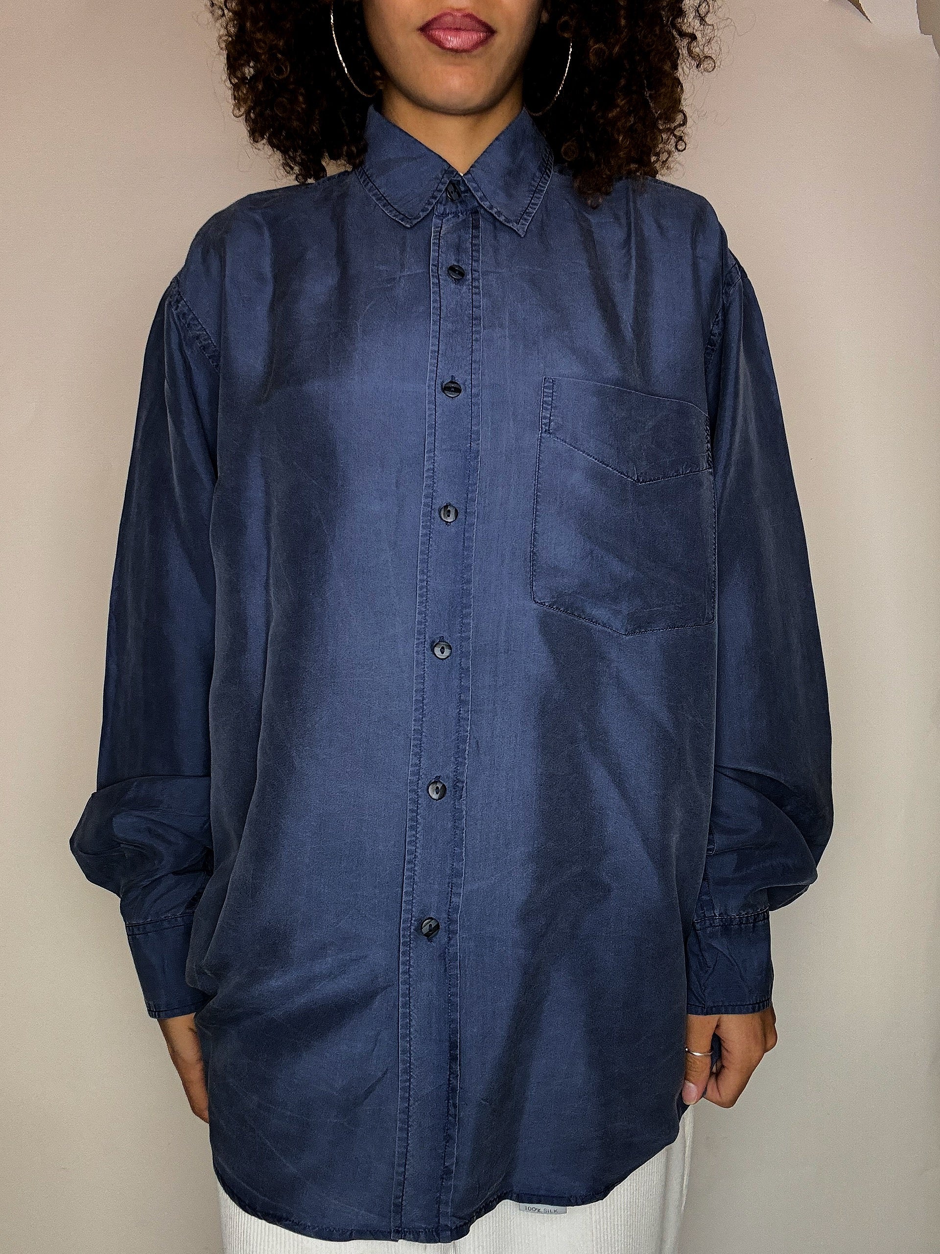 Vintage-Seidenhemd in Blaugrau, Größe M