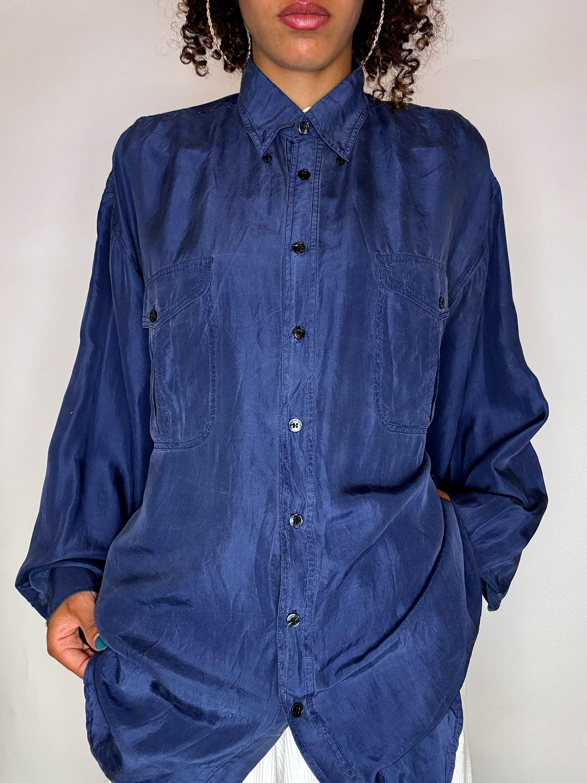 Vintage XL blaues Seidenhemd