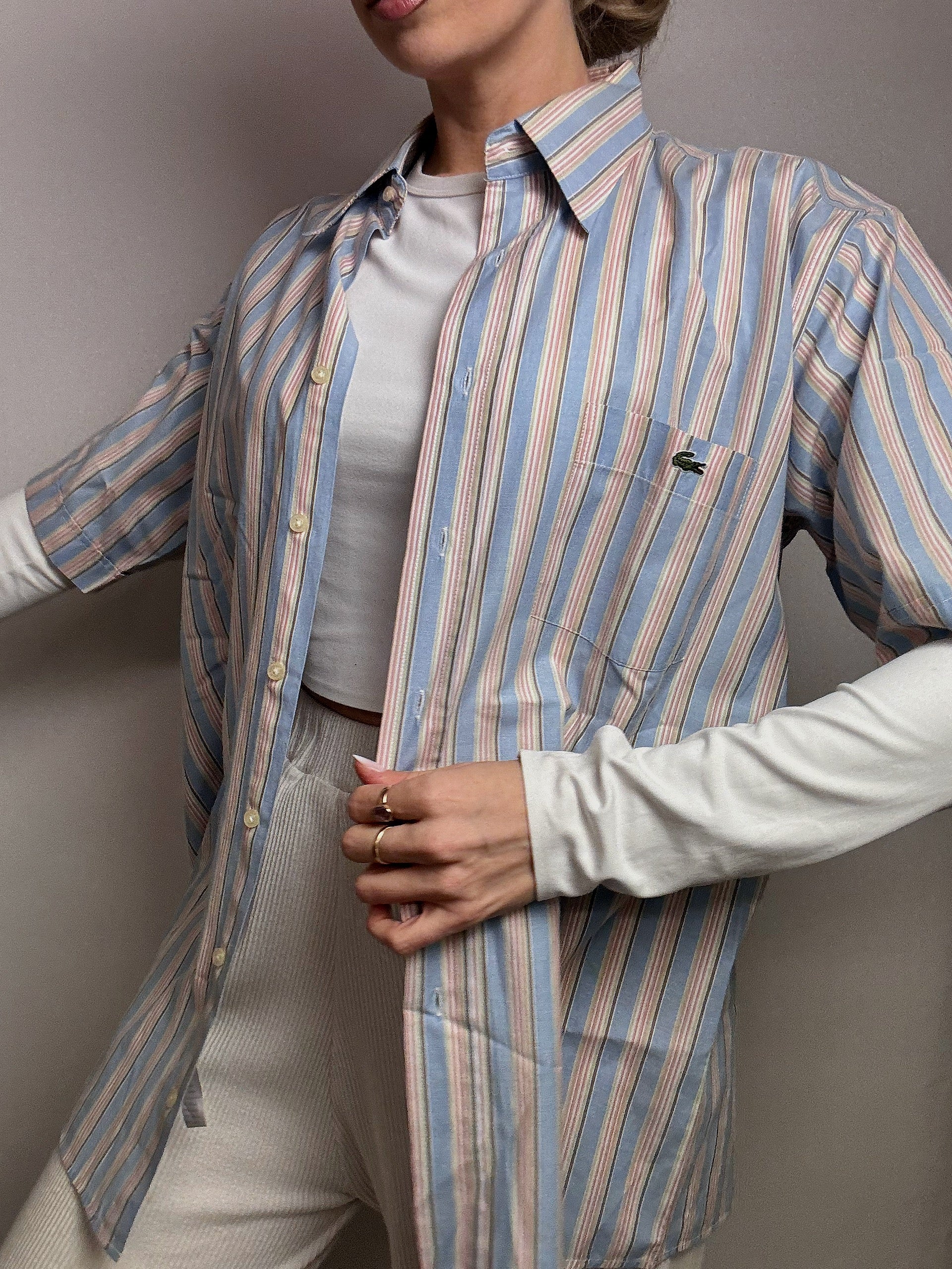 LACOSTE XL Vintage Pastell gestreiftes Hemd
