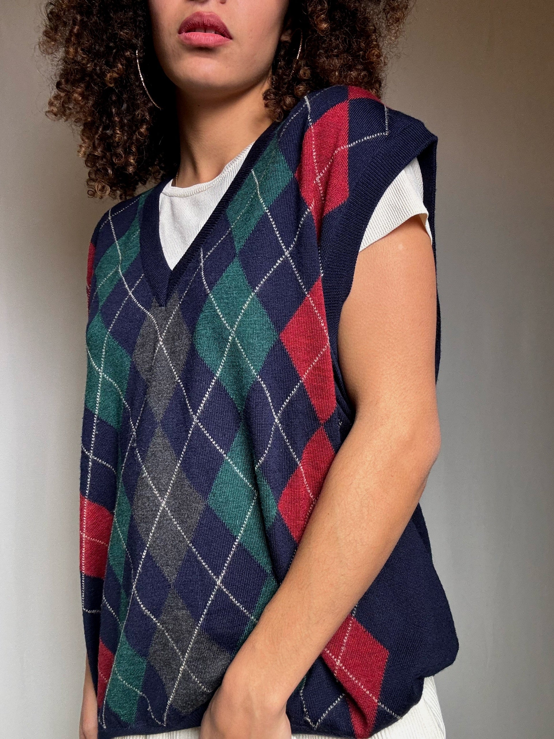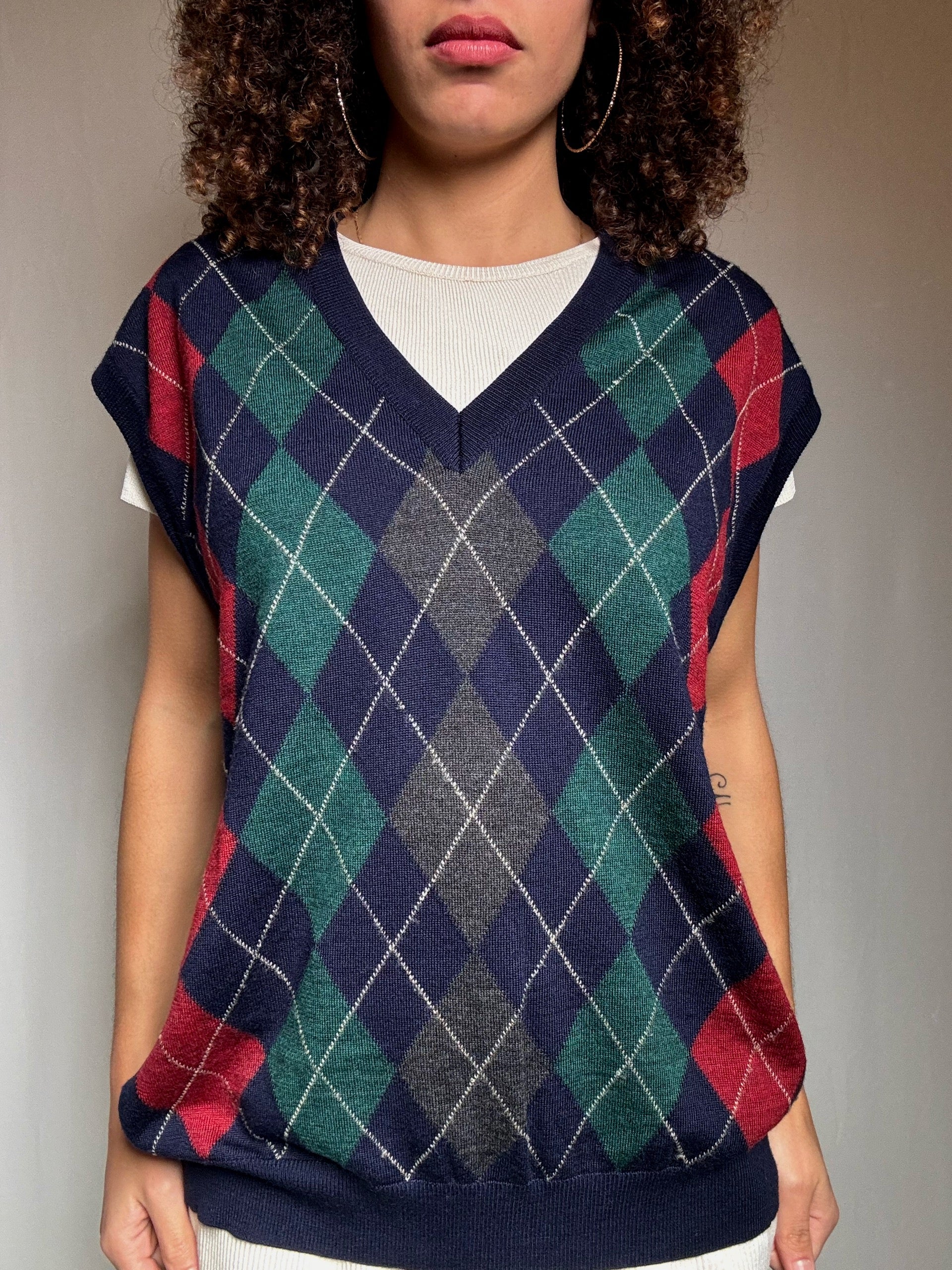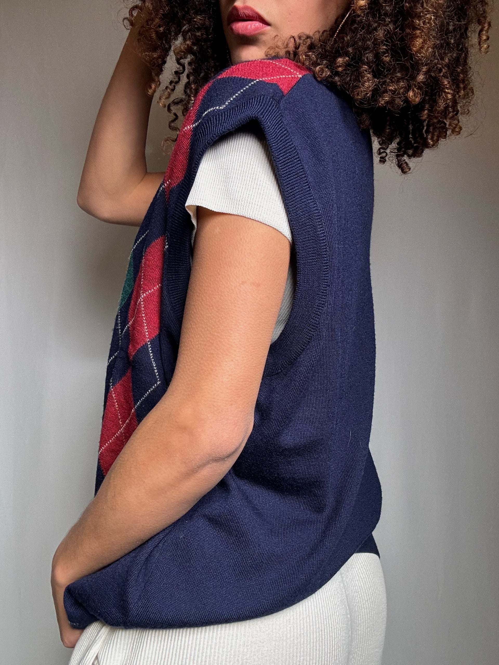 Gilet marine motif argyle XL vintage