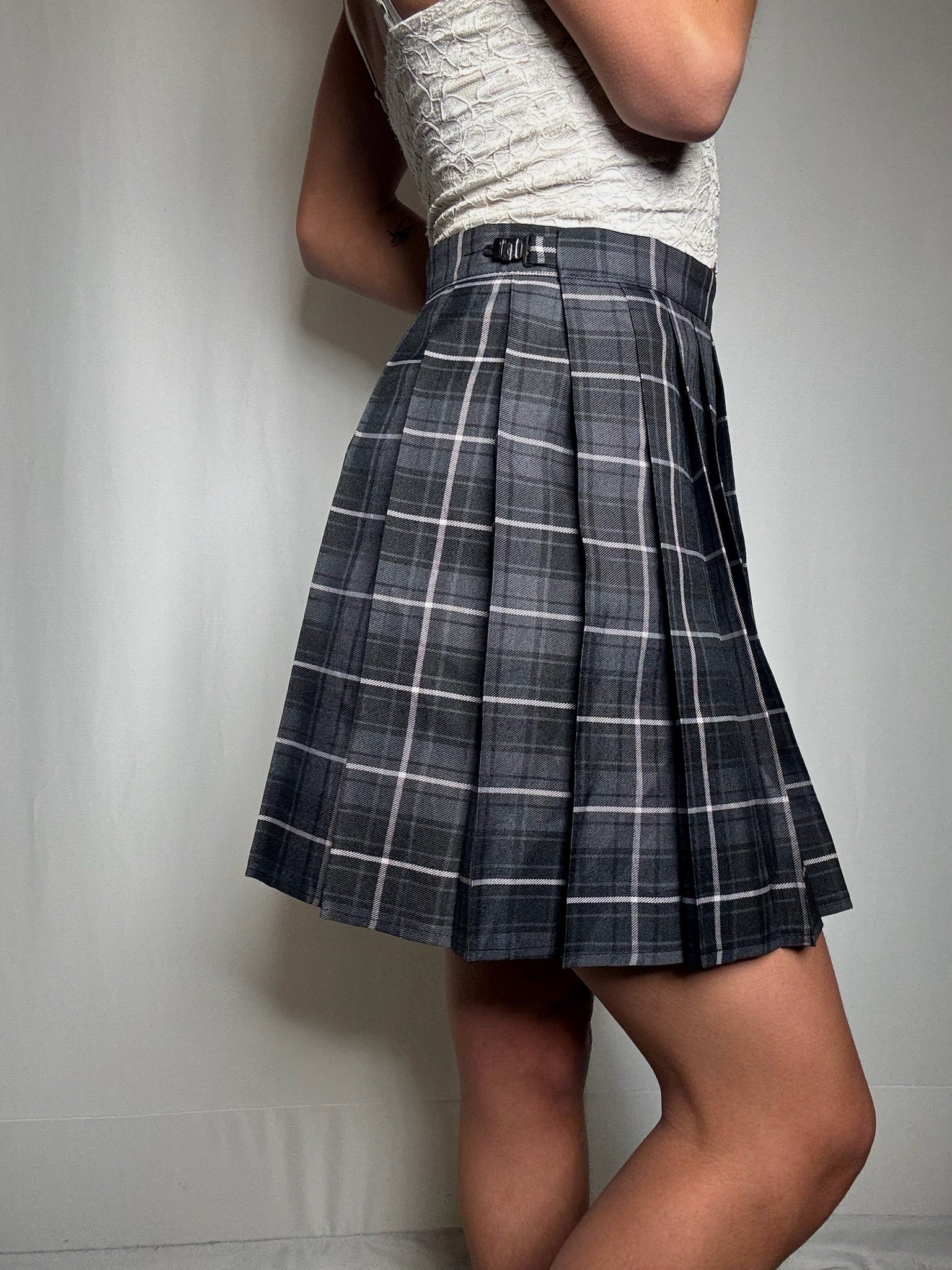 Jupe plissée à carreaux grise M vintage