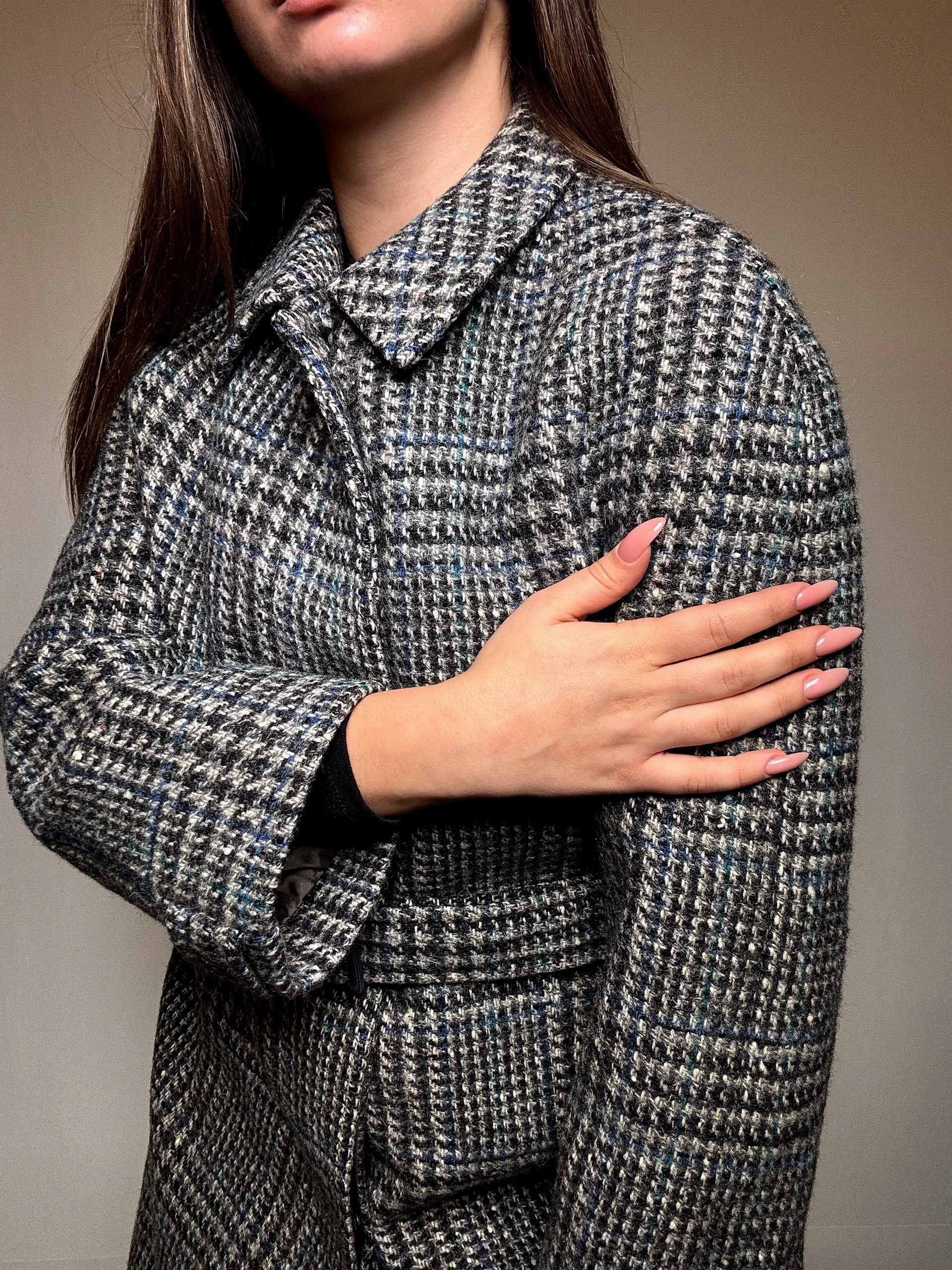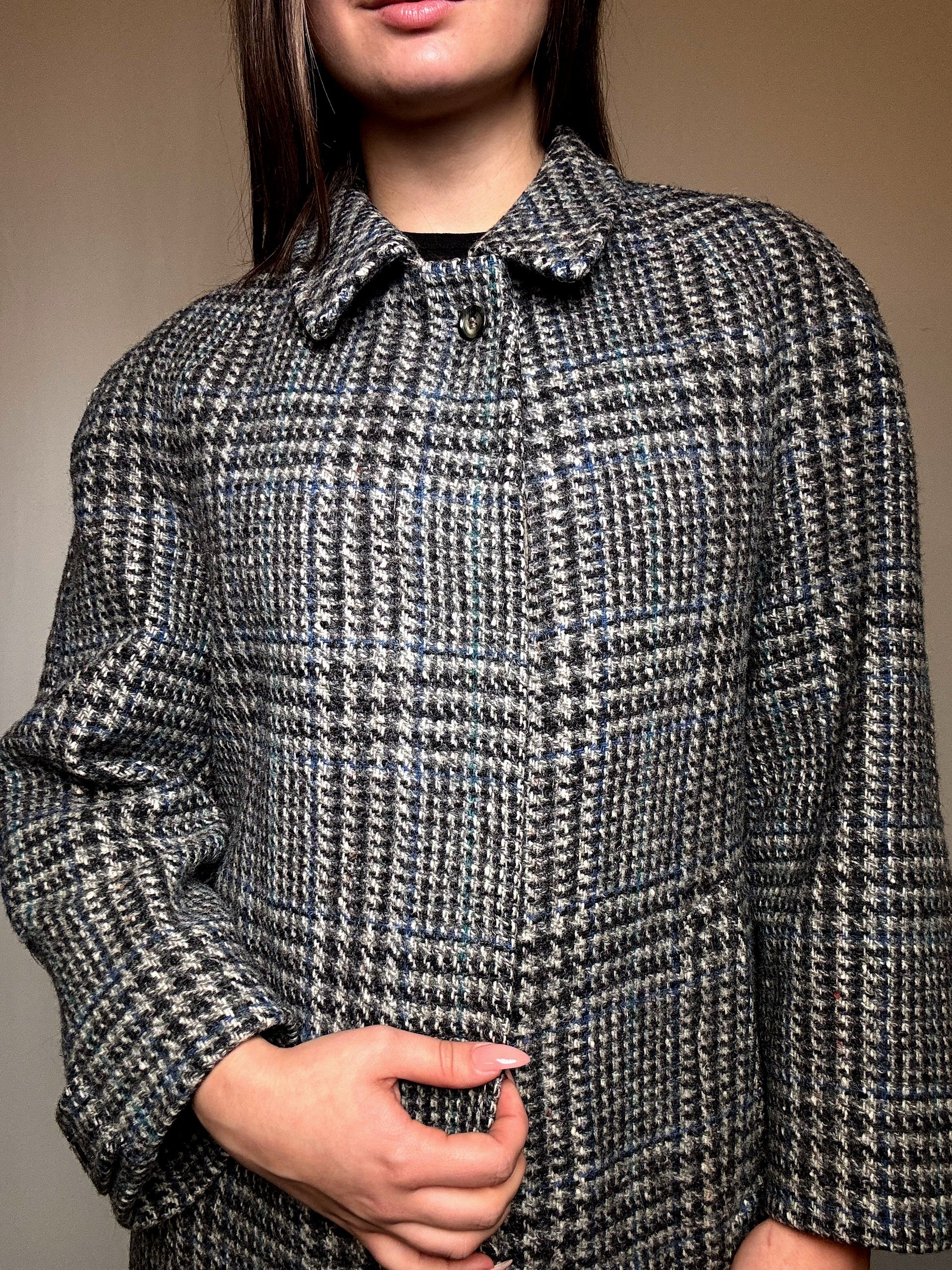 Manteau gris à carreaux M vintage