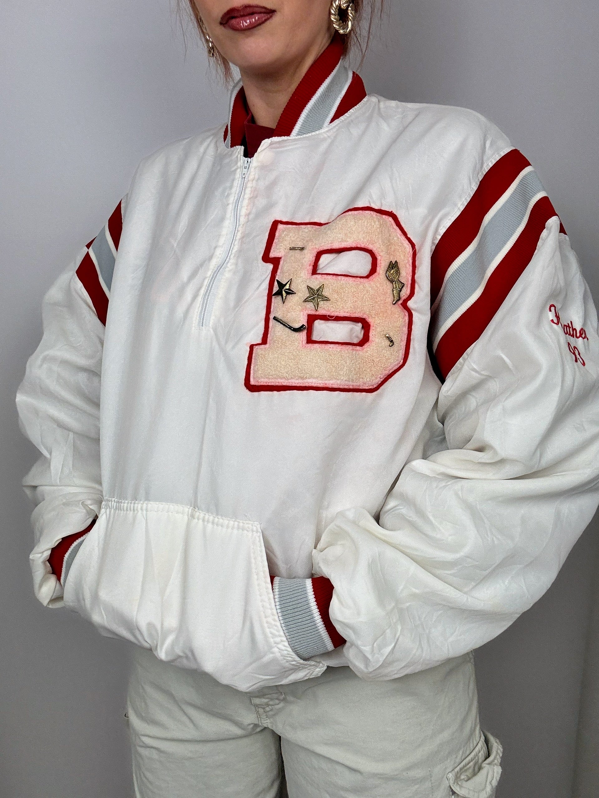 Rot/weiße amerikanische Bomberjacke Vintage XL