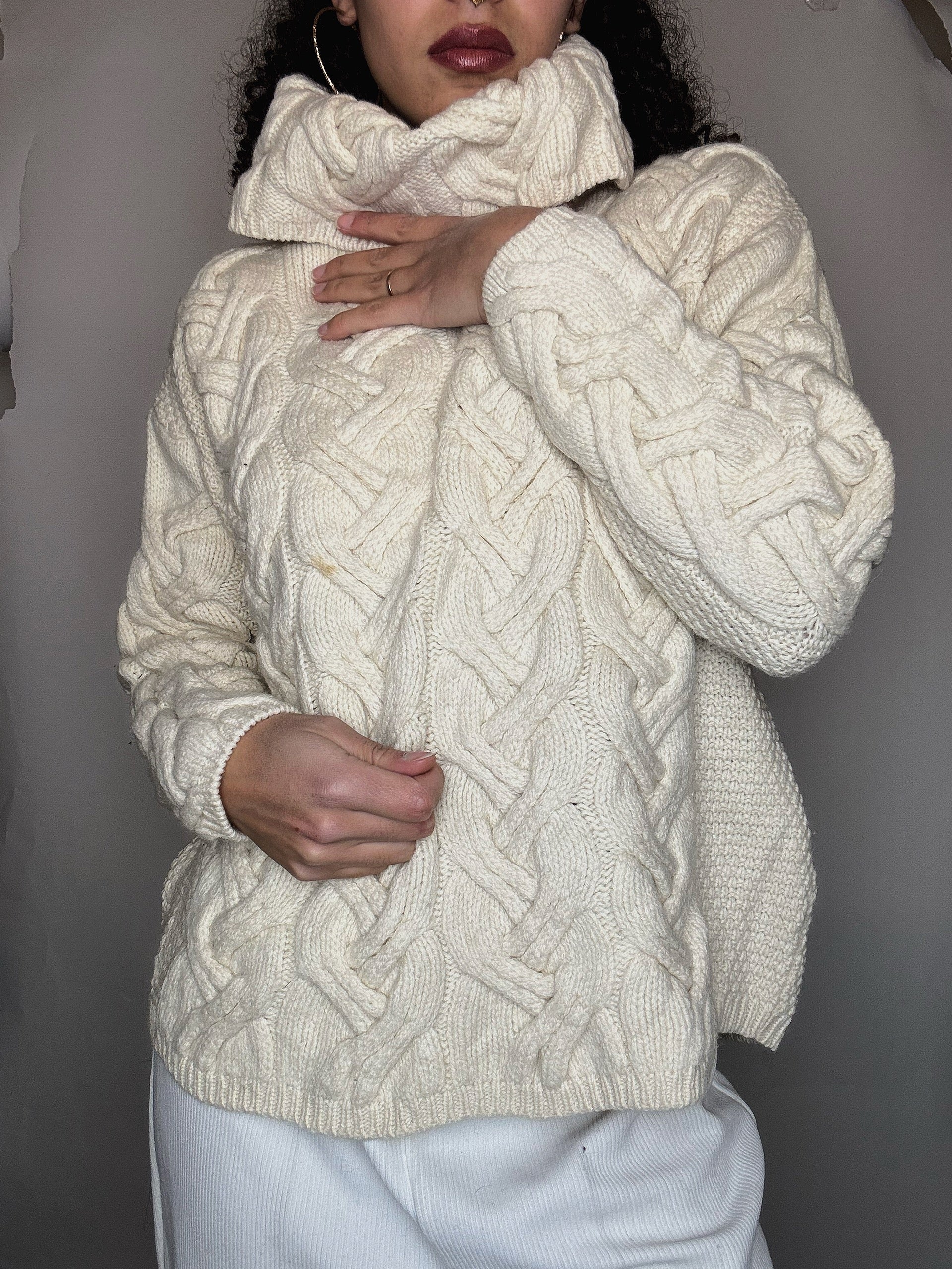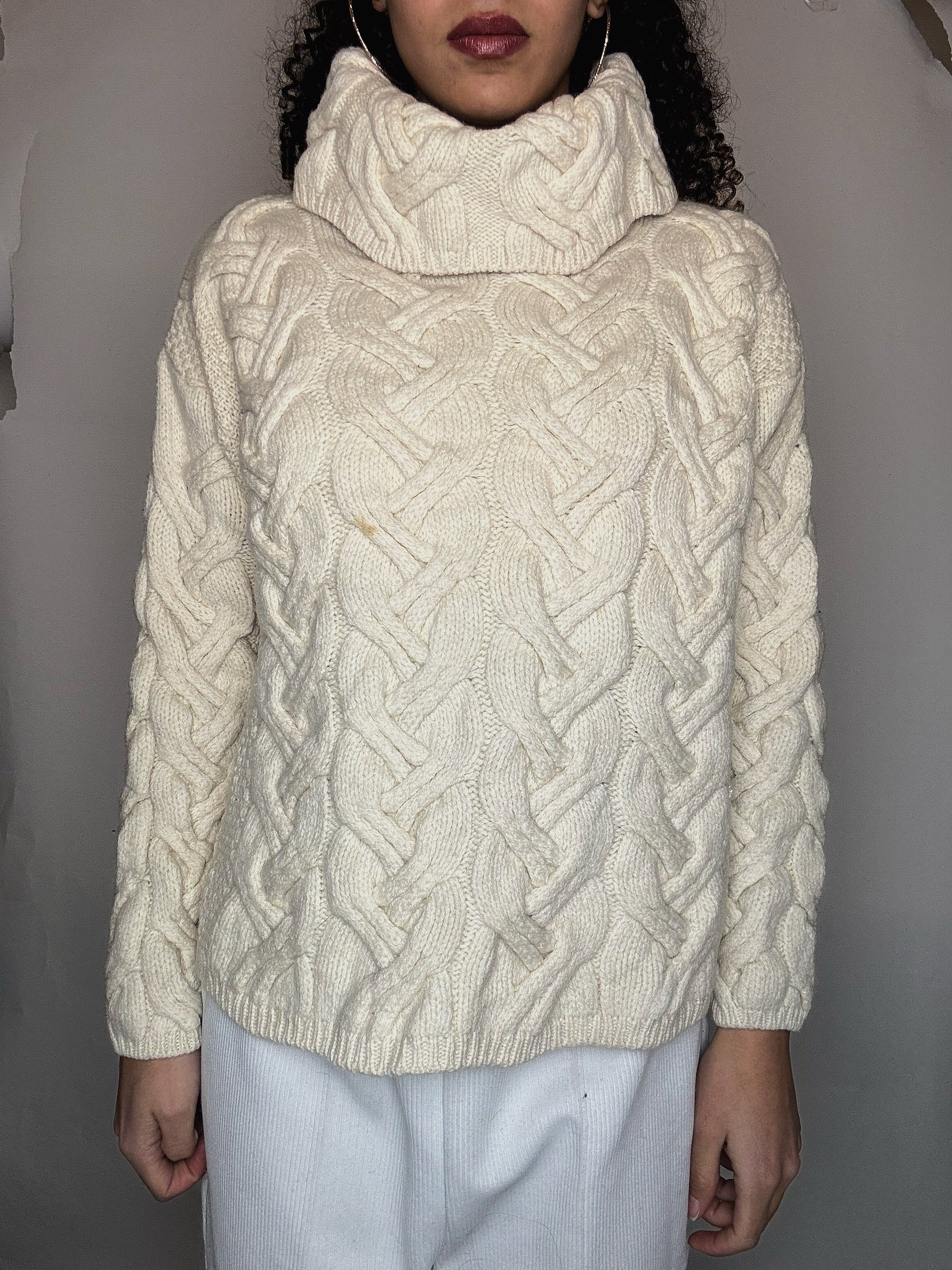Pull col roulé beige S vintage