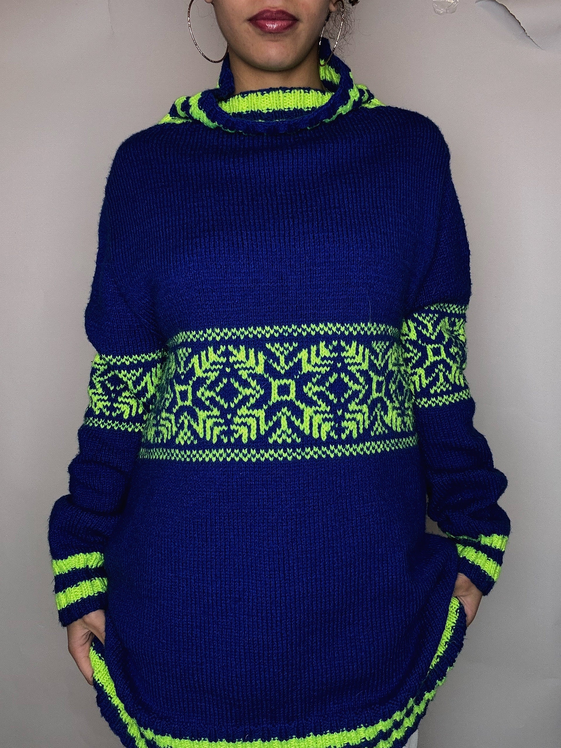 Pull en maille à col roulé bleu M/L vintage