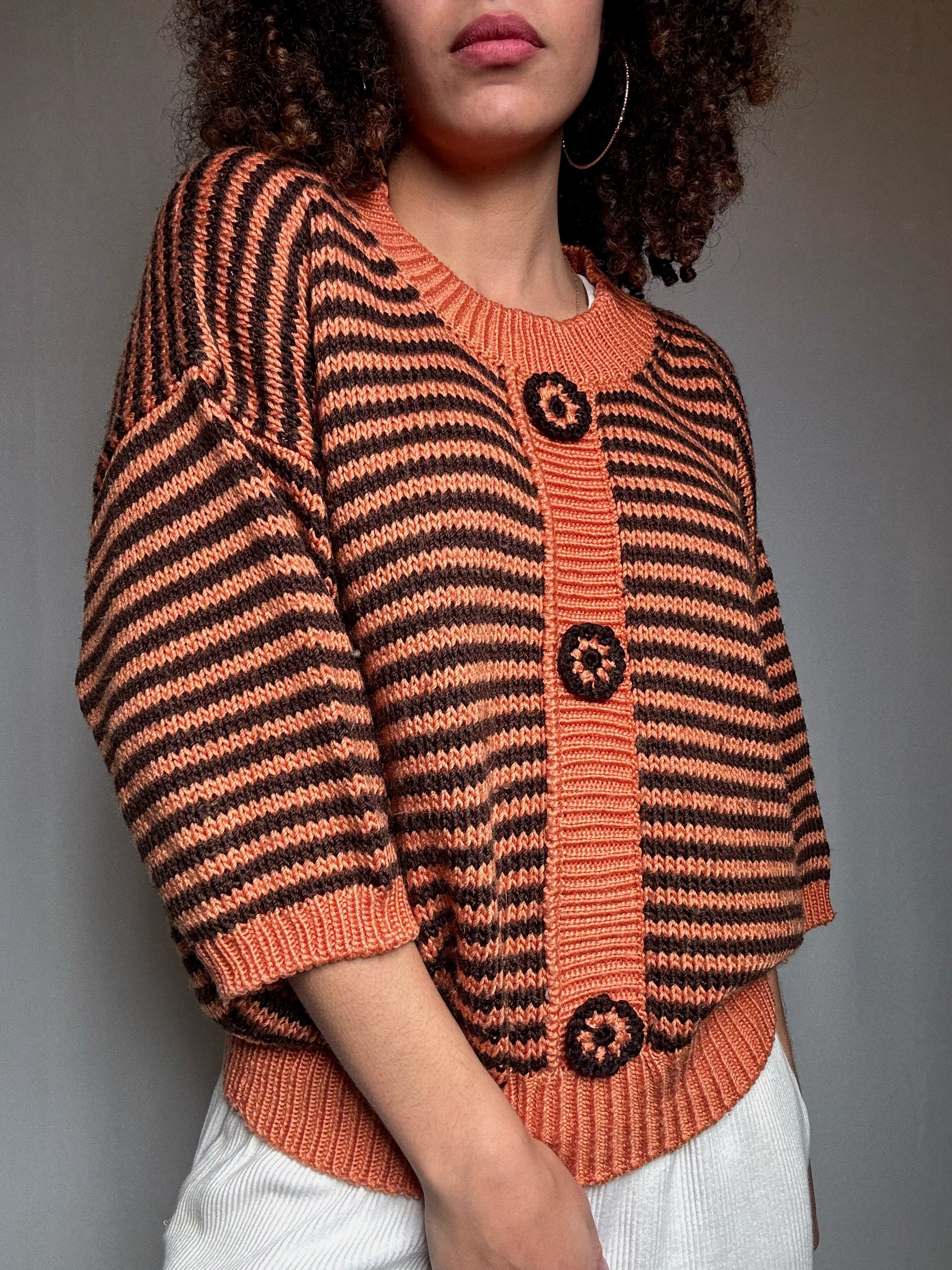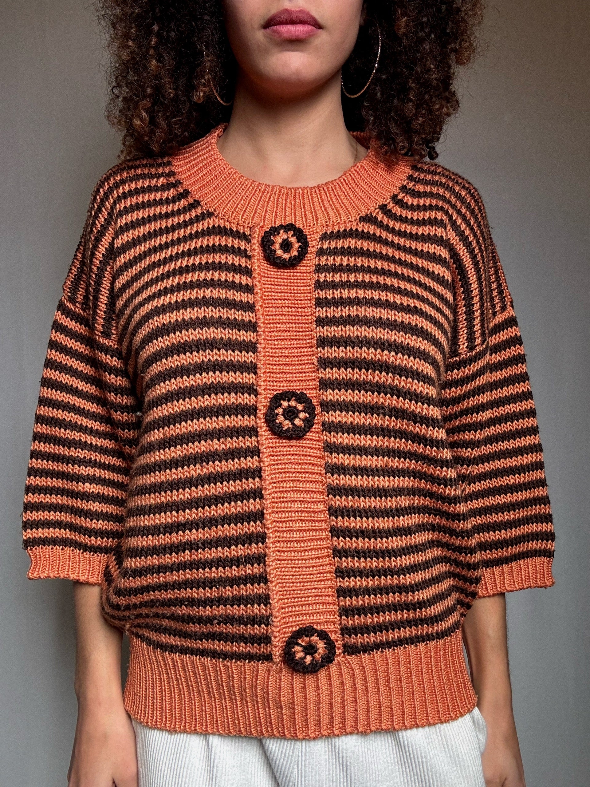 Pull en maille orange et brun M vintage