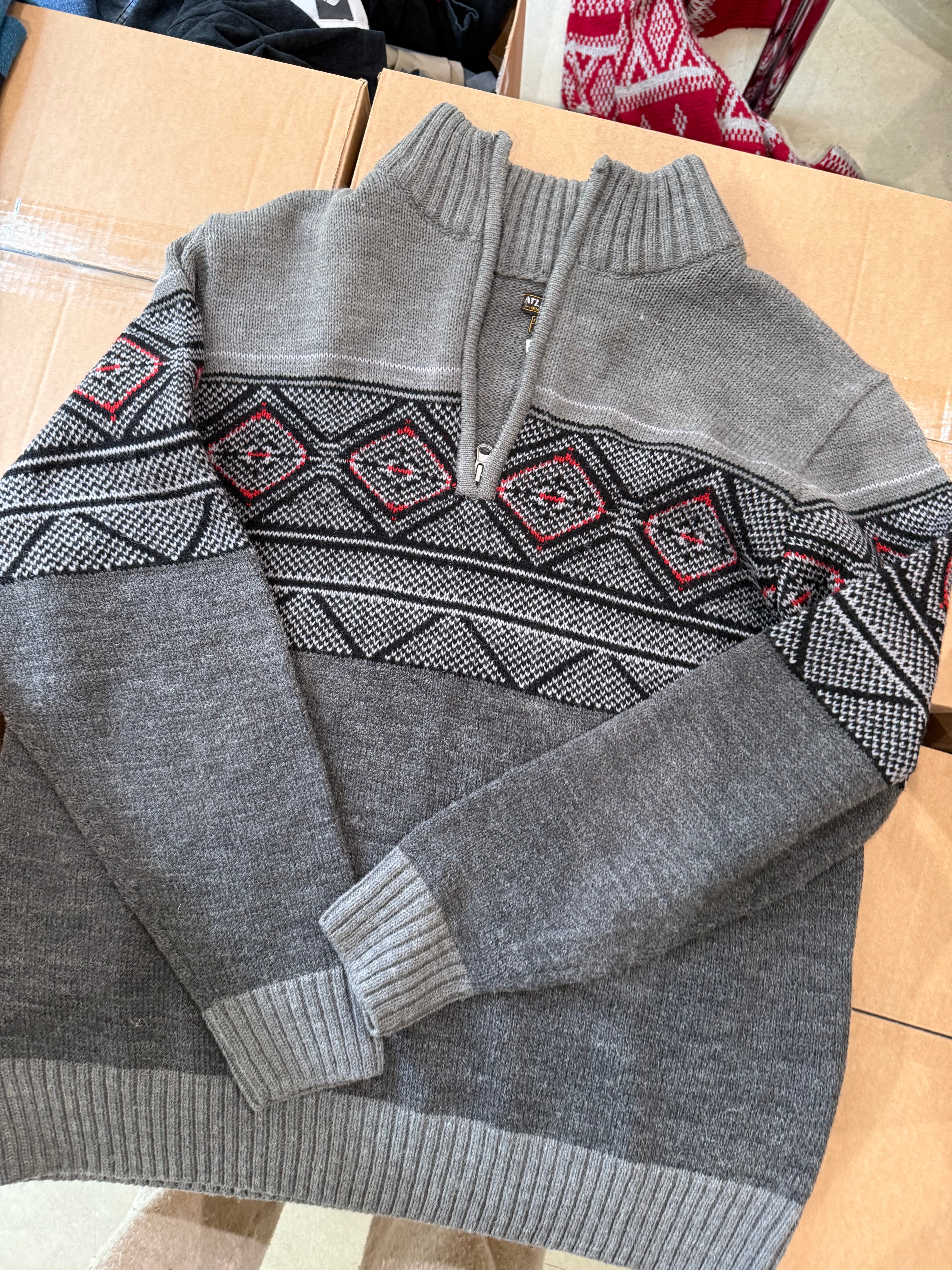Pull en maille zip gris L