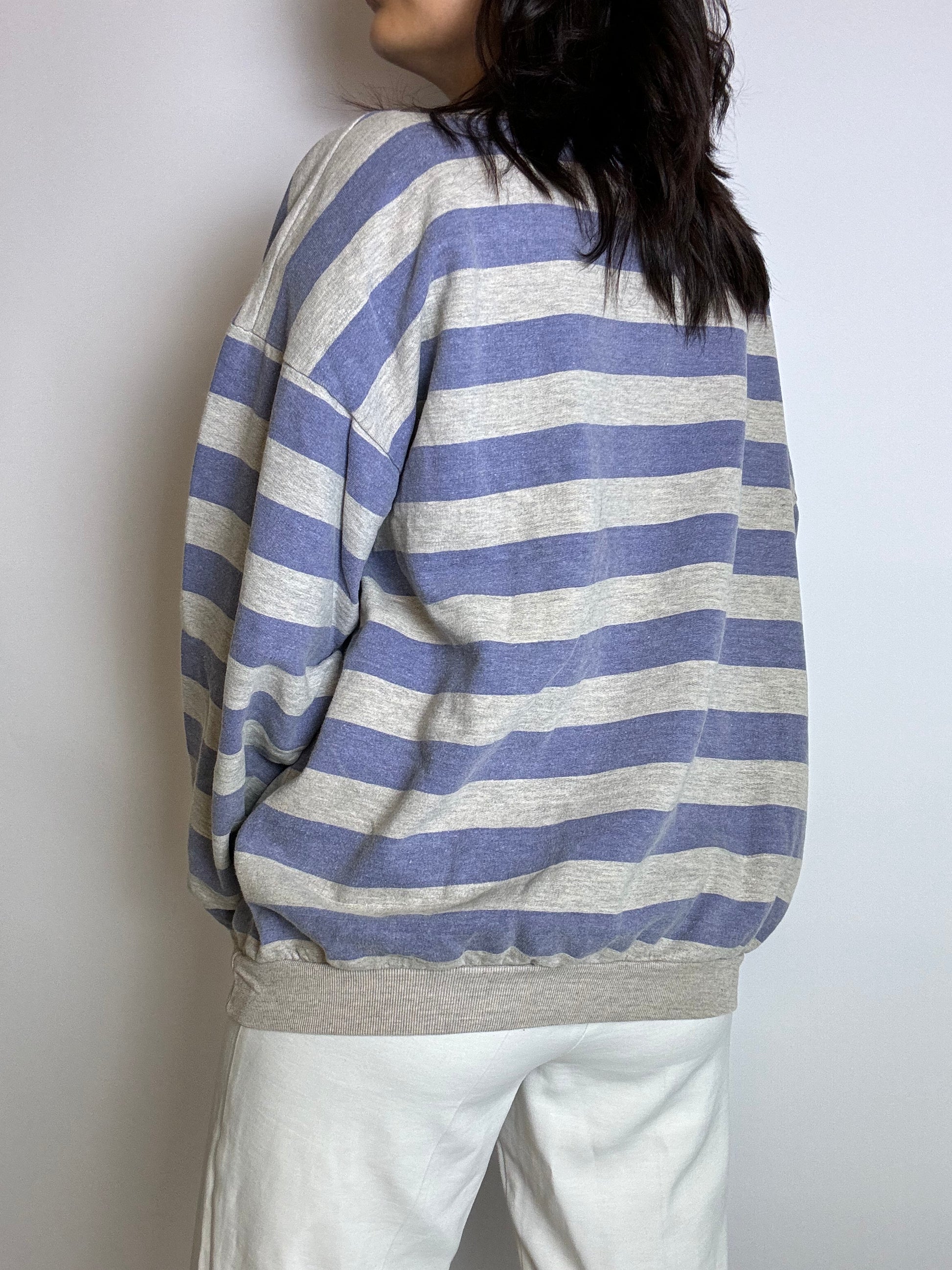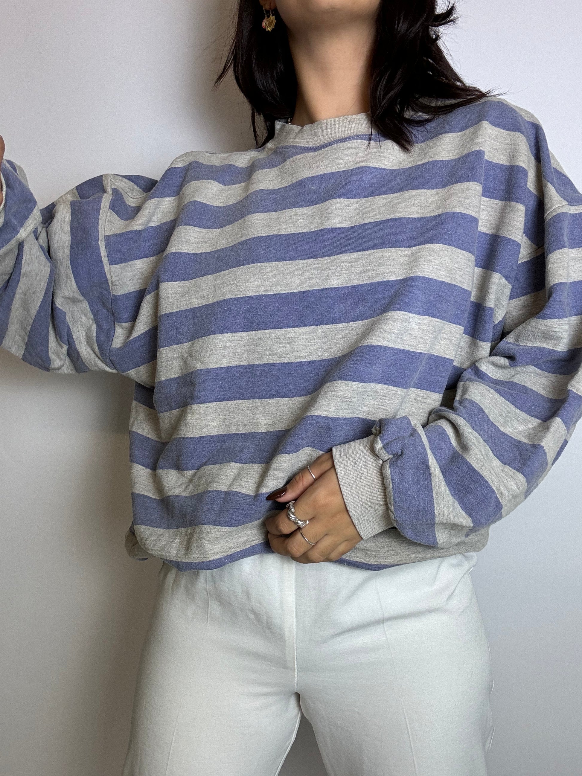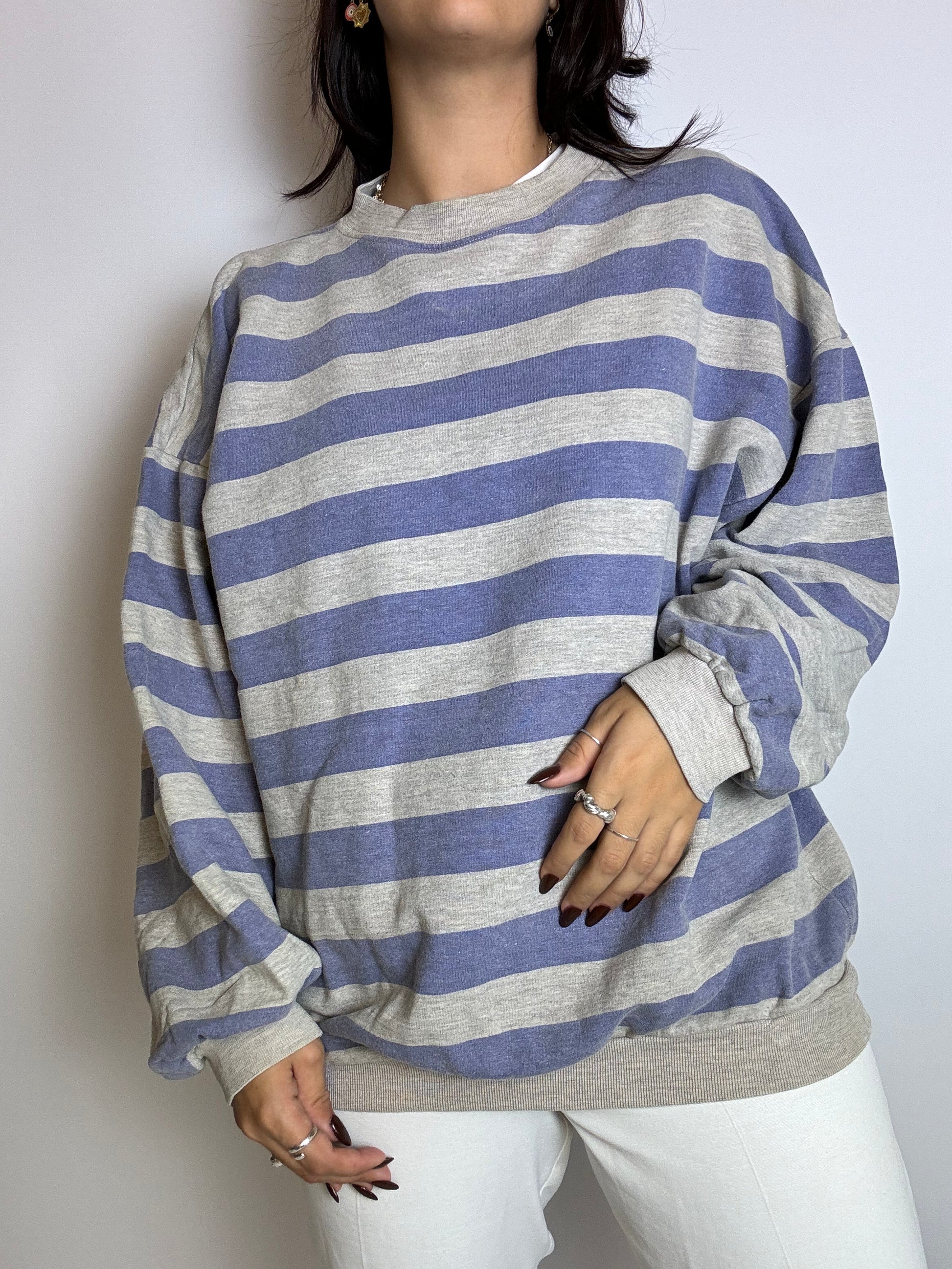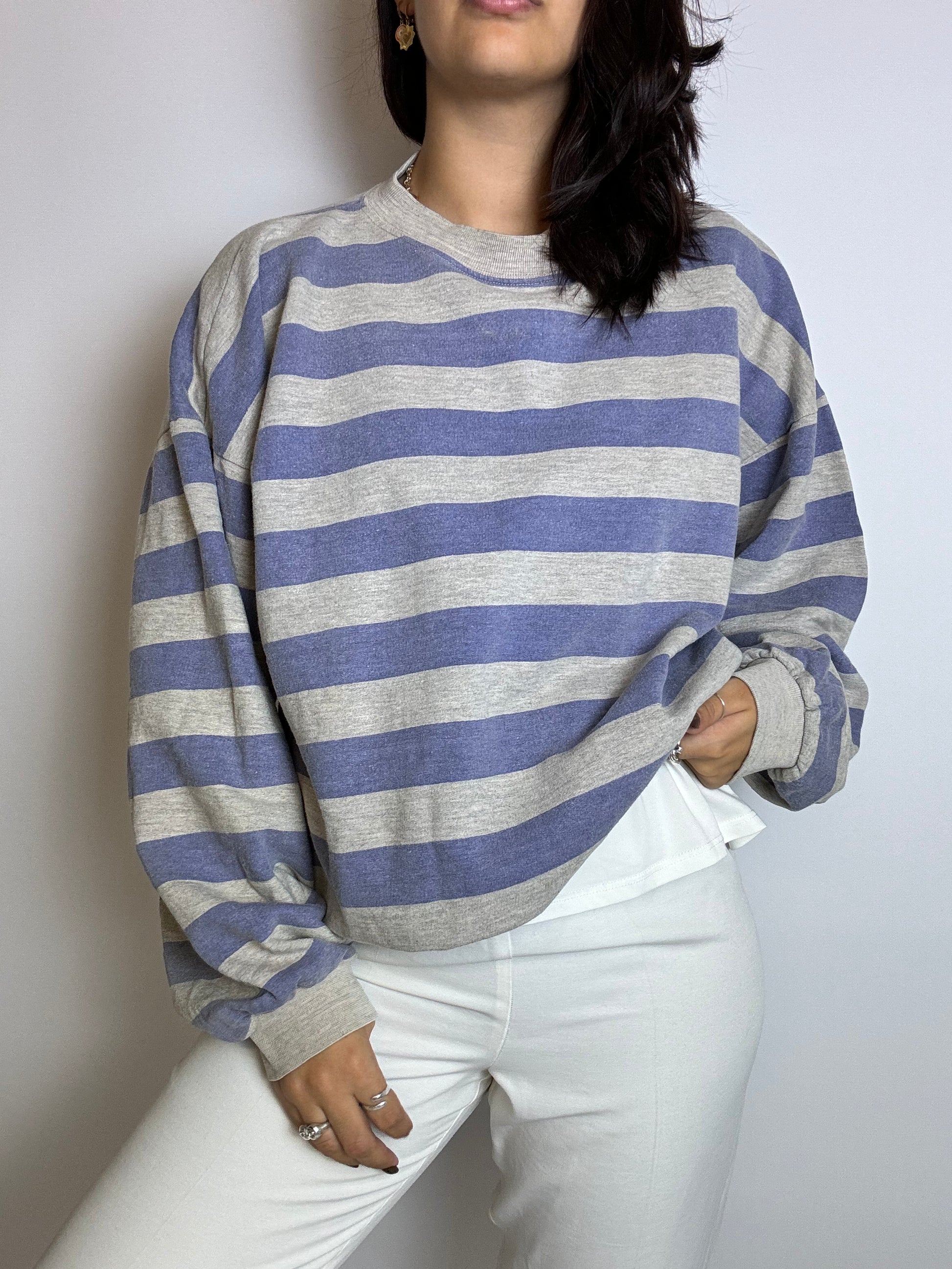 Vintage grau und blau gestreifter Sweatshirtpullover L