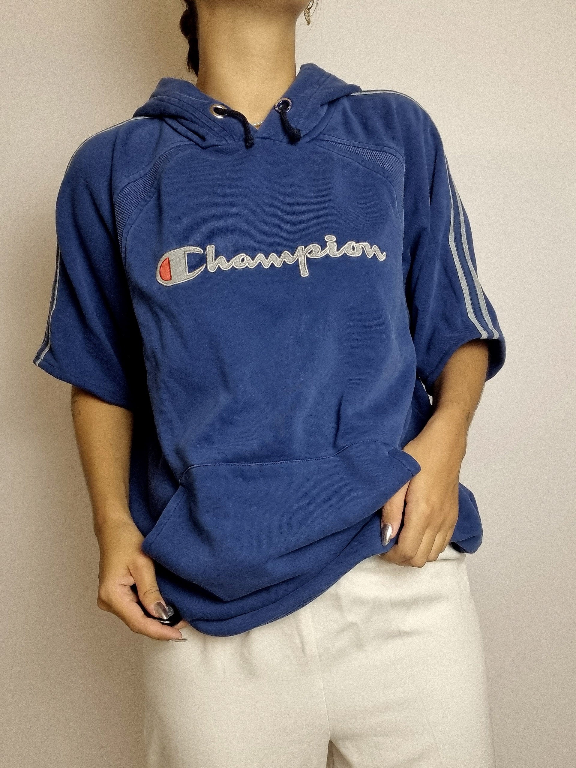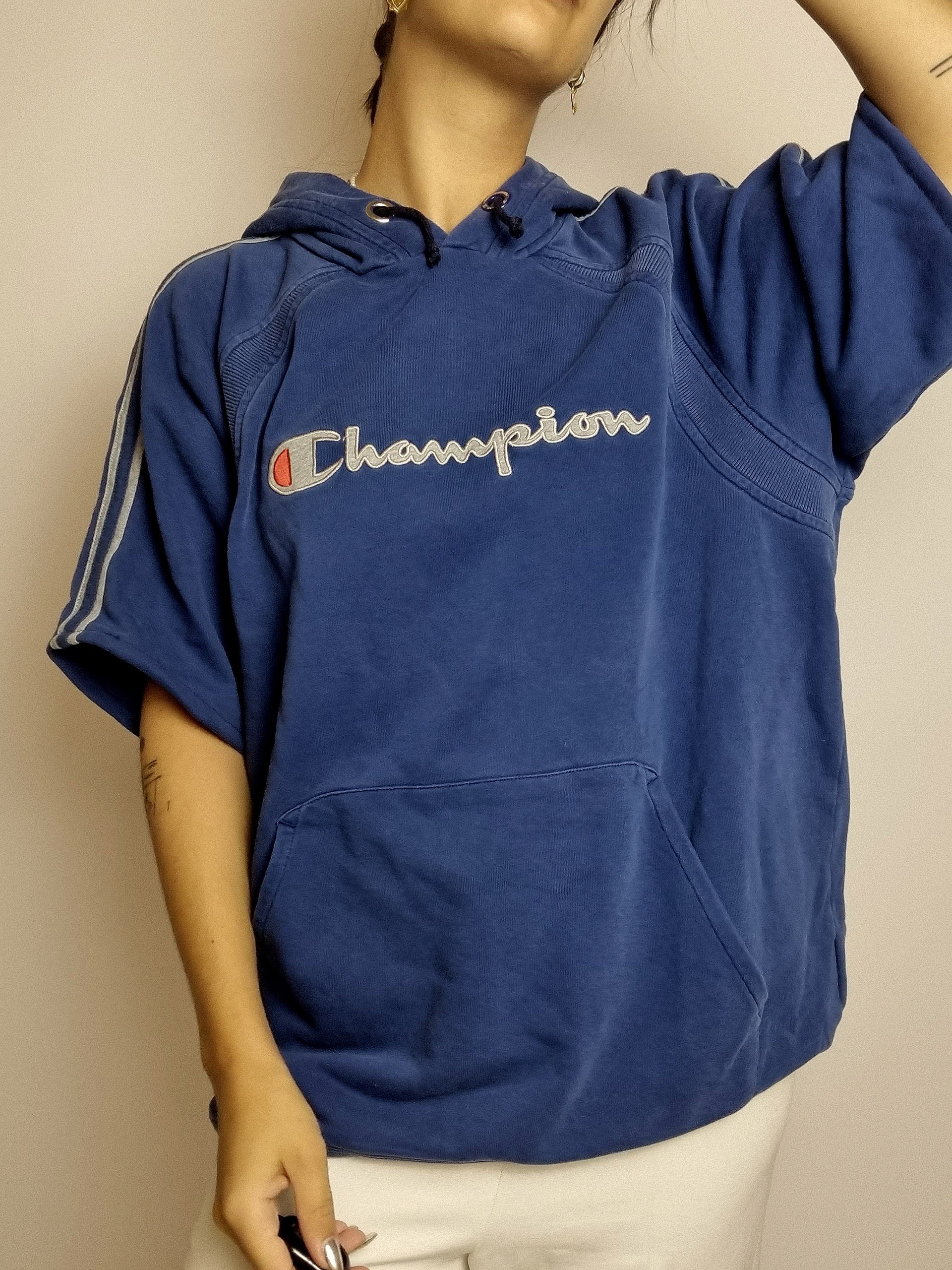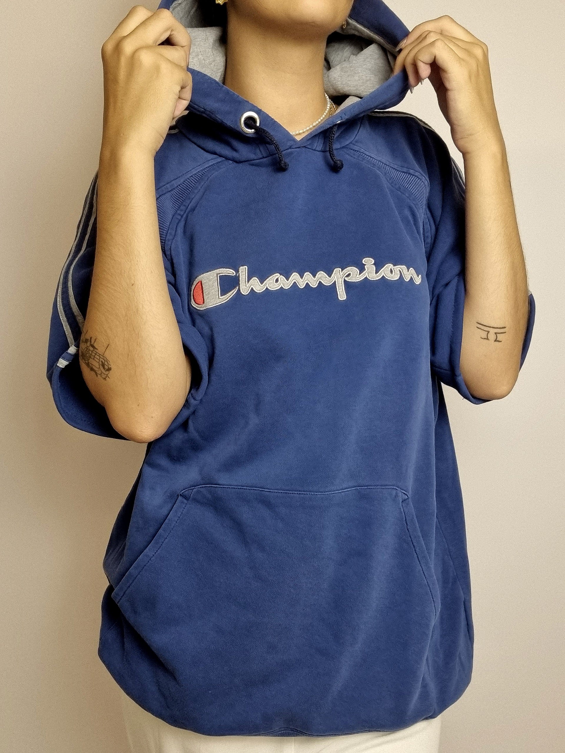 Champion XL Vintage-T-Shirt mit Kapuze in Blau