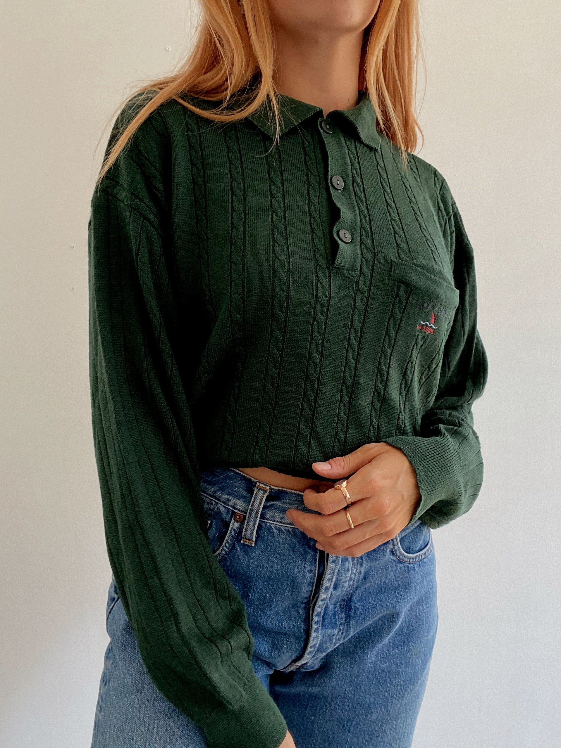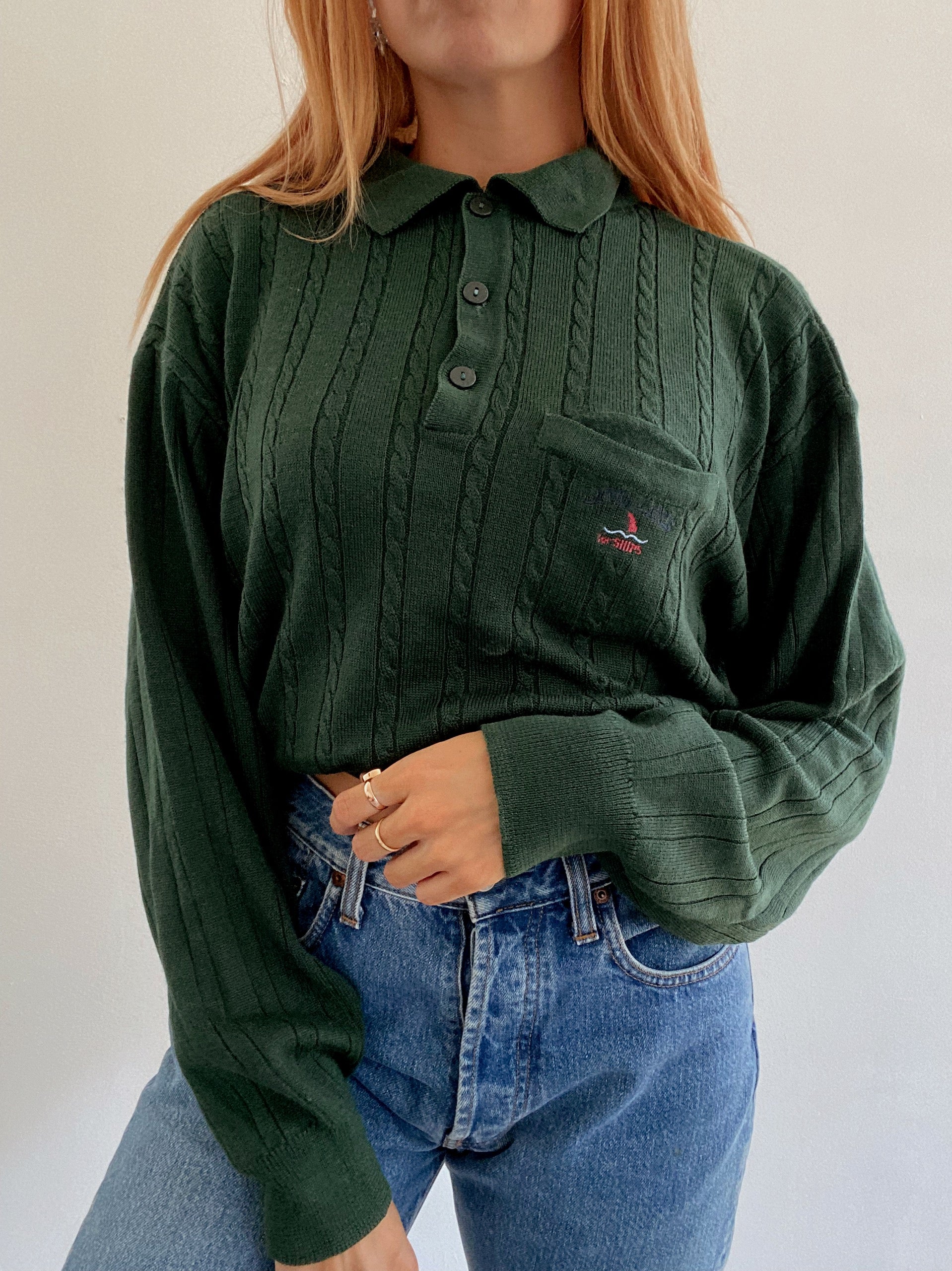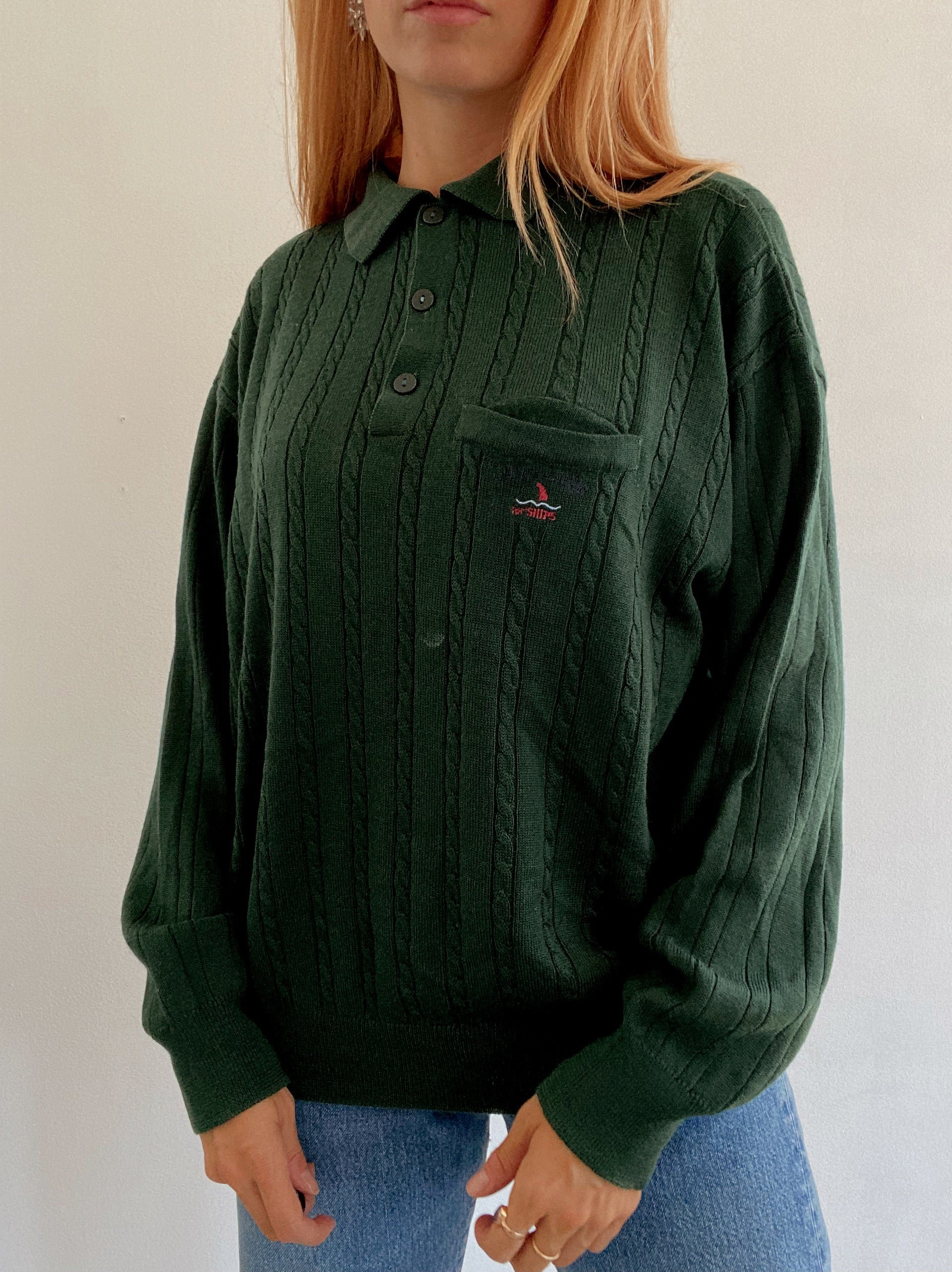 Vintage dunkelgrüner Wollpullover M/L