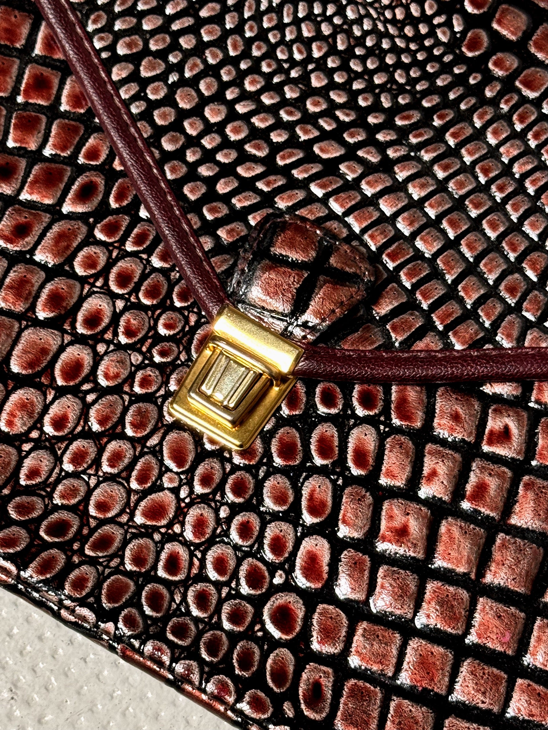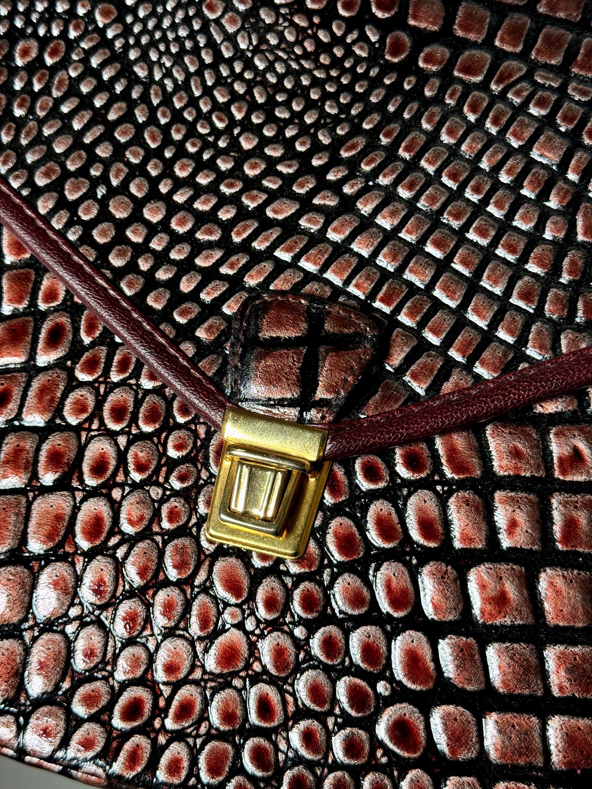 Sac en cuir rigide bordeaux vintage