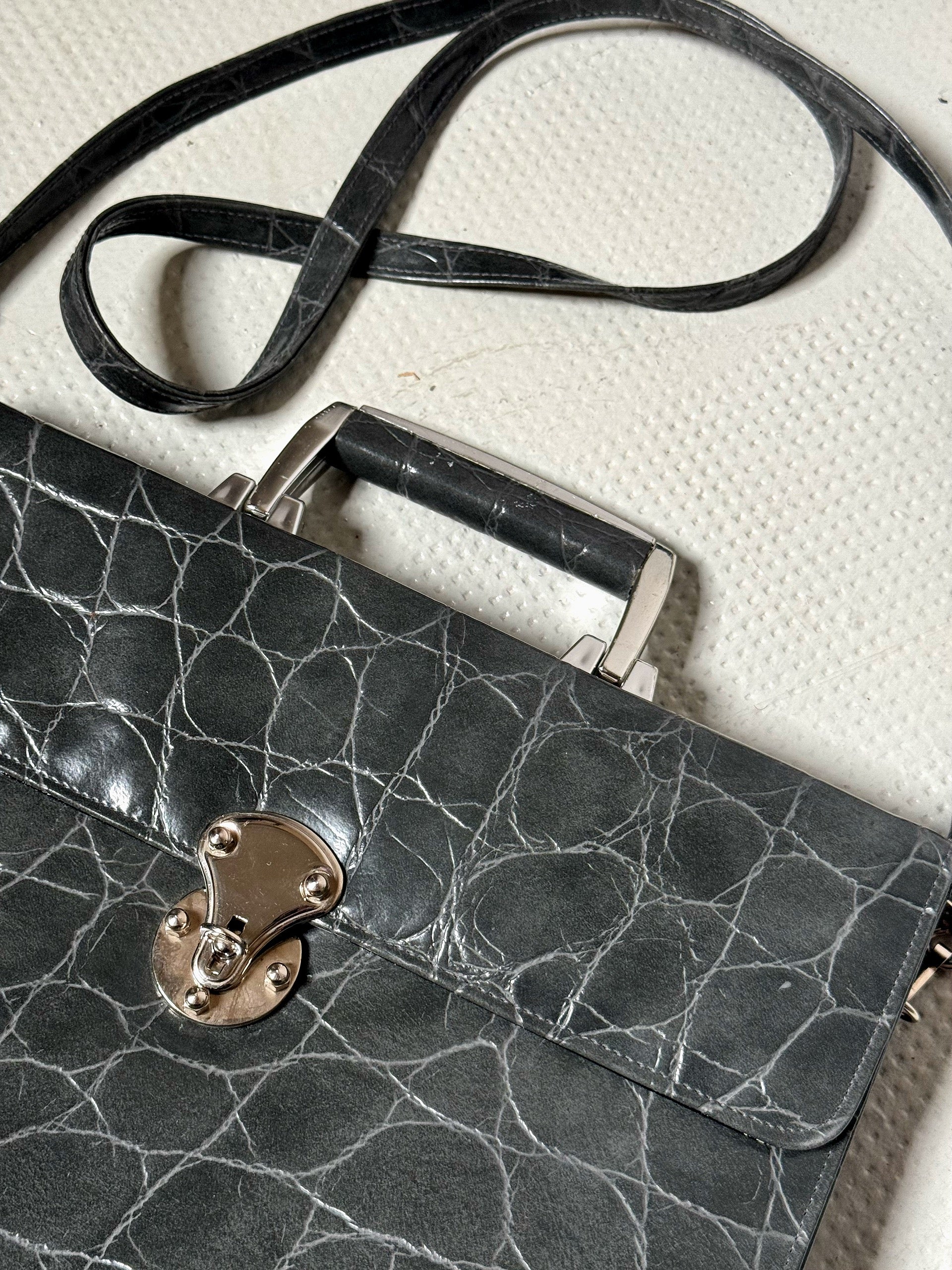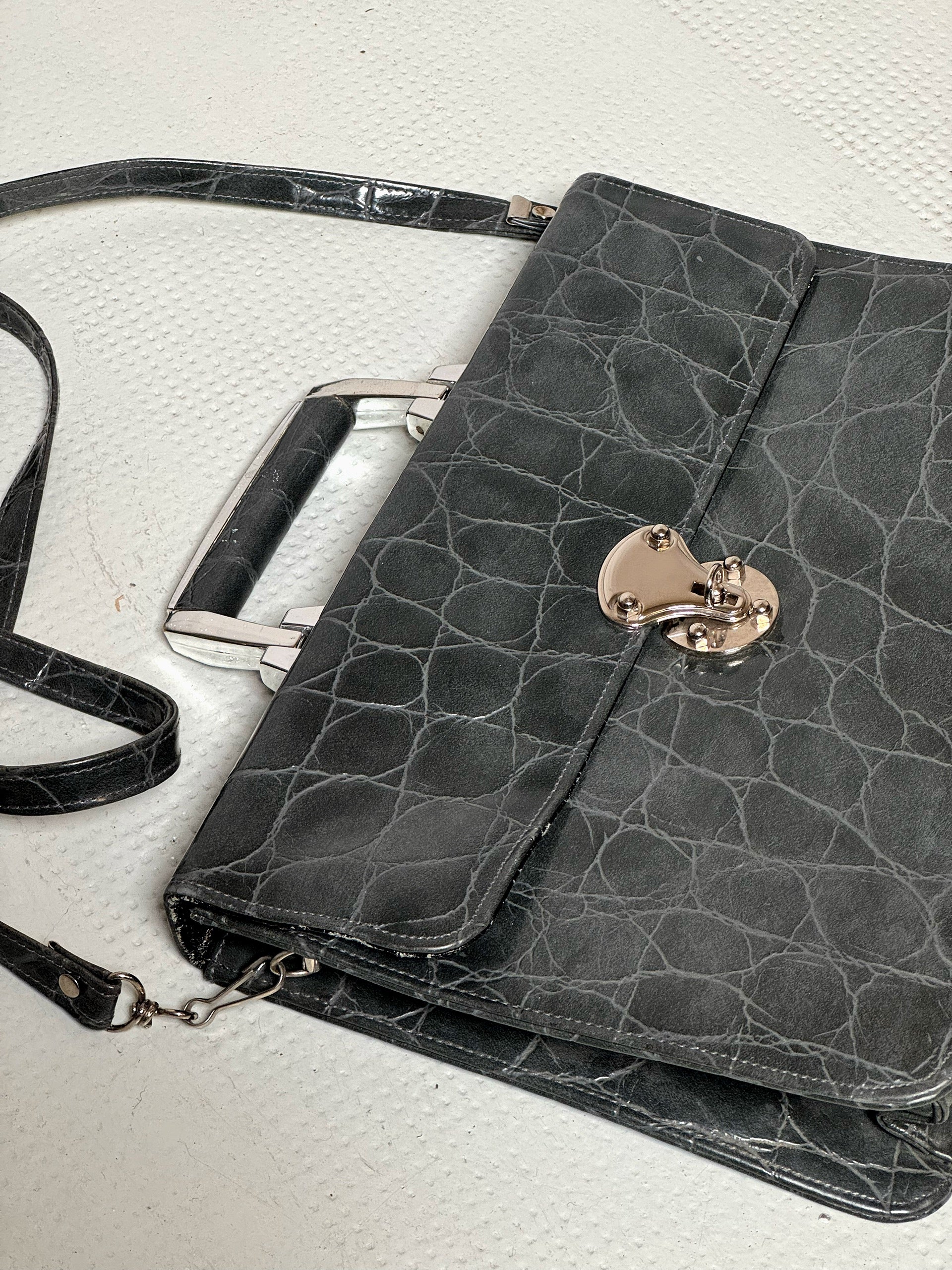 Sac en cuir rigide gris vintage
