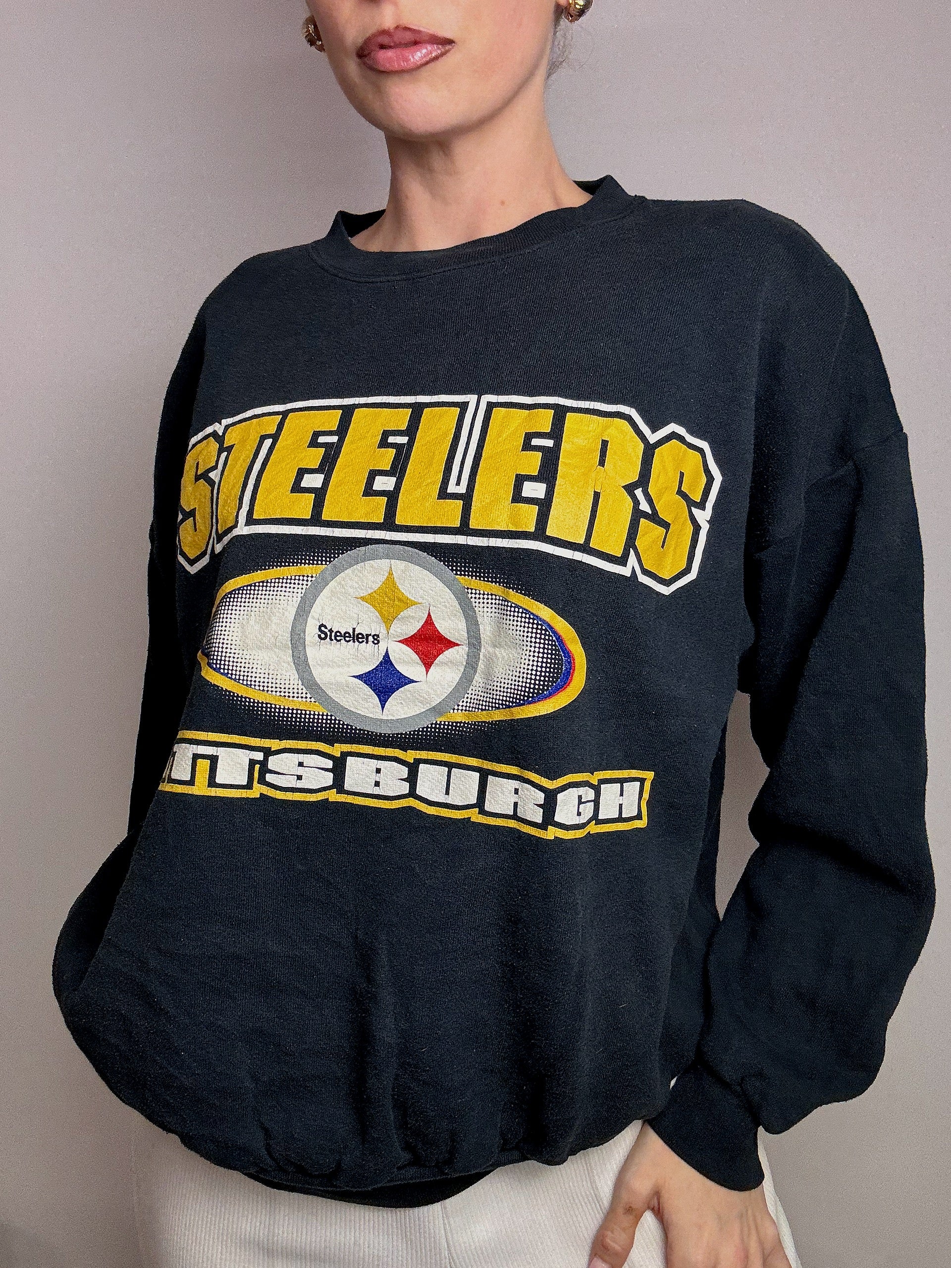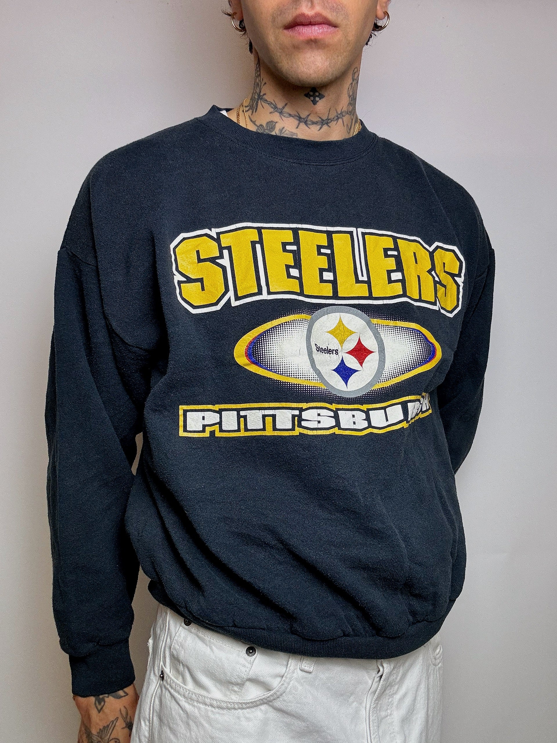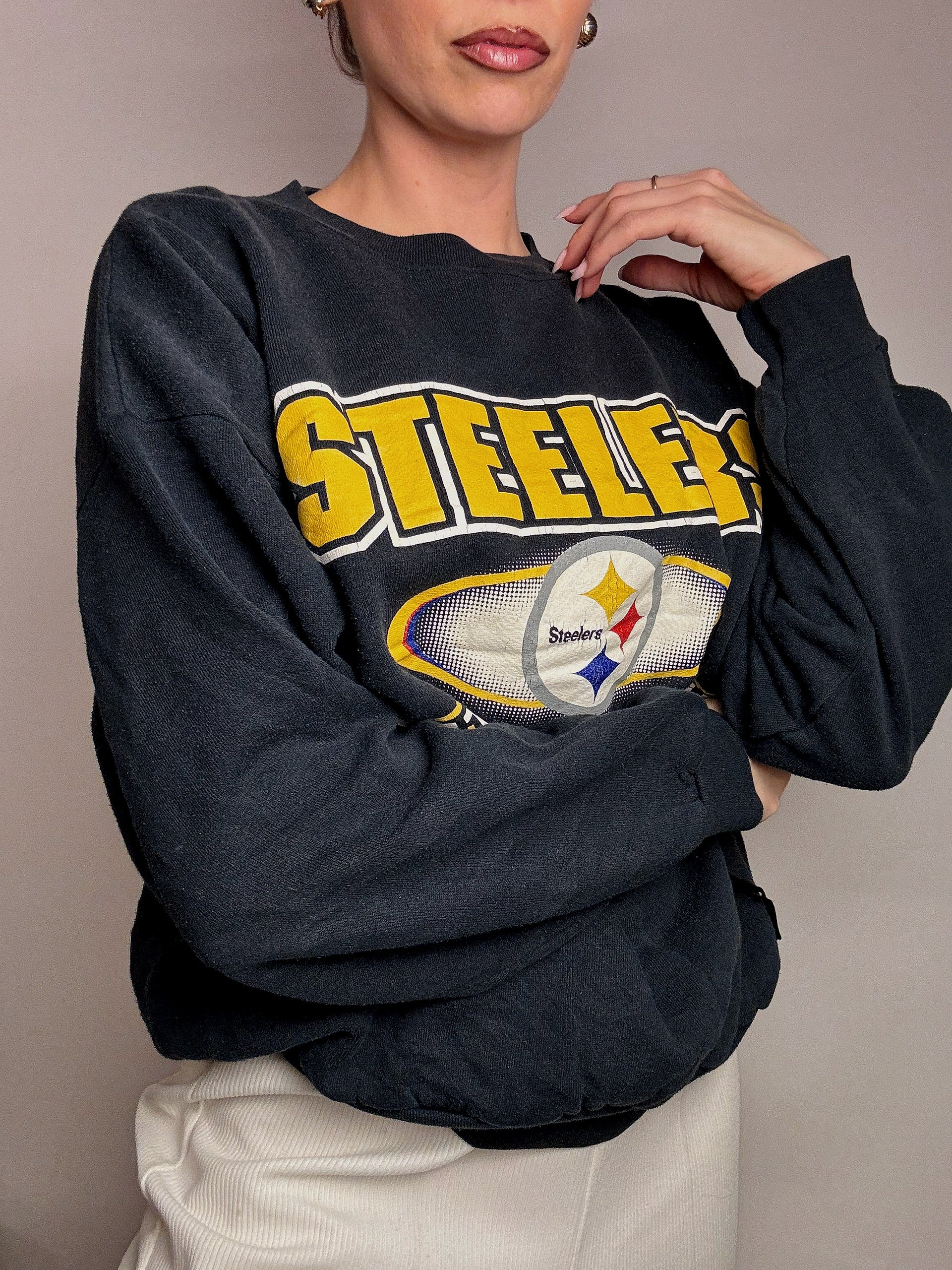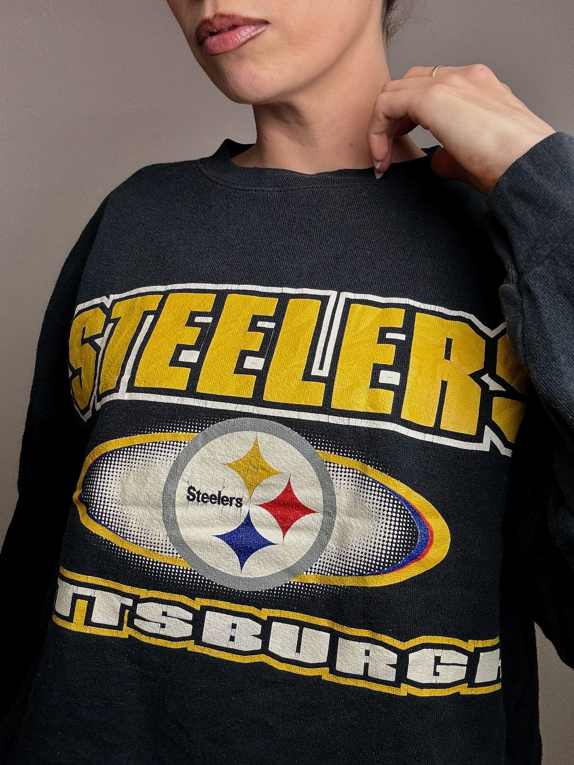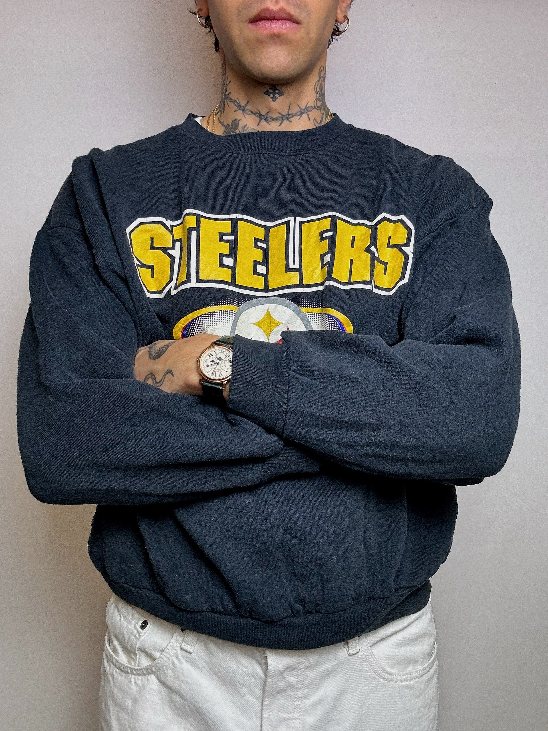 TULTEX x STEELERS XL Vintage Dunkelgraues Sweatshirt mit Rundhalsausschnitt