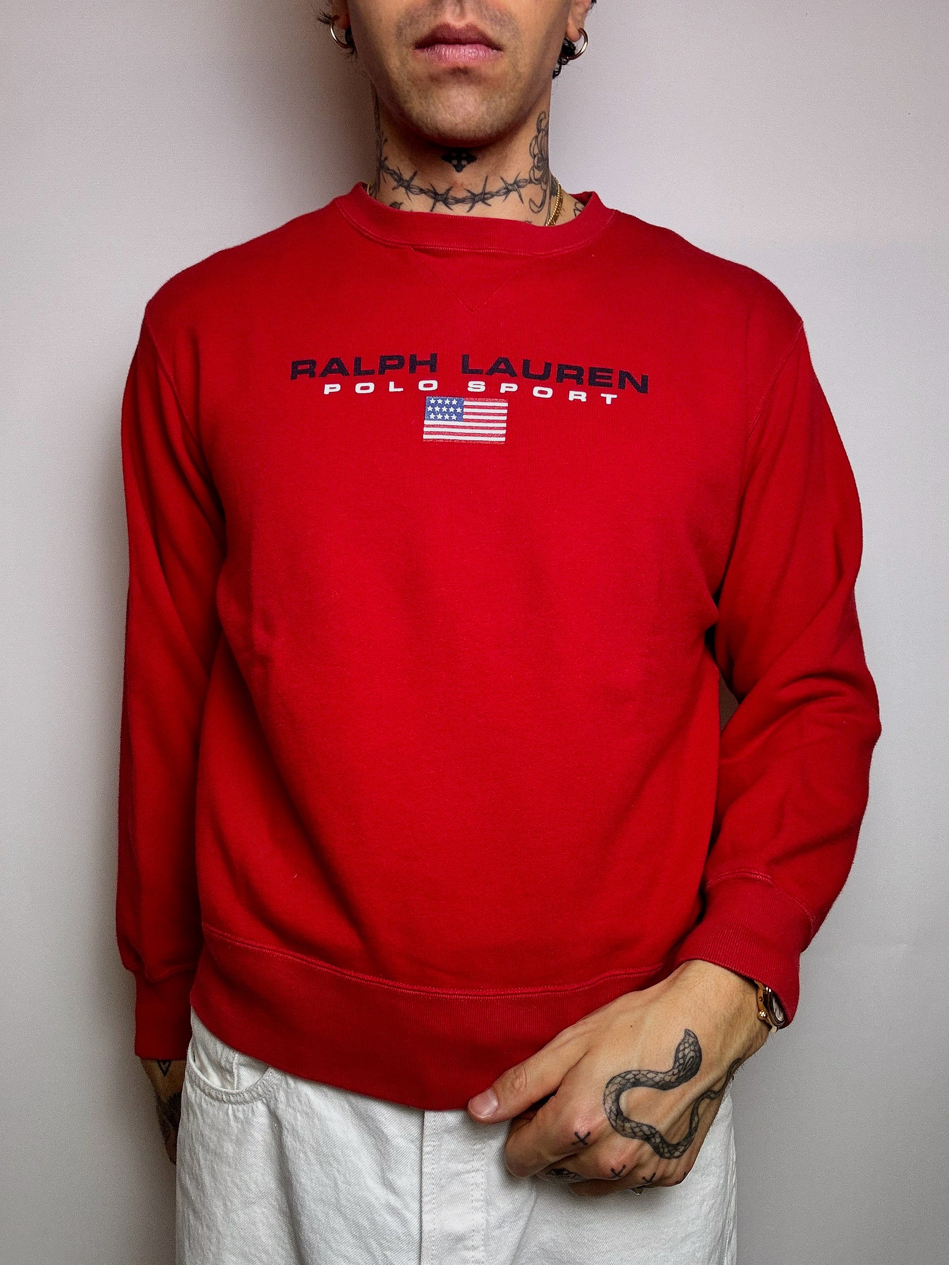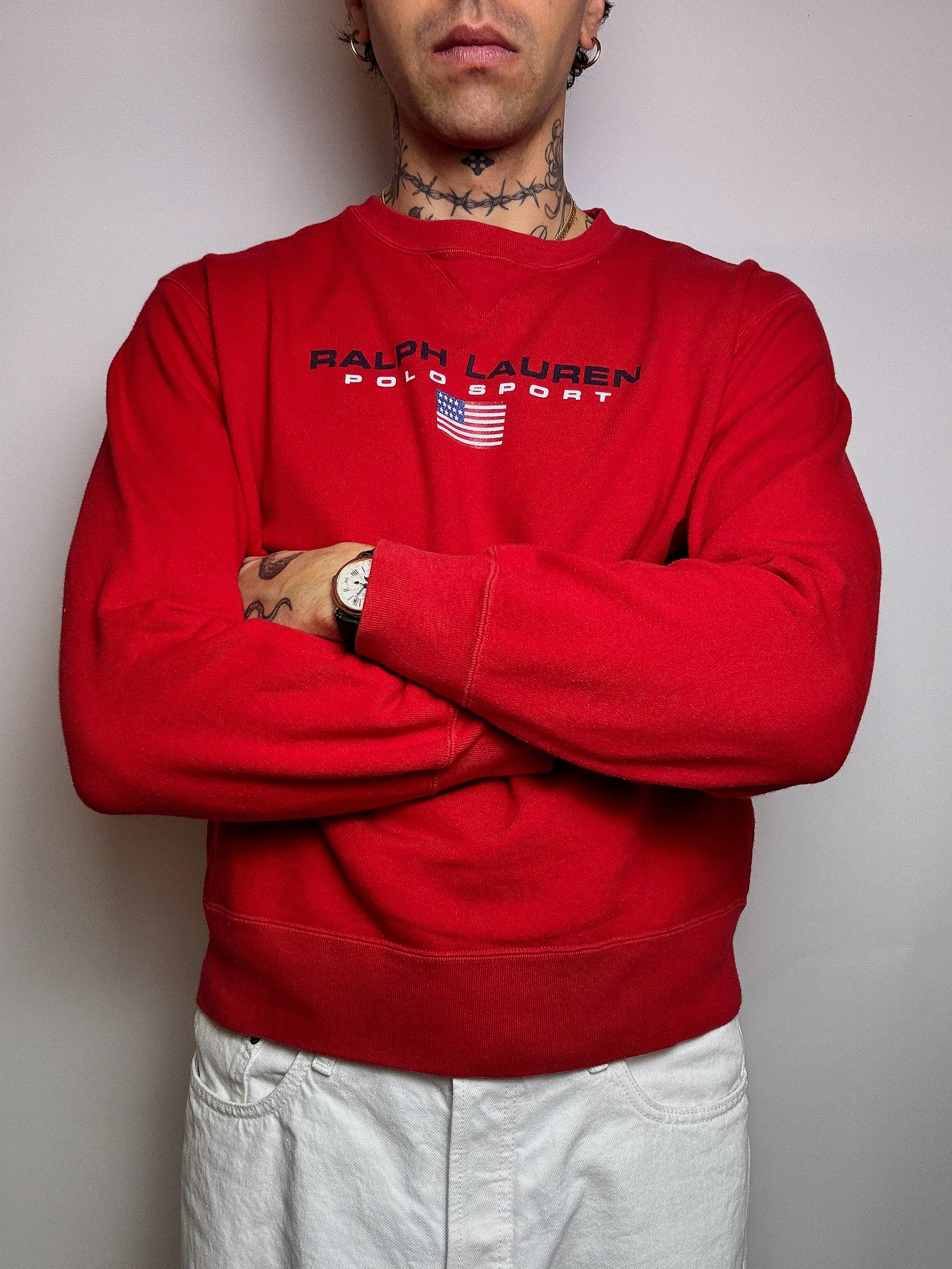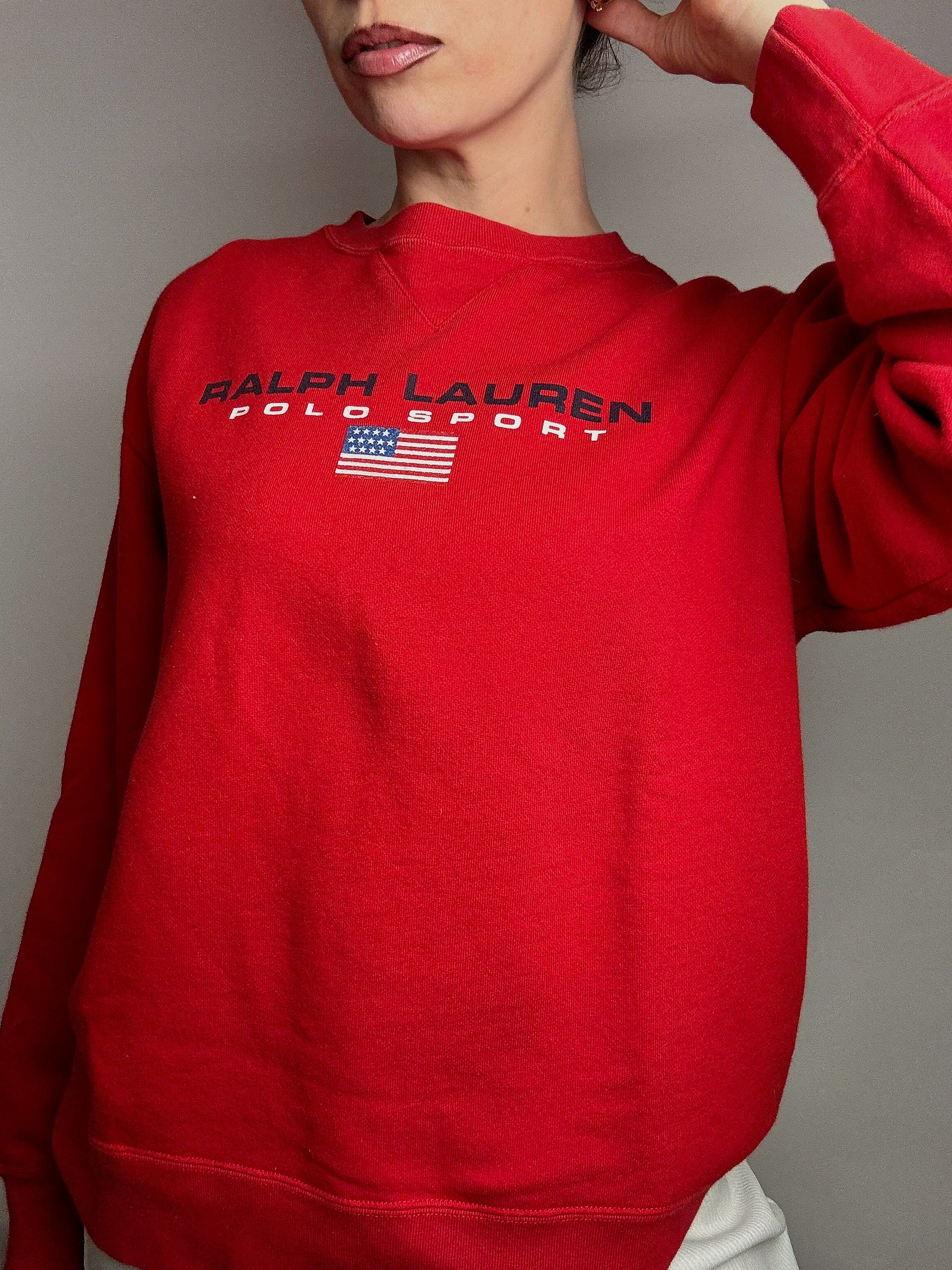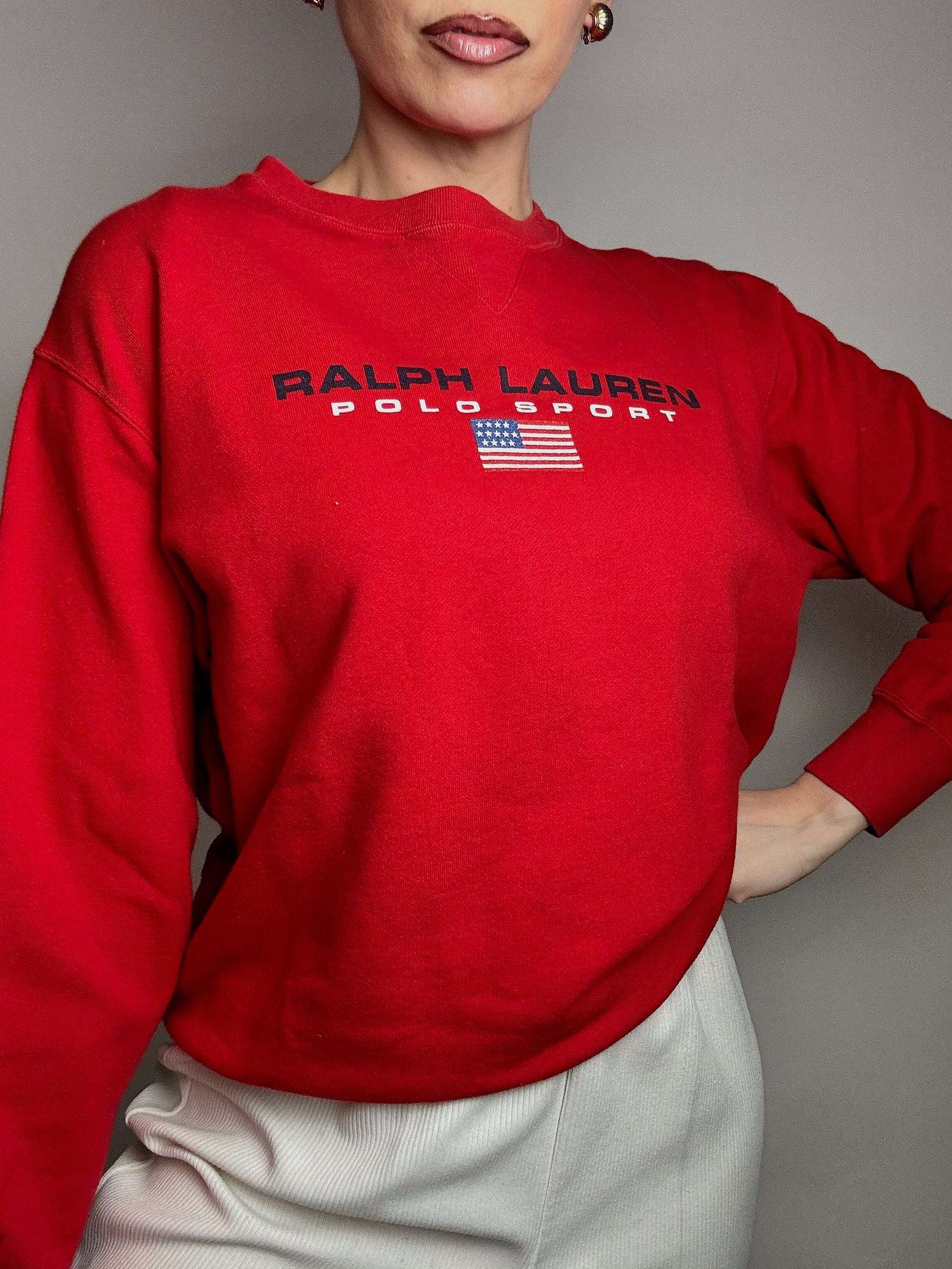 RALPH LAUREN M Vintage rotes Rundhals-Sweatshirt