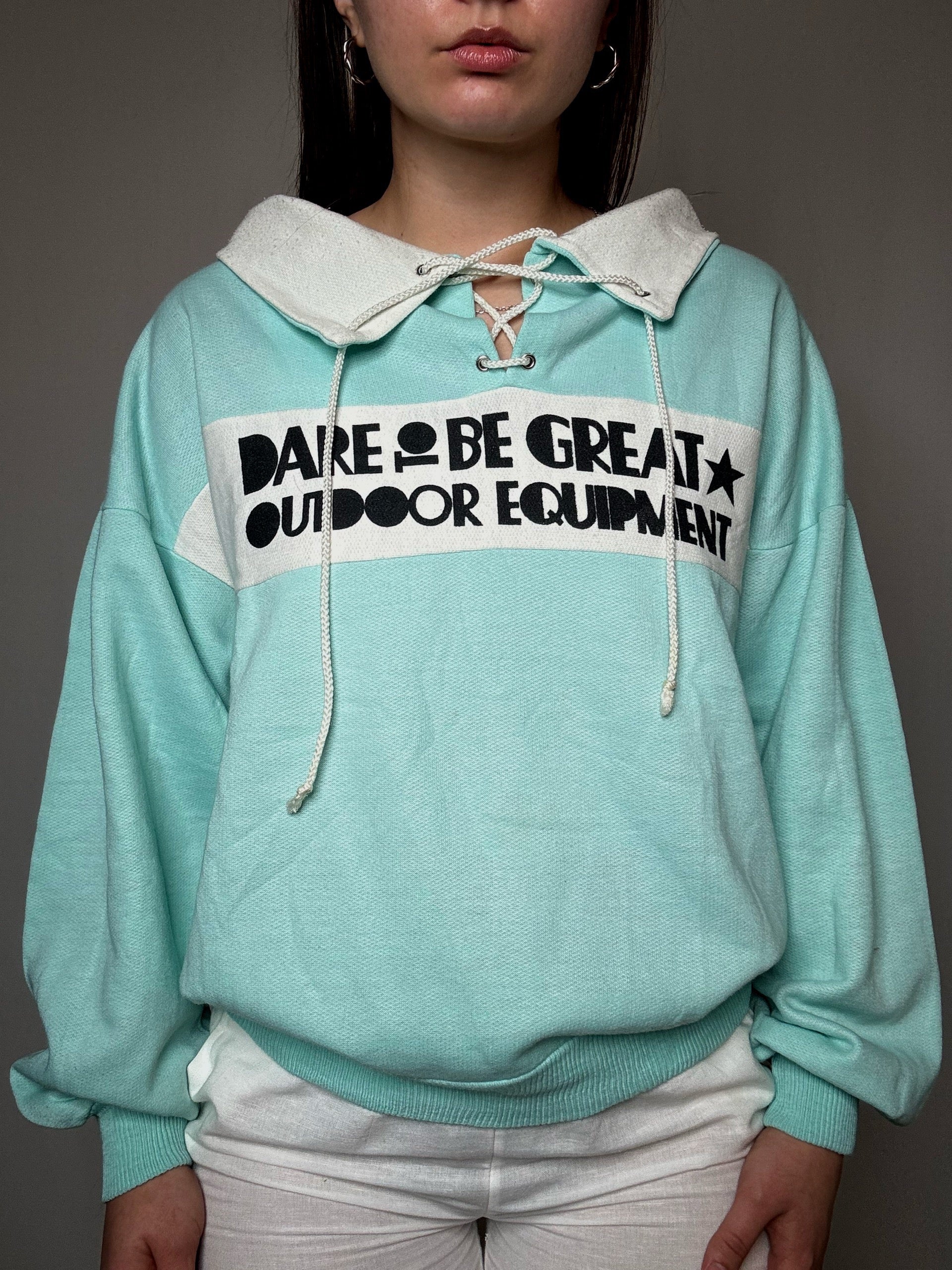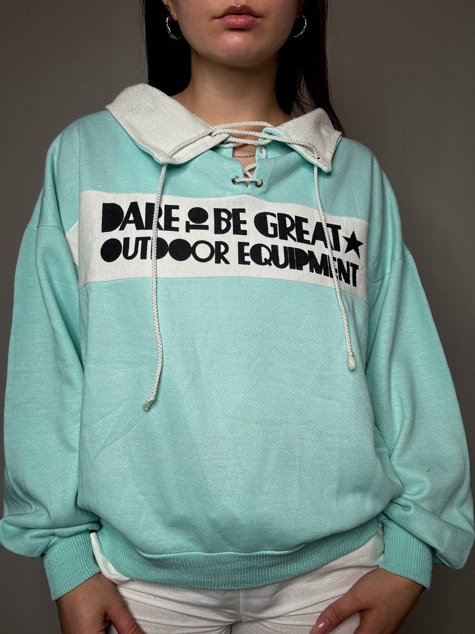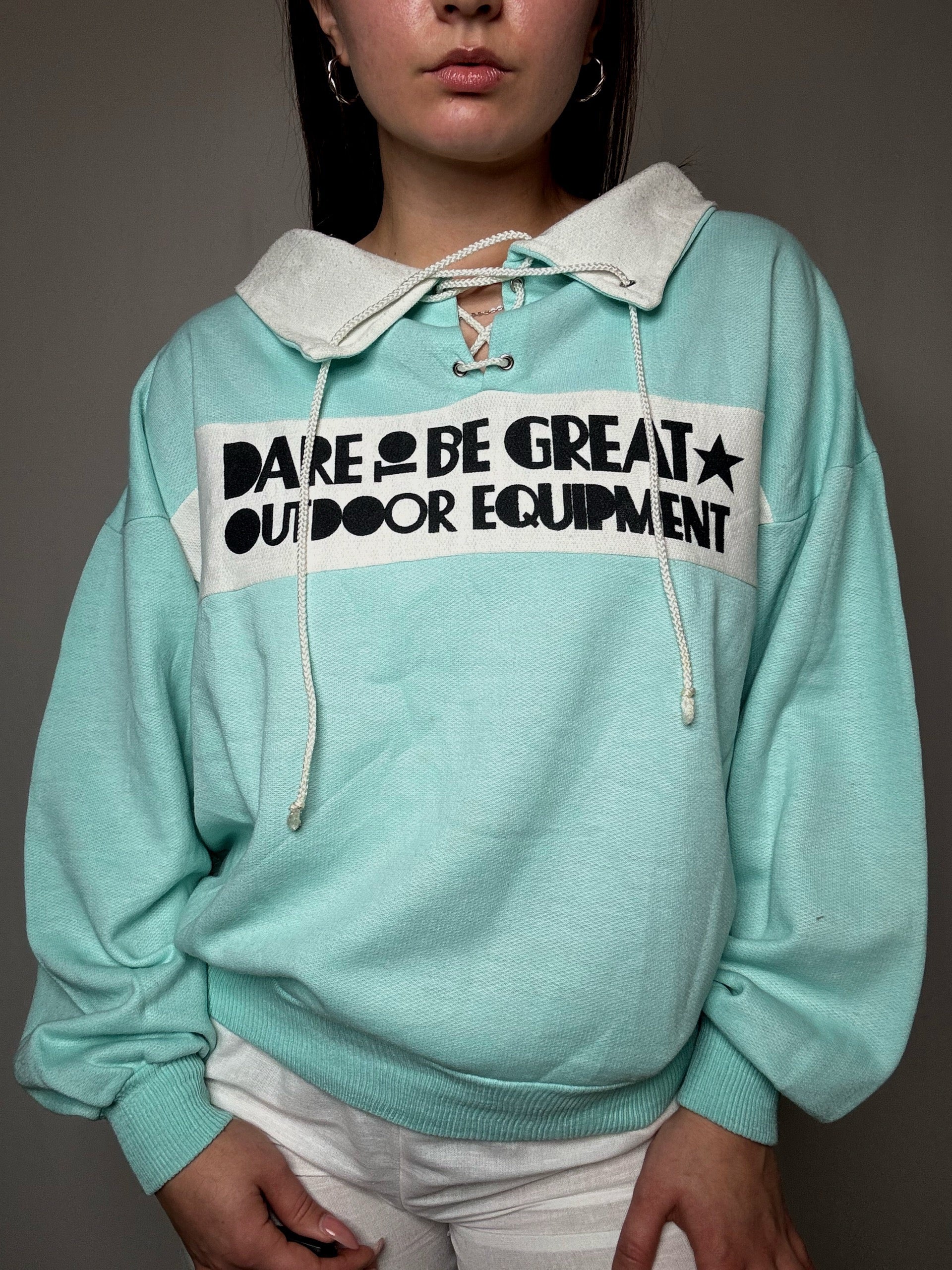 Sweat turquoise à détails L vintage