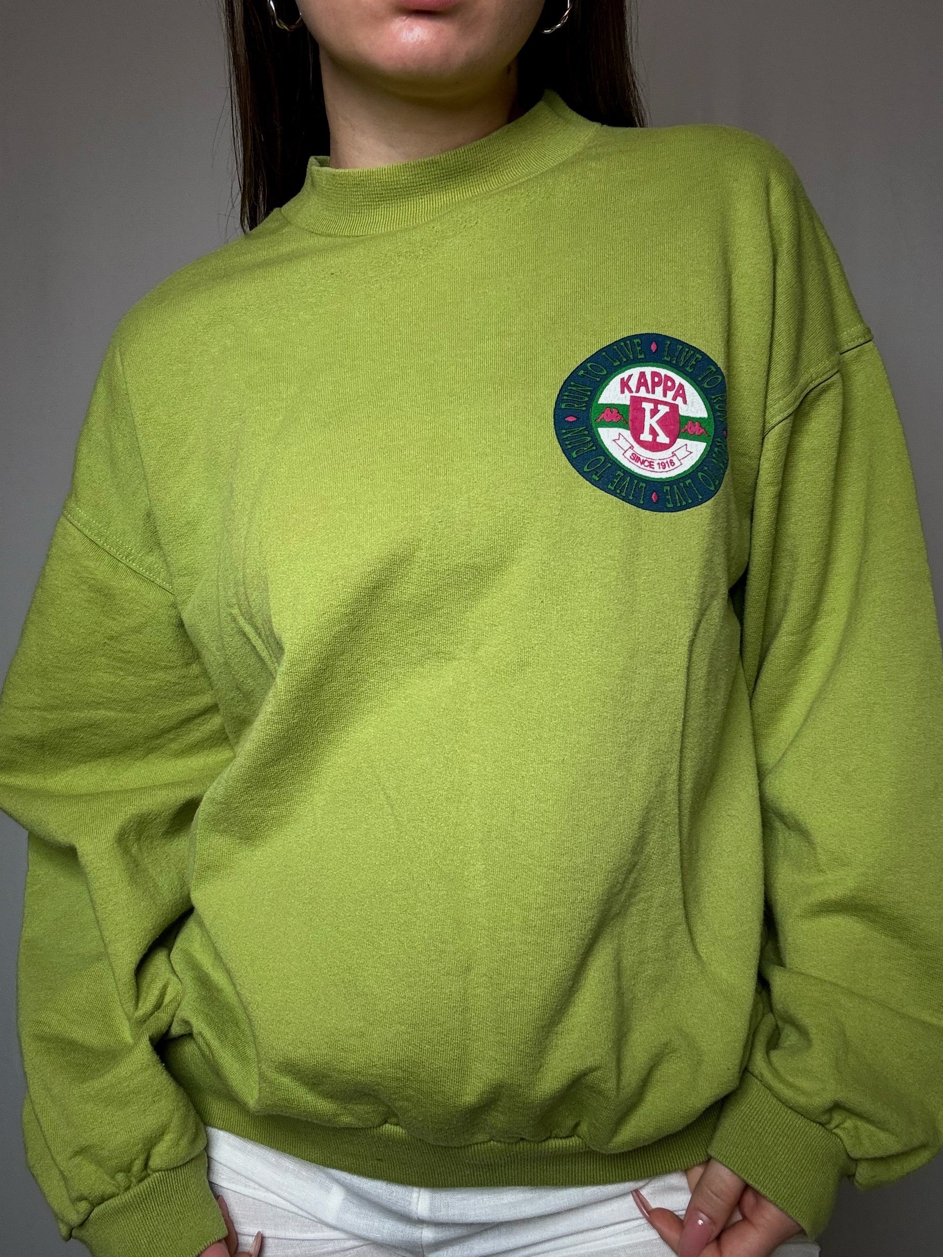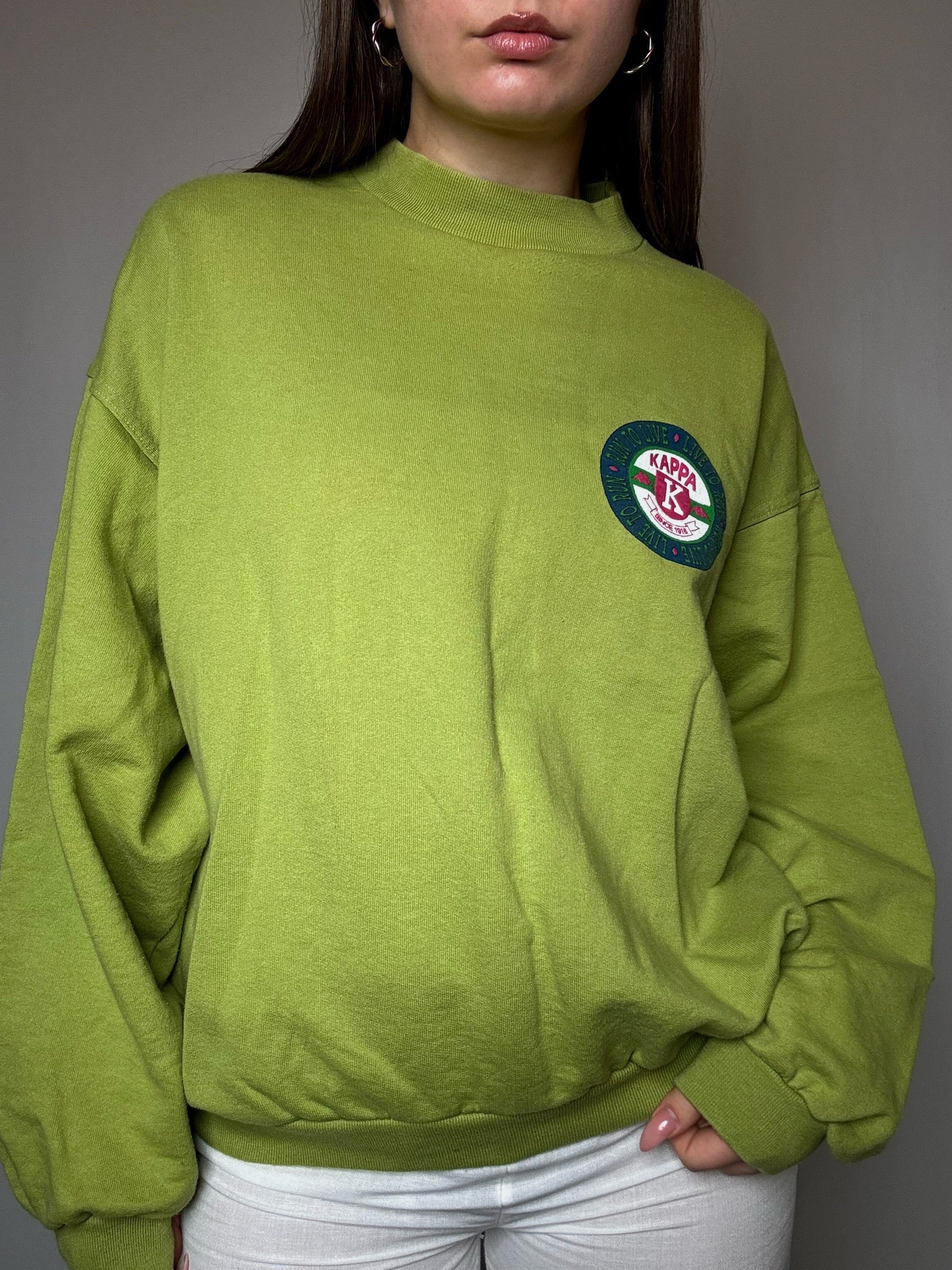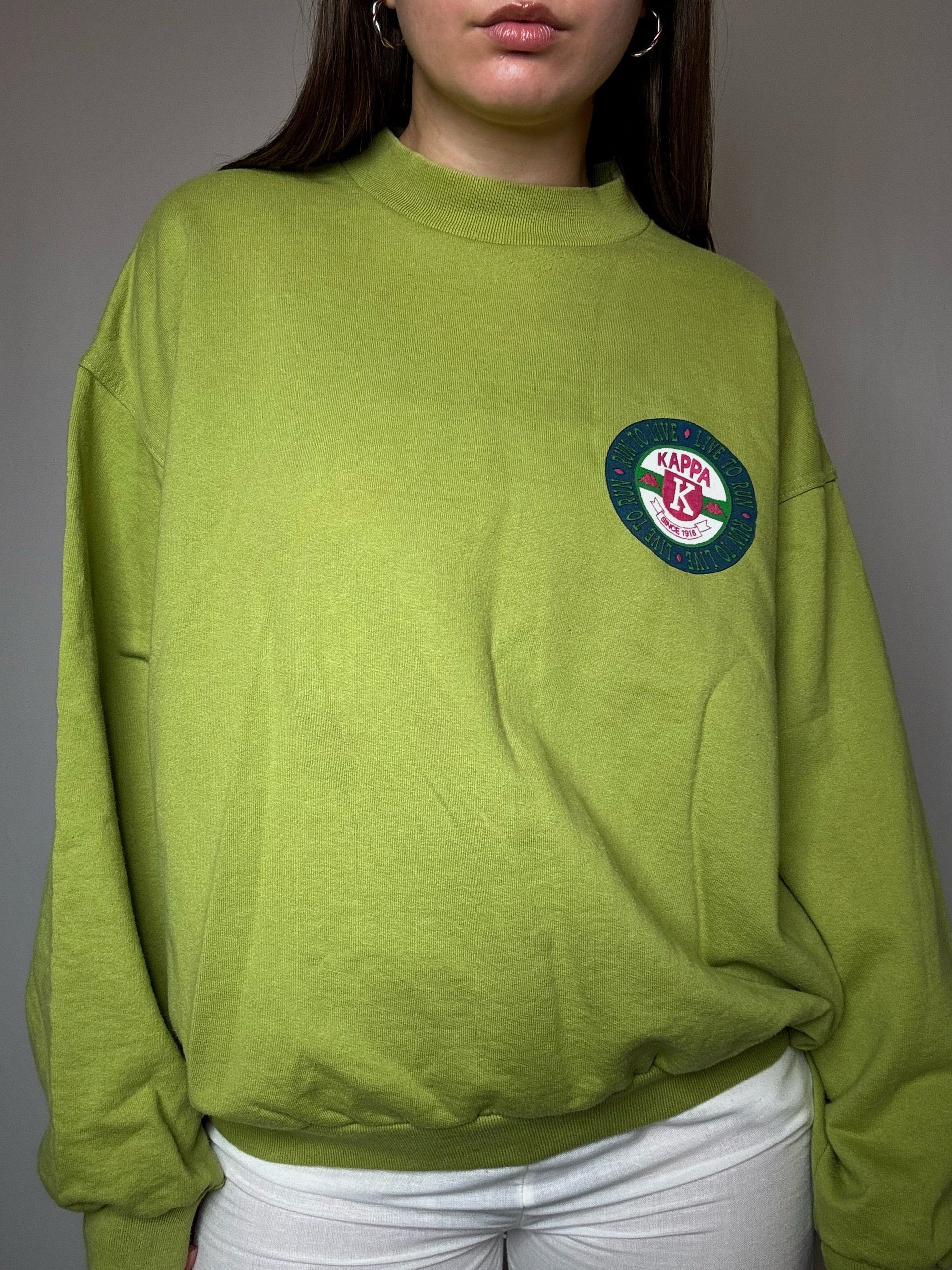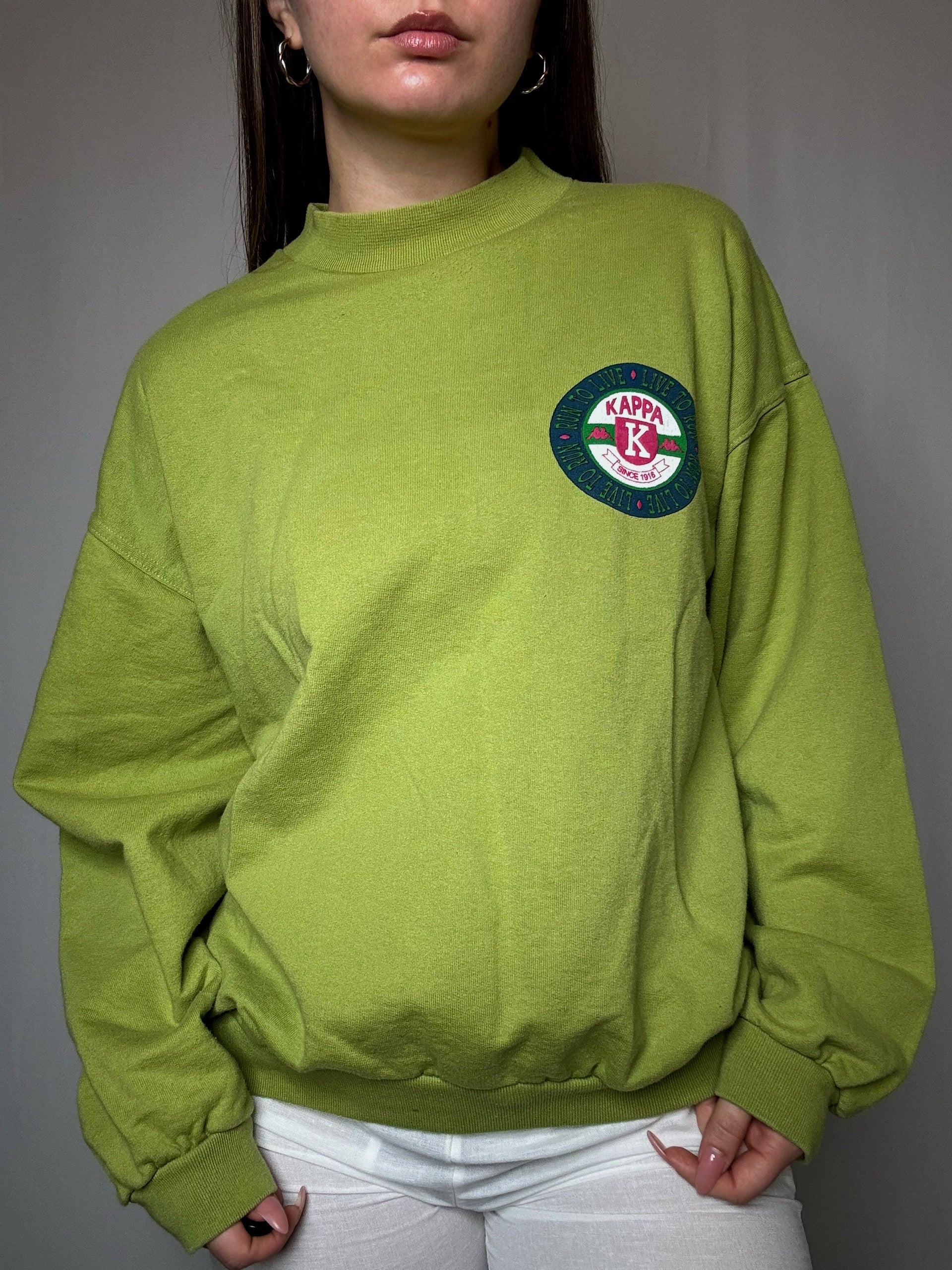 Sweat Kappa original des années 90, coupe oversize typique de l'époque avec l'écusson vintage et coloris vert acid, une piece rétro authentique parfaite !
