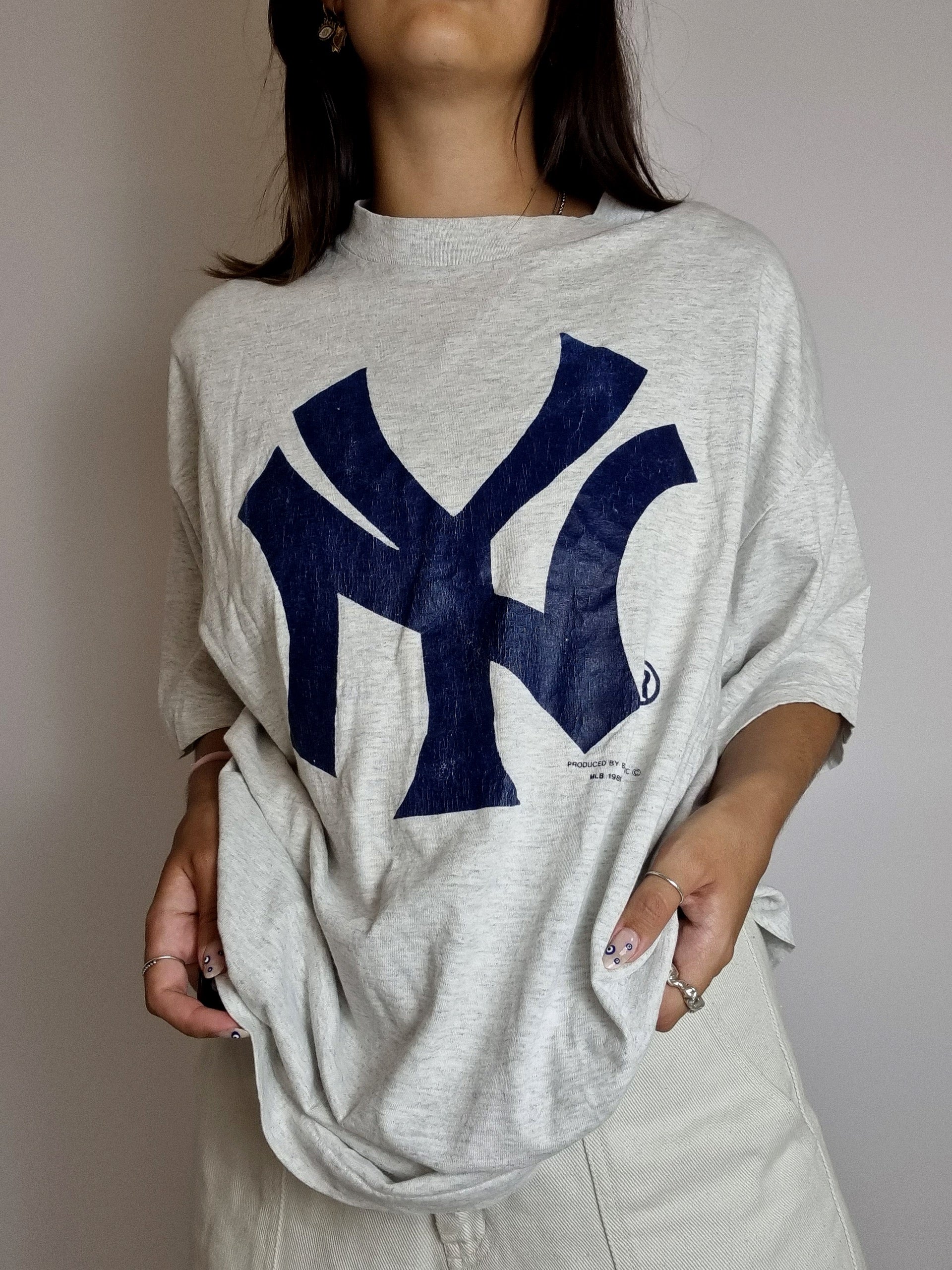 Hellgraues und blaues Vintage-NY-XXL-T-Shirt