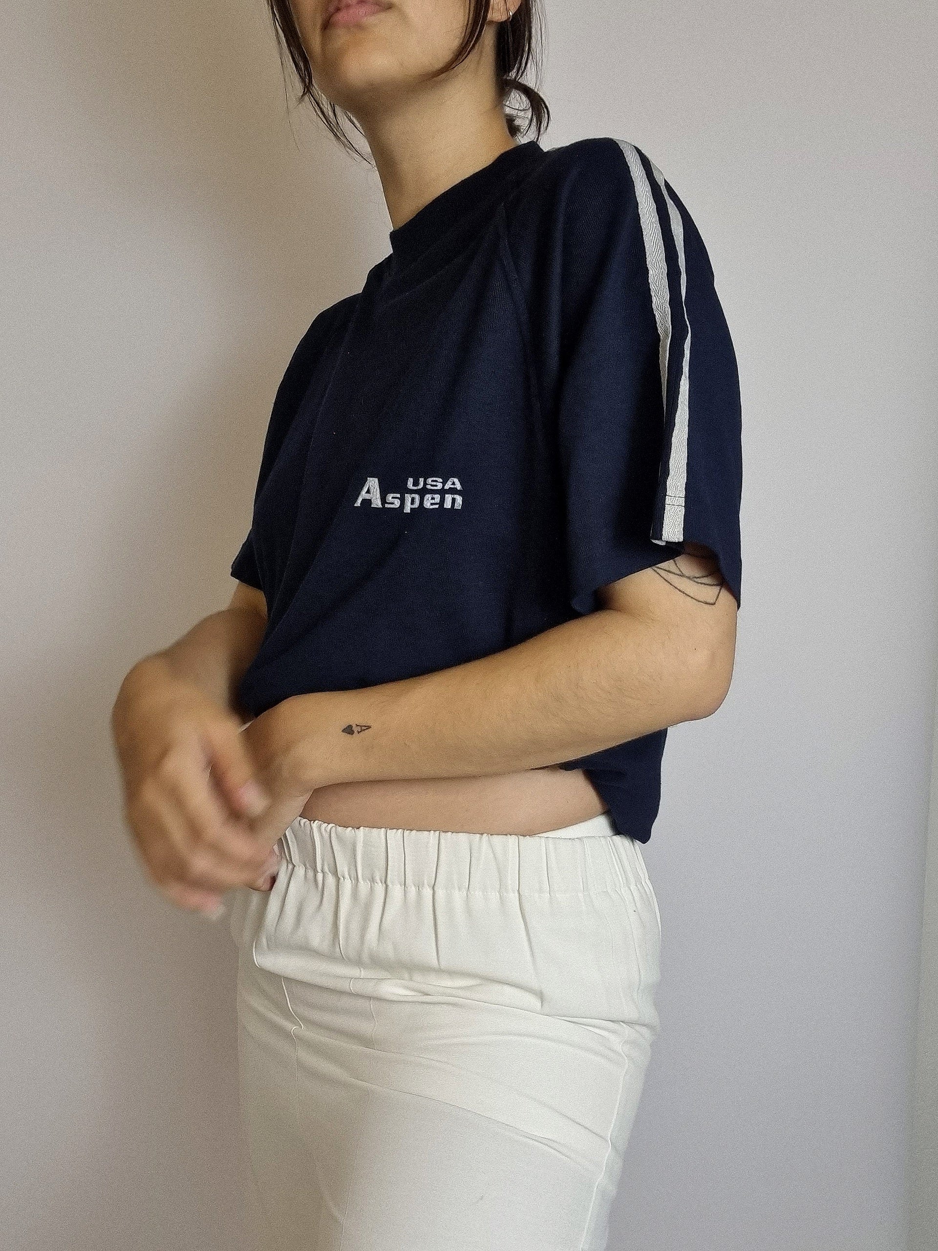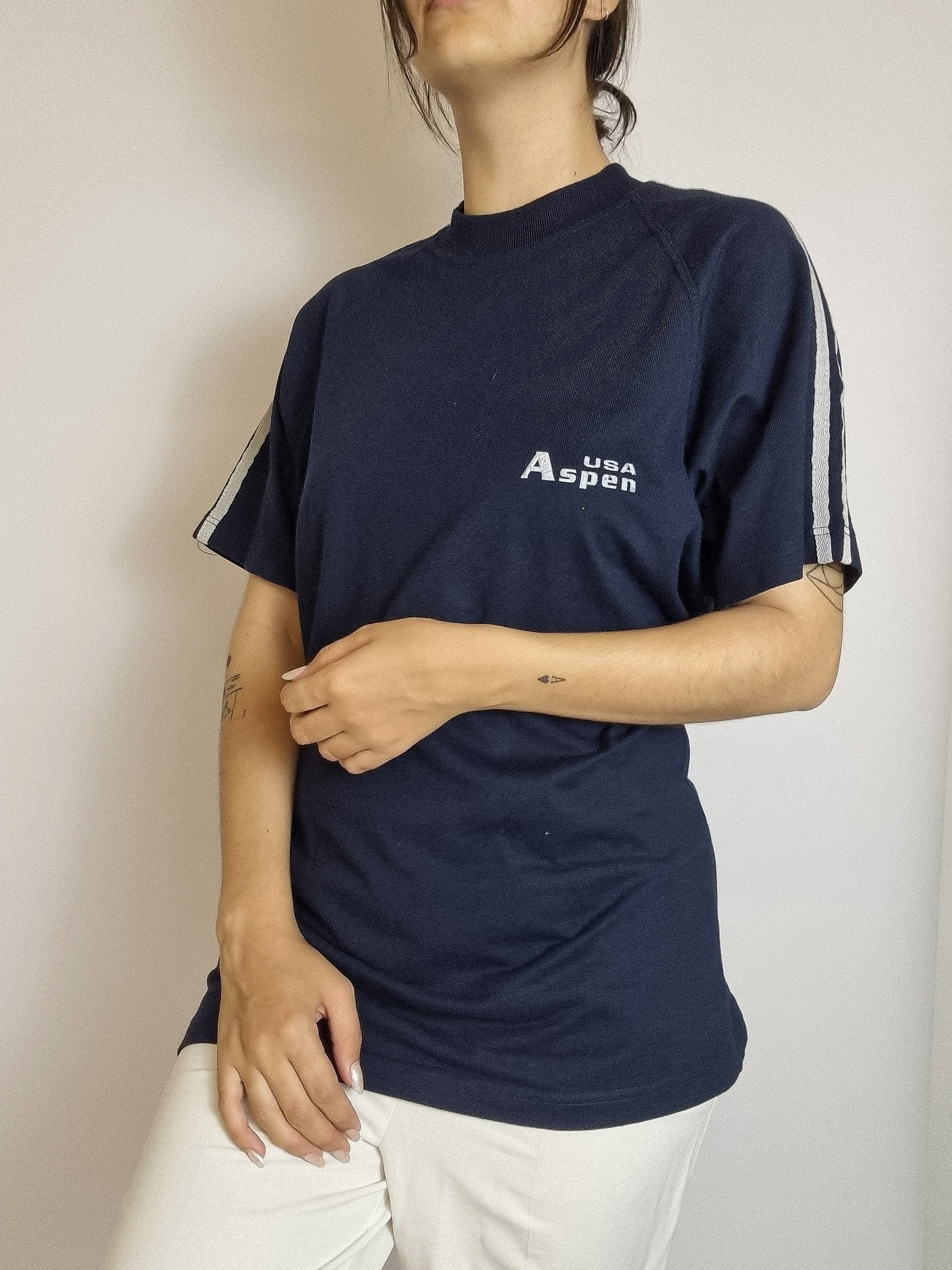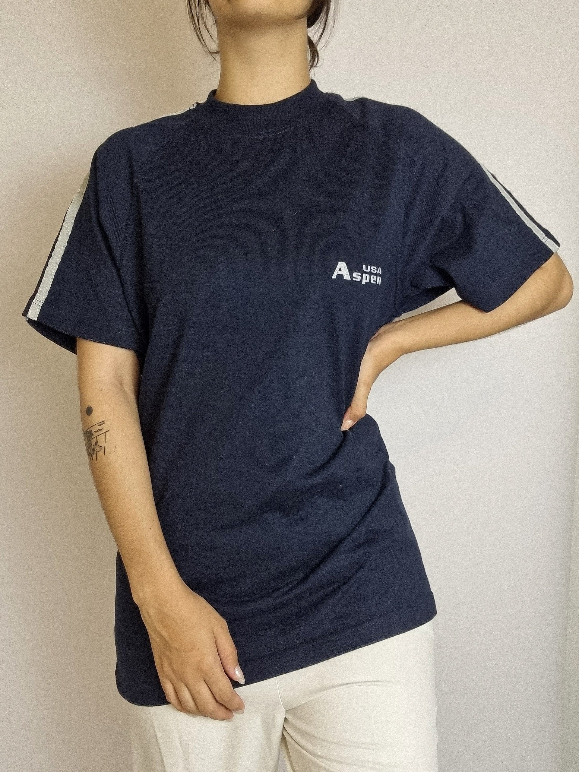 Vintage schlichtes dunkelblaues T-Shirt XL