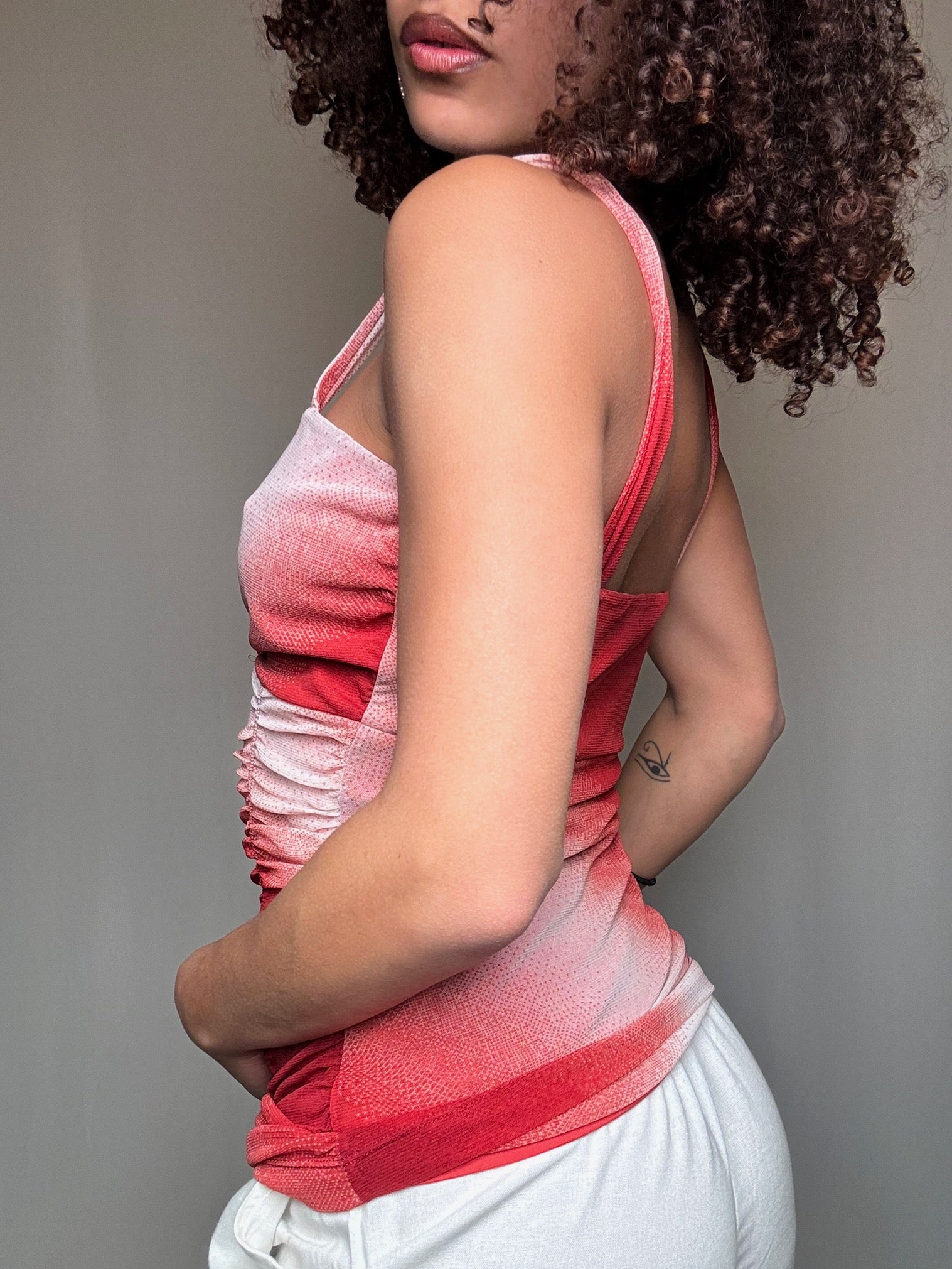 Top à fronces rouge et rose M/L vintage