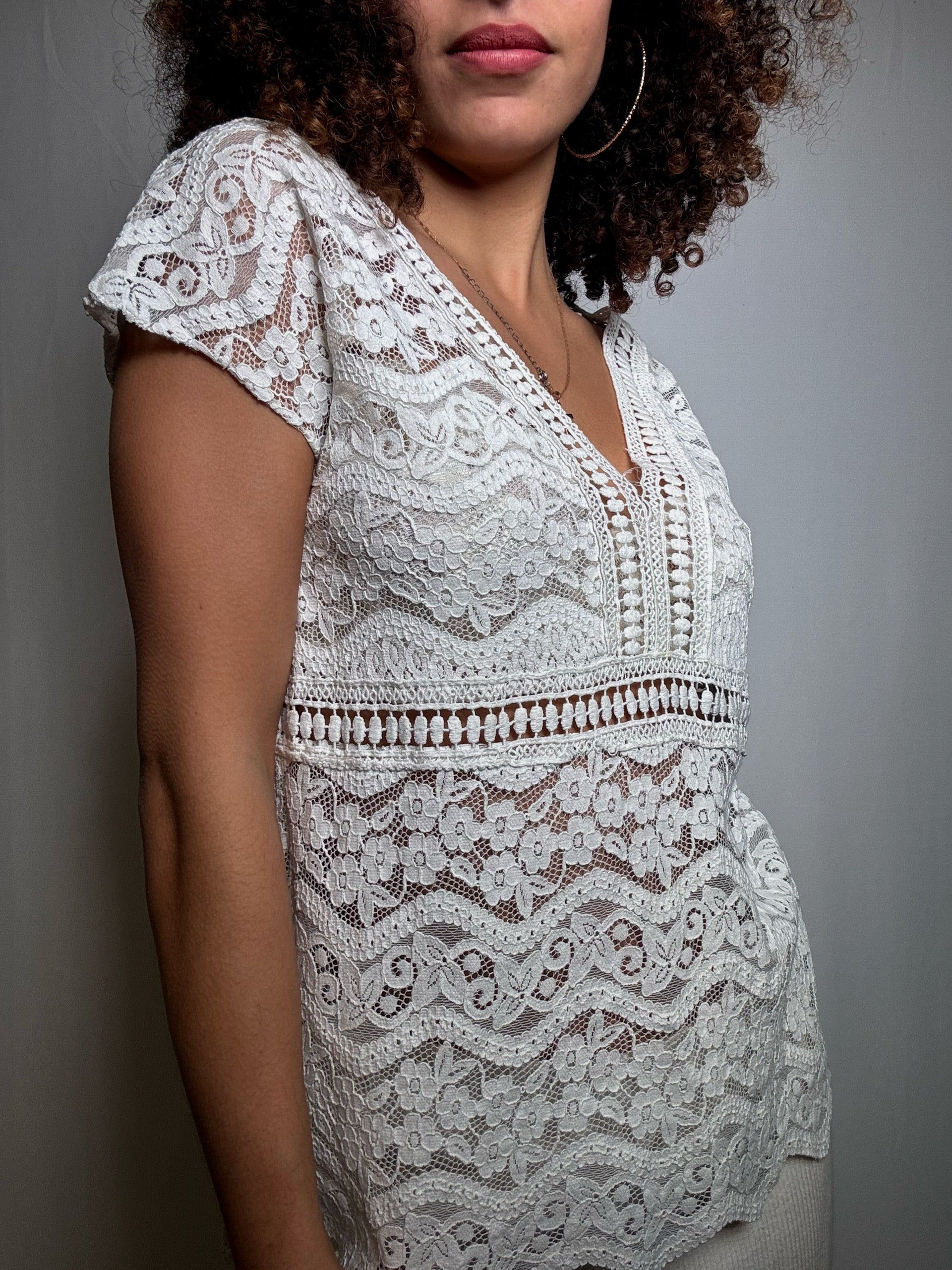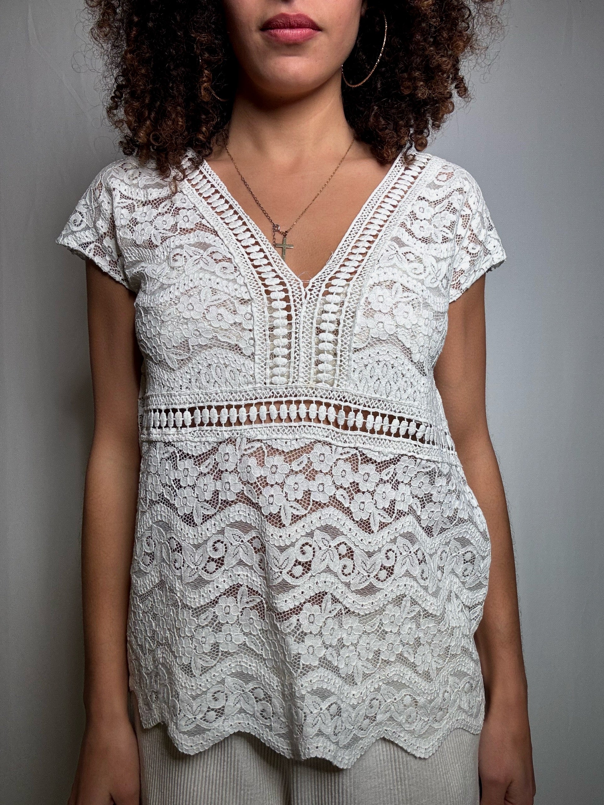 MODÈLE: La modèle mesure 1.64 et porte du généralement du S