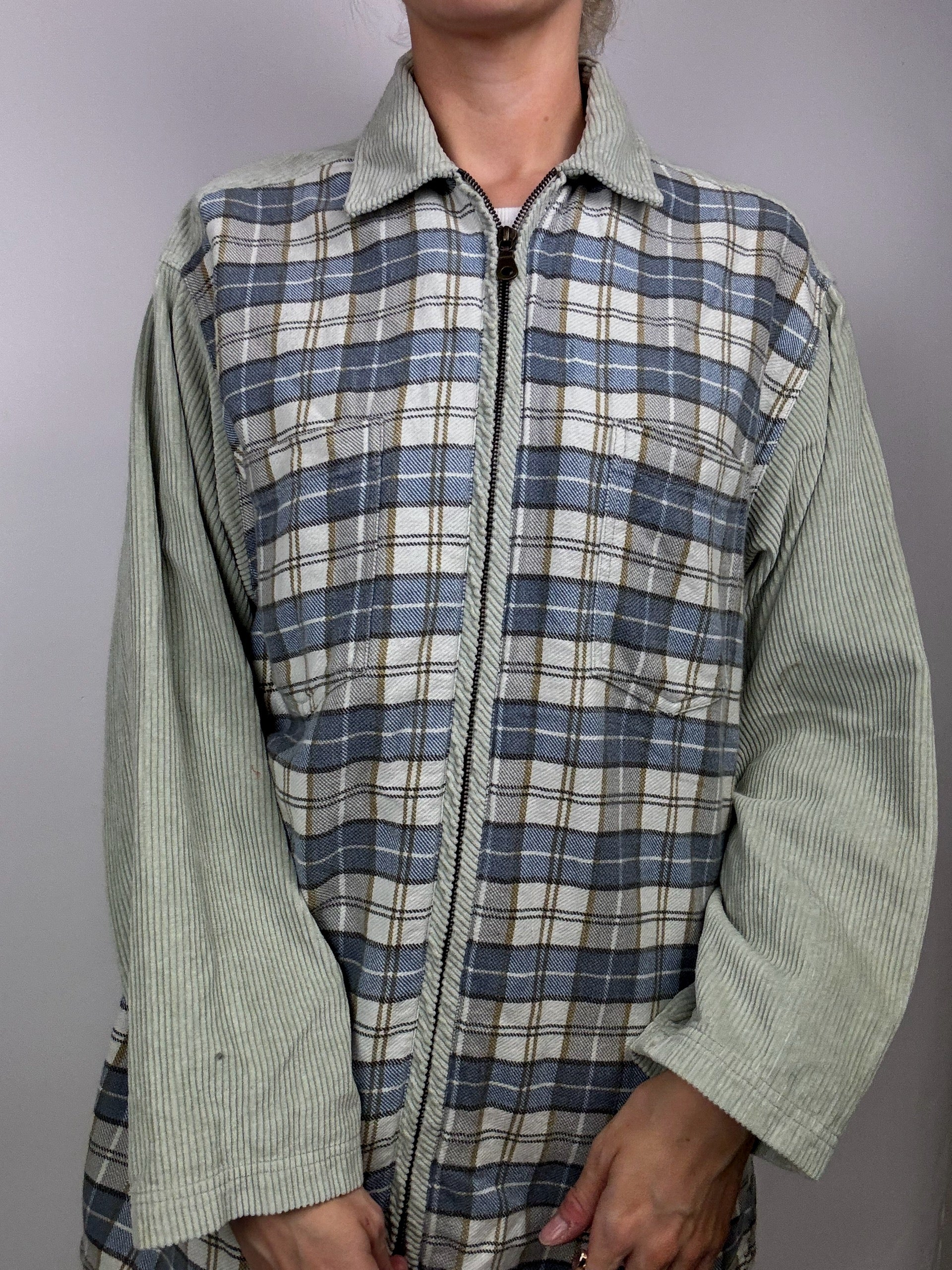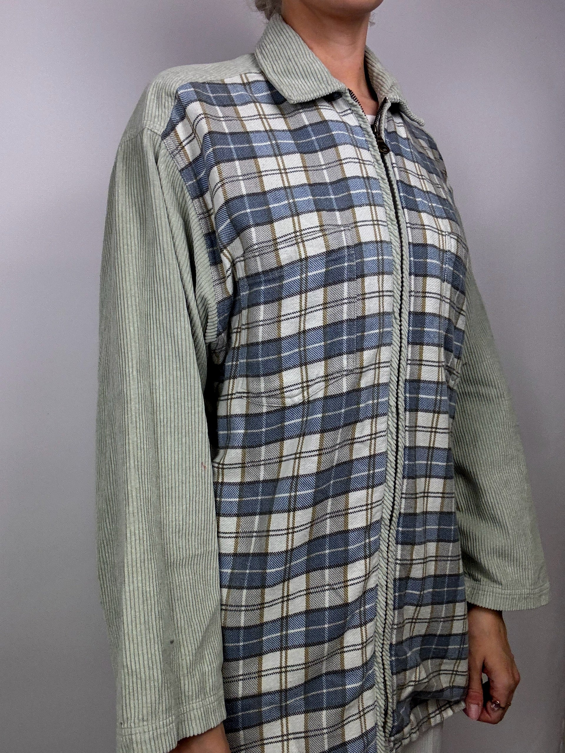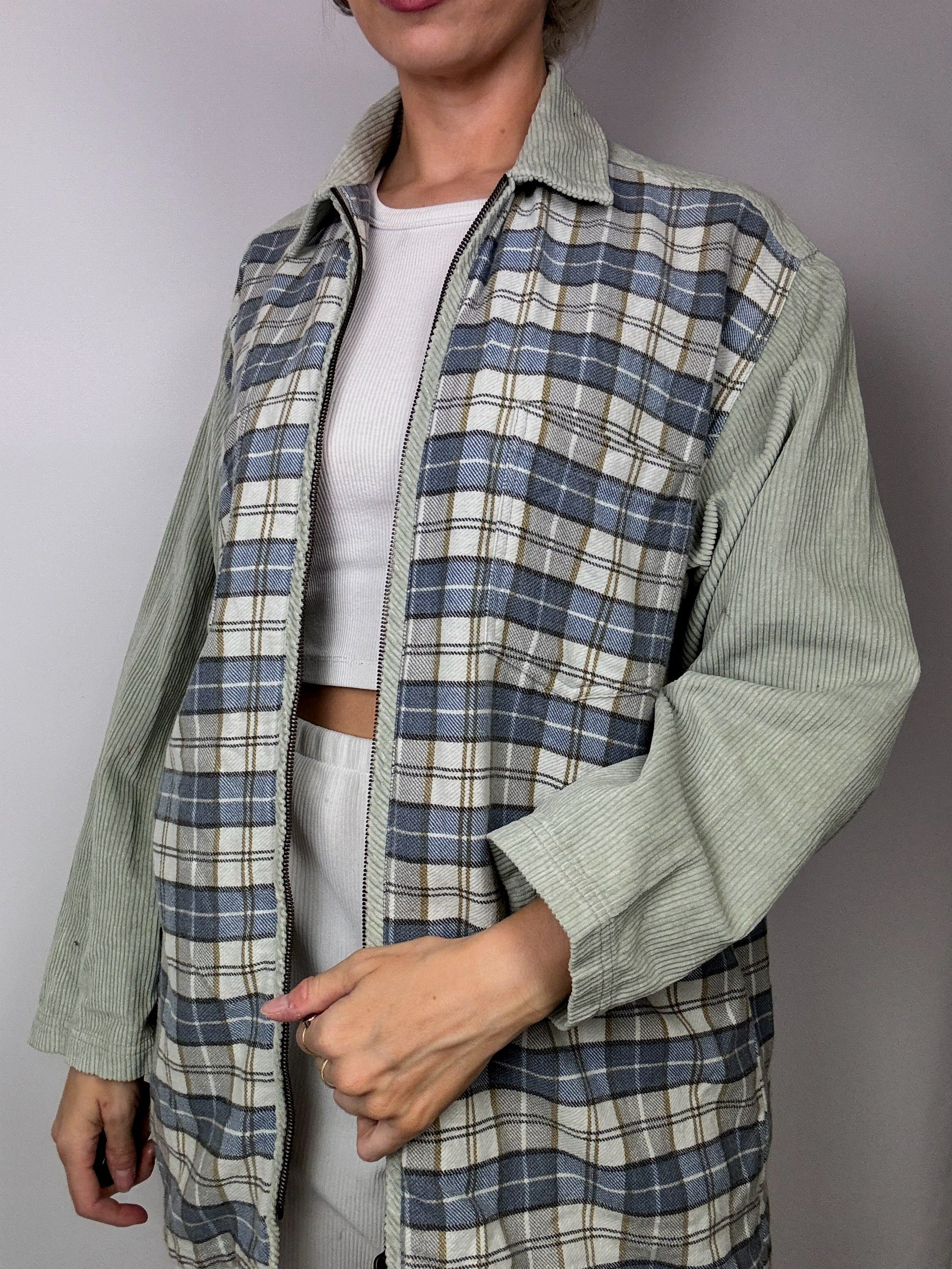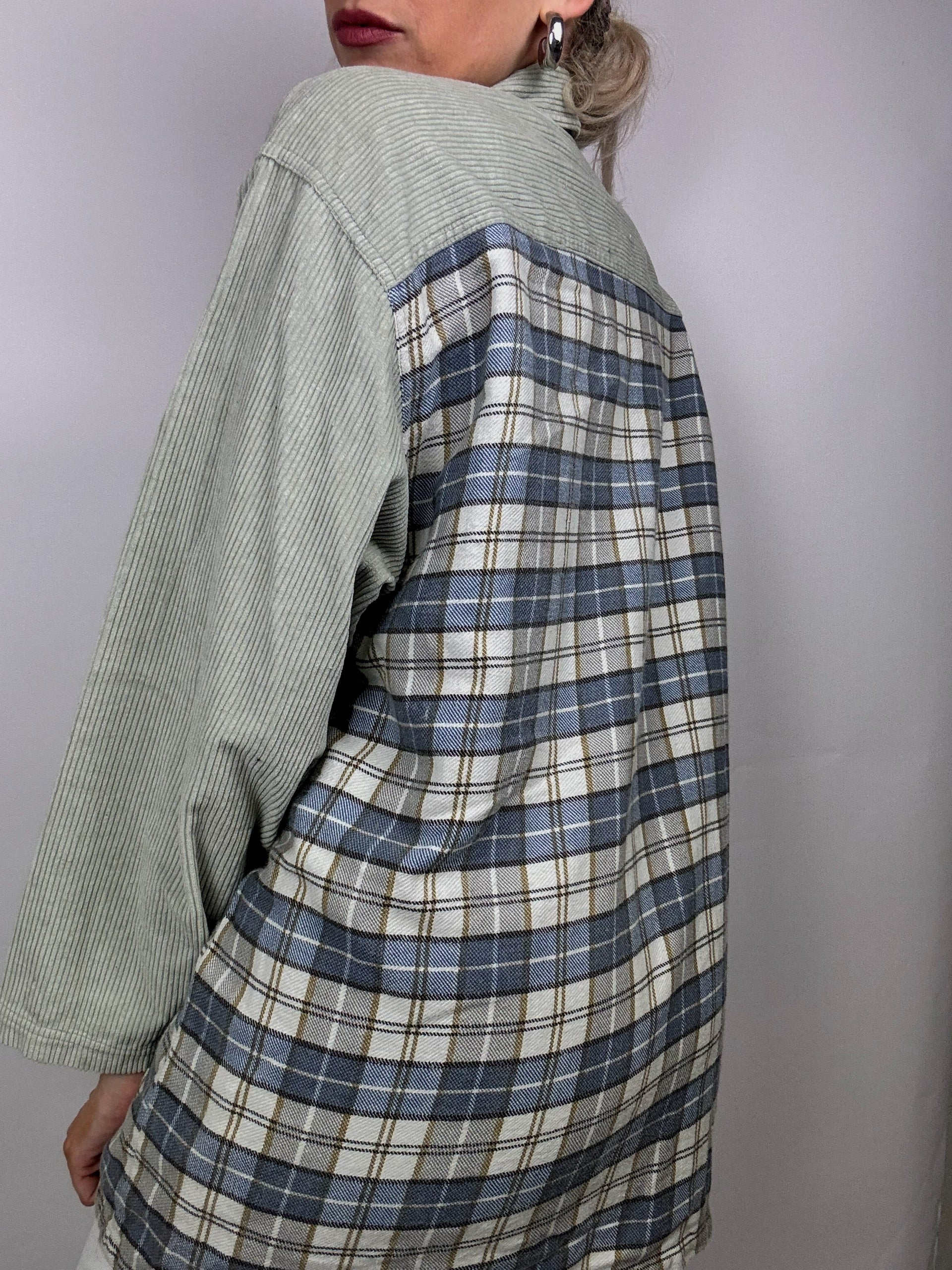 Vintage blau und grau kariertes Hemd mit Netzärmeln