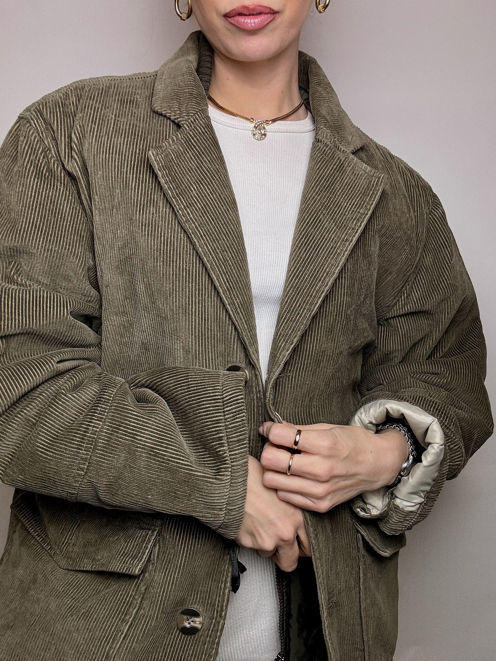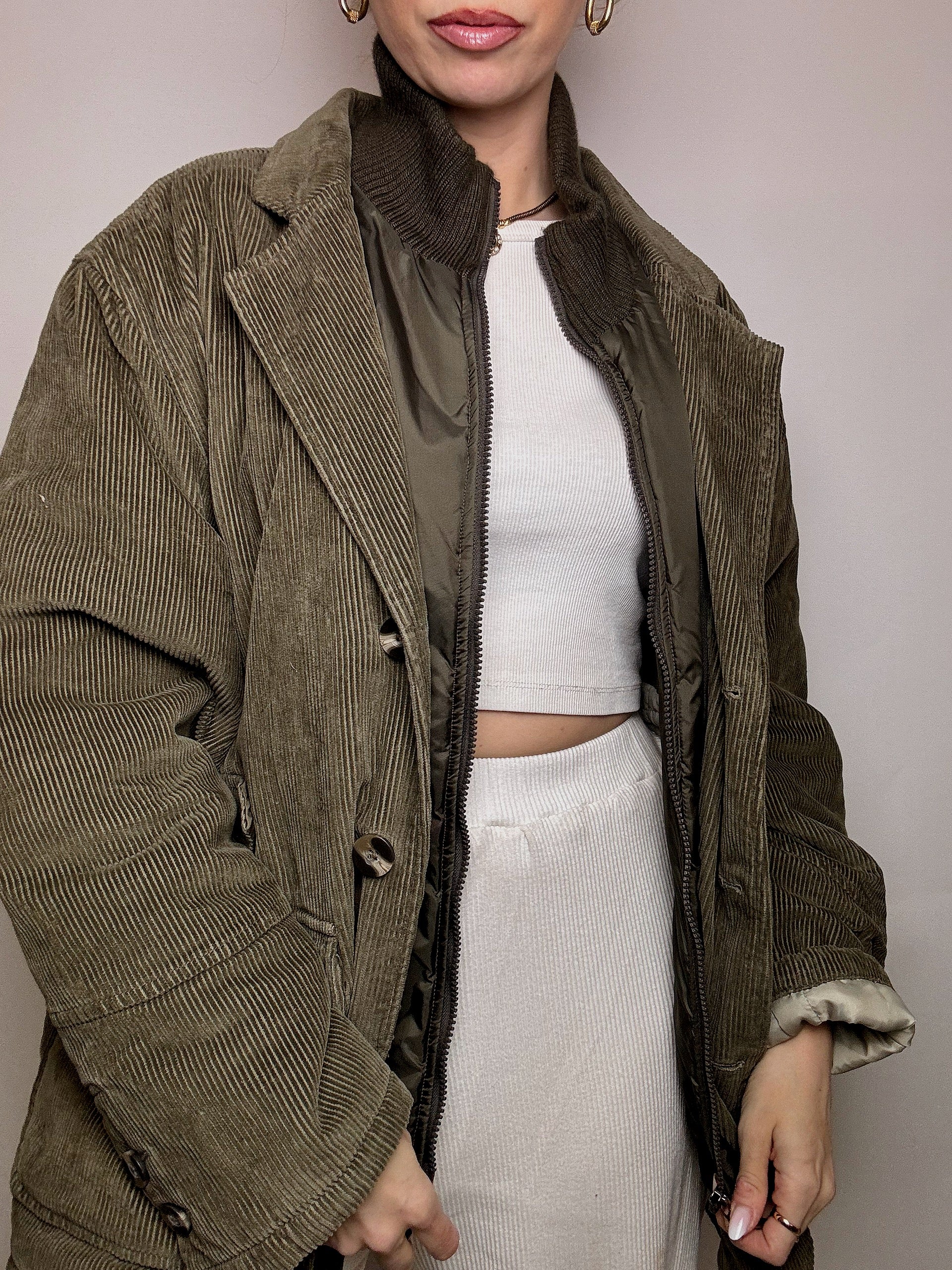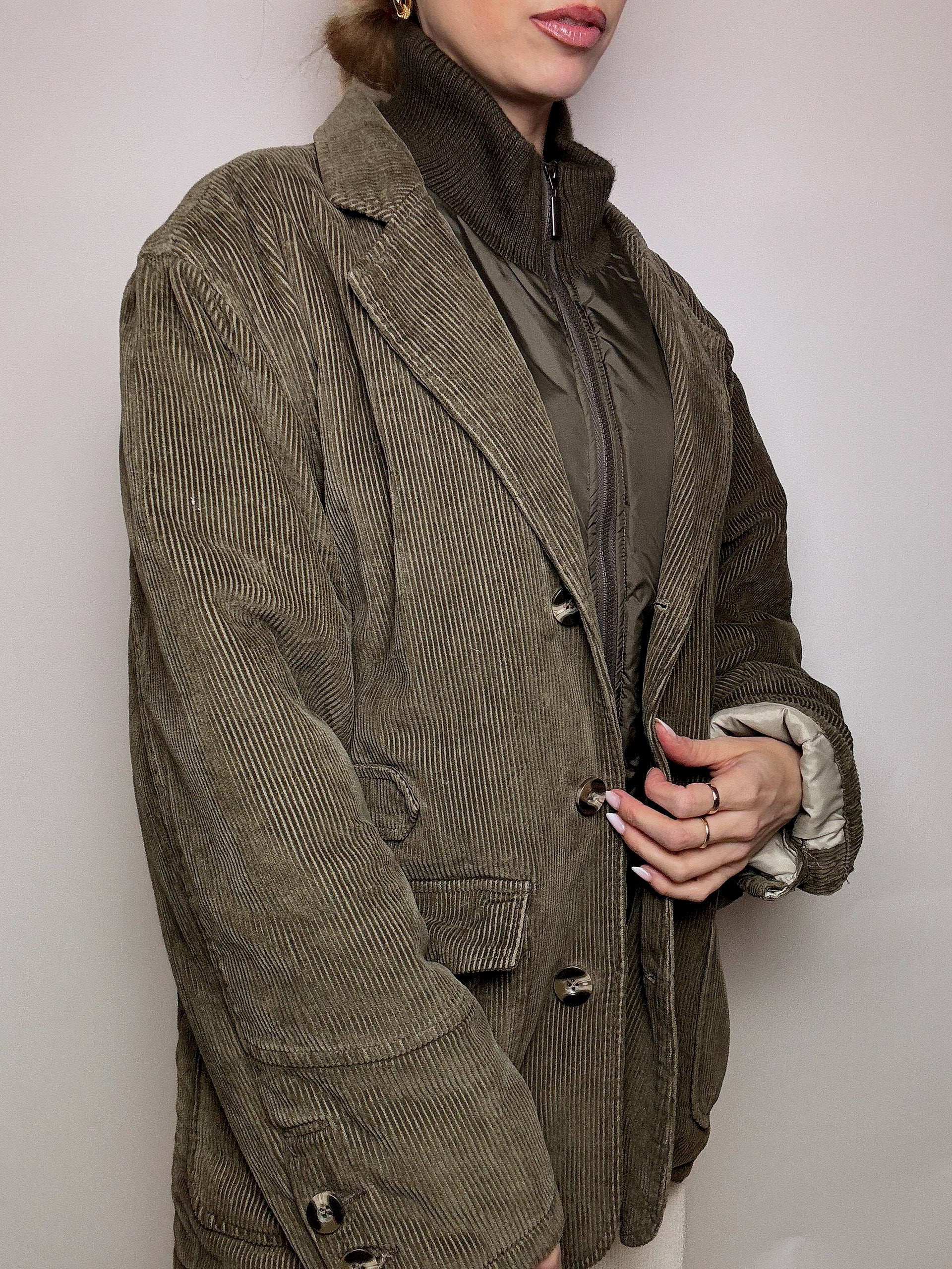 Vintage XL Khakijacke mit abnehmbarem Kragen