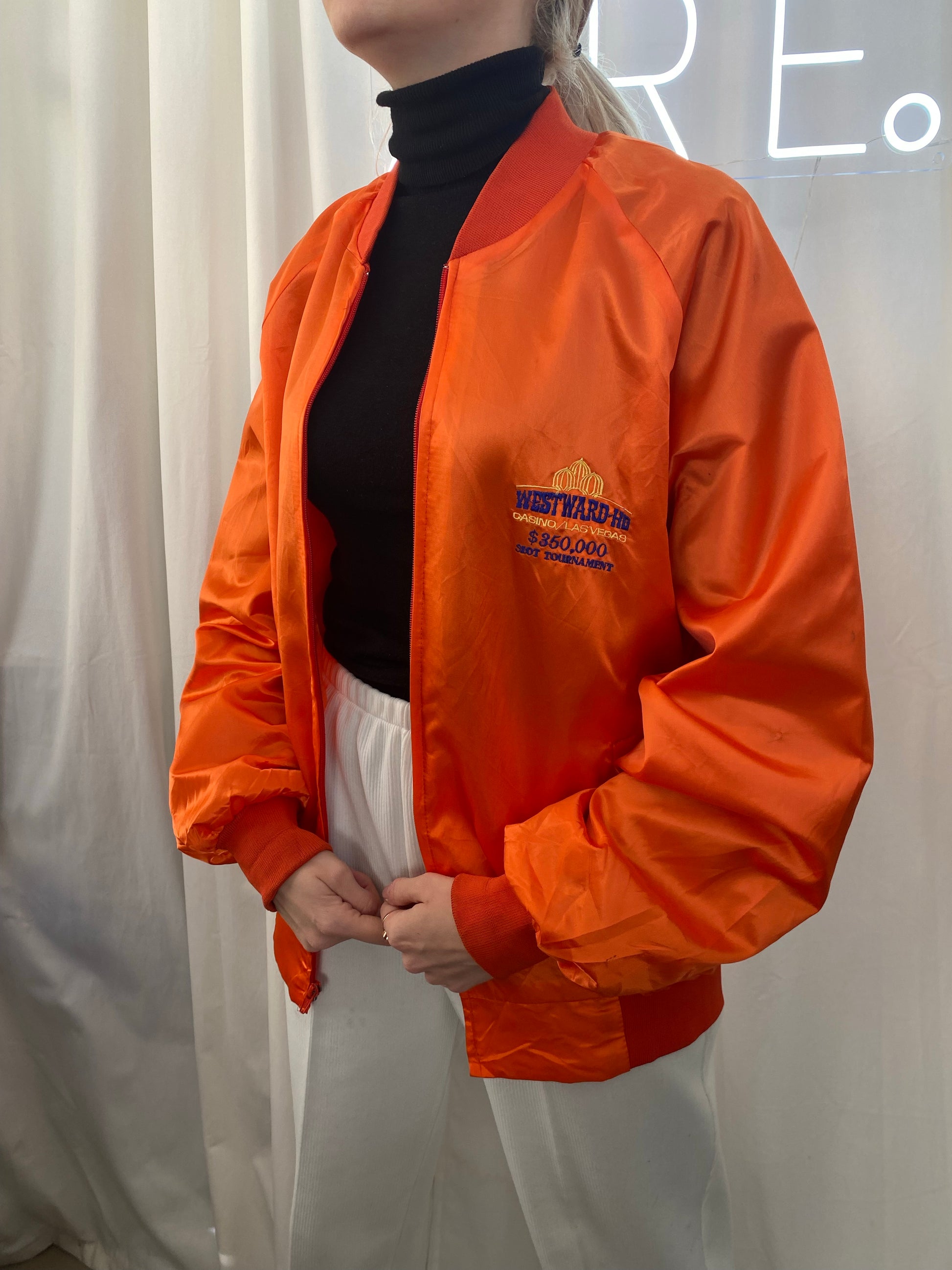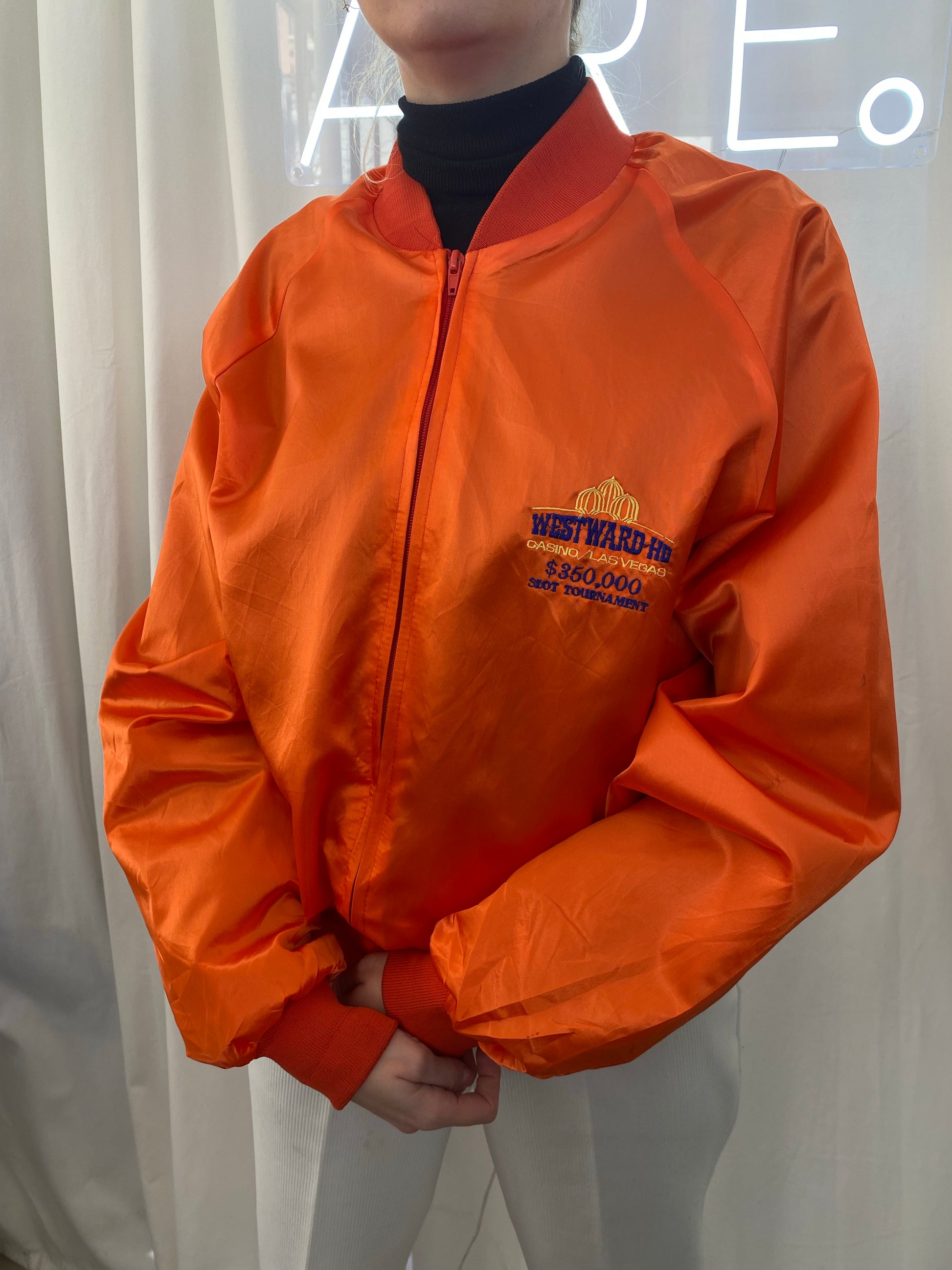West Ward XL Satin Orange Bomberjacke