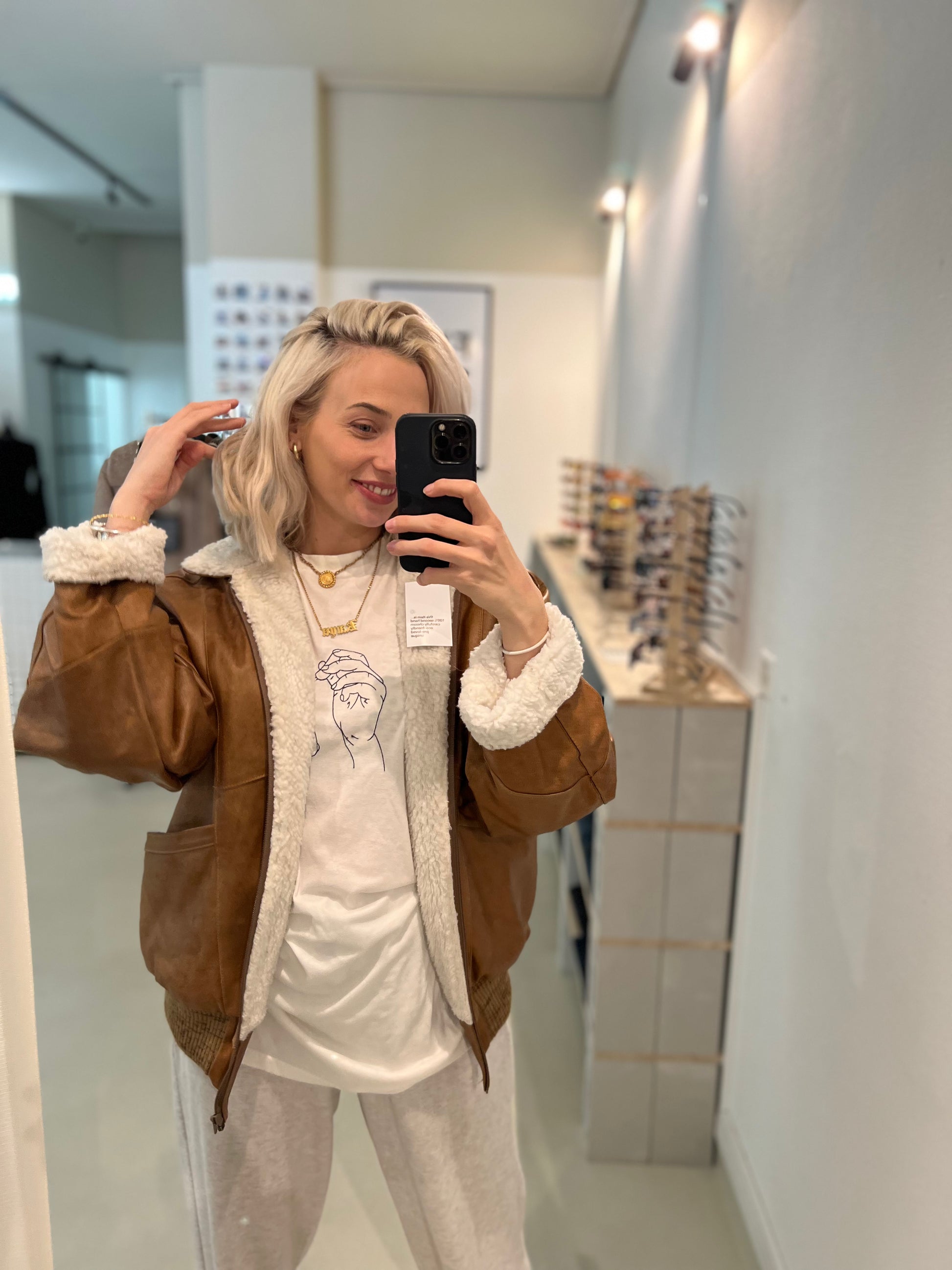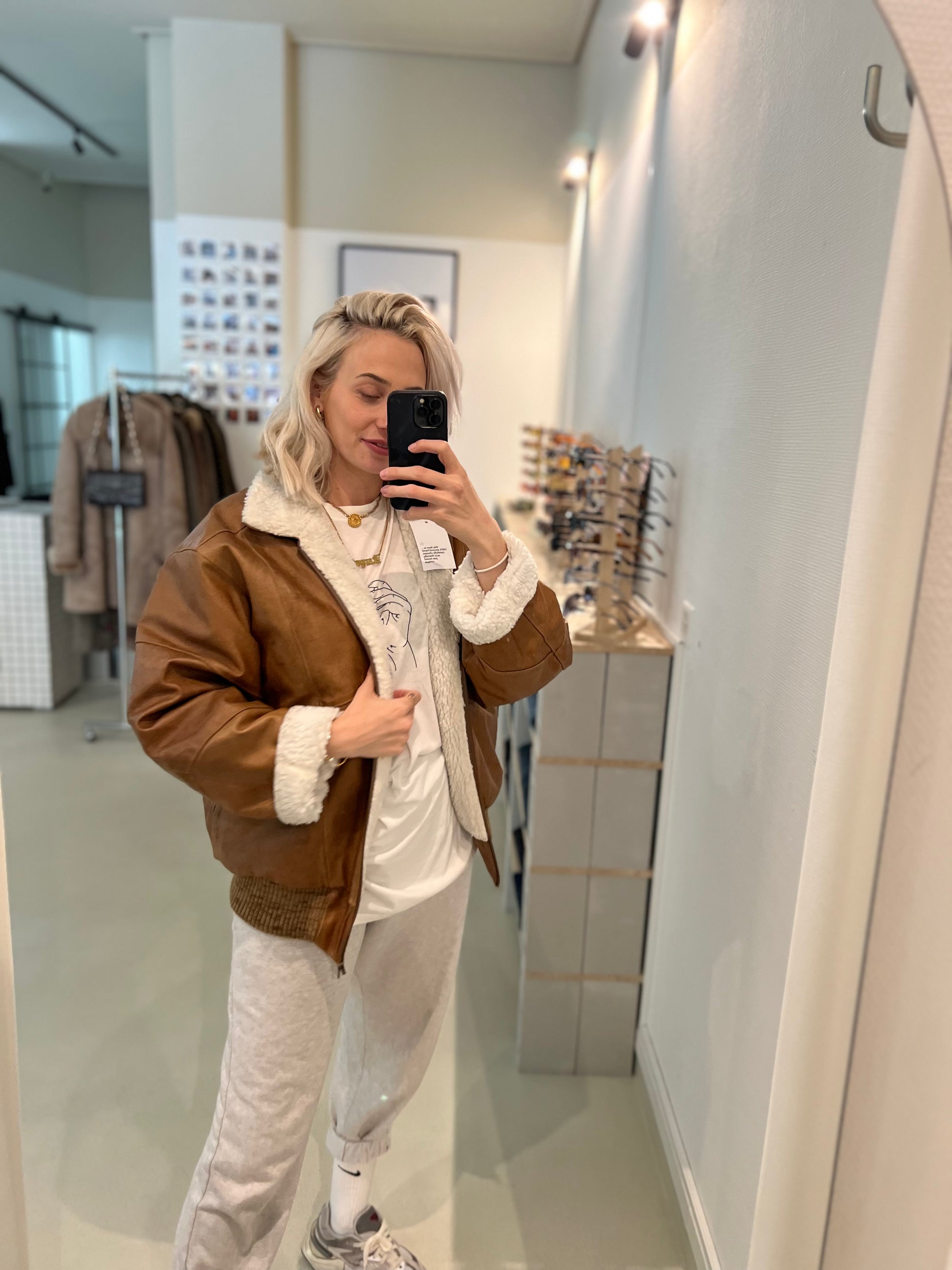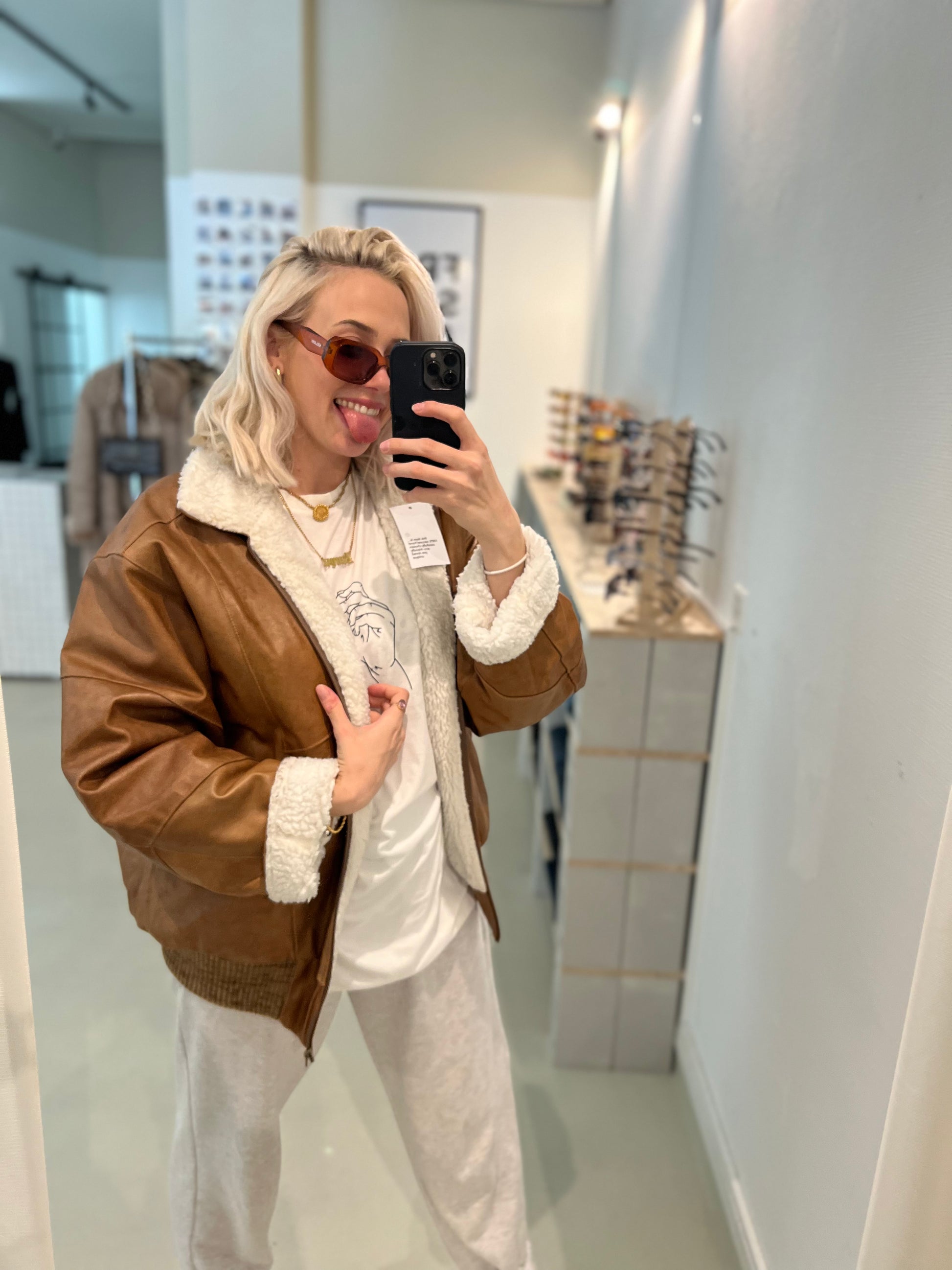 Braune und cremefarbene Vintage-Lammfelljacke M/L