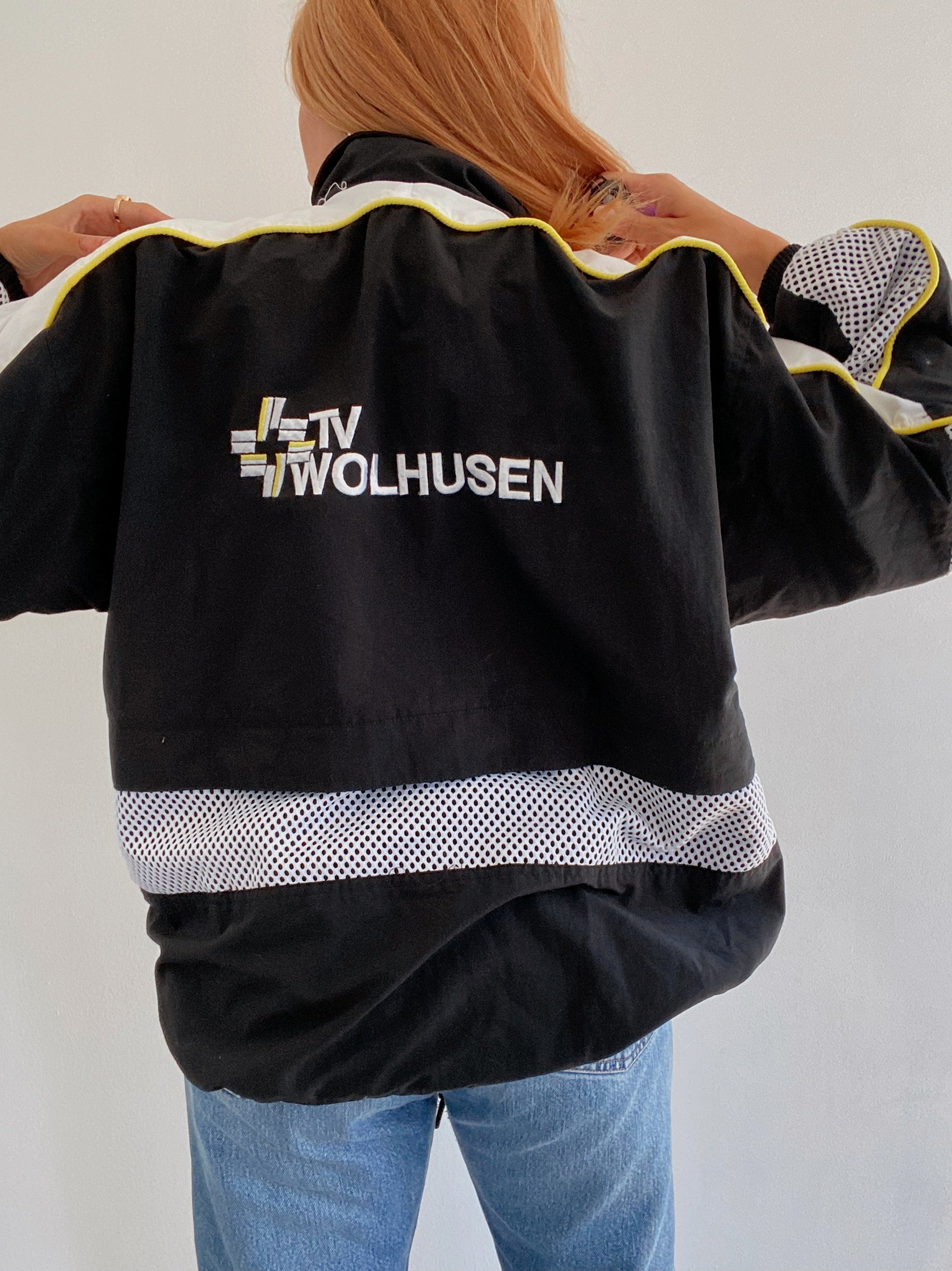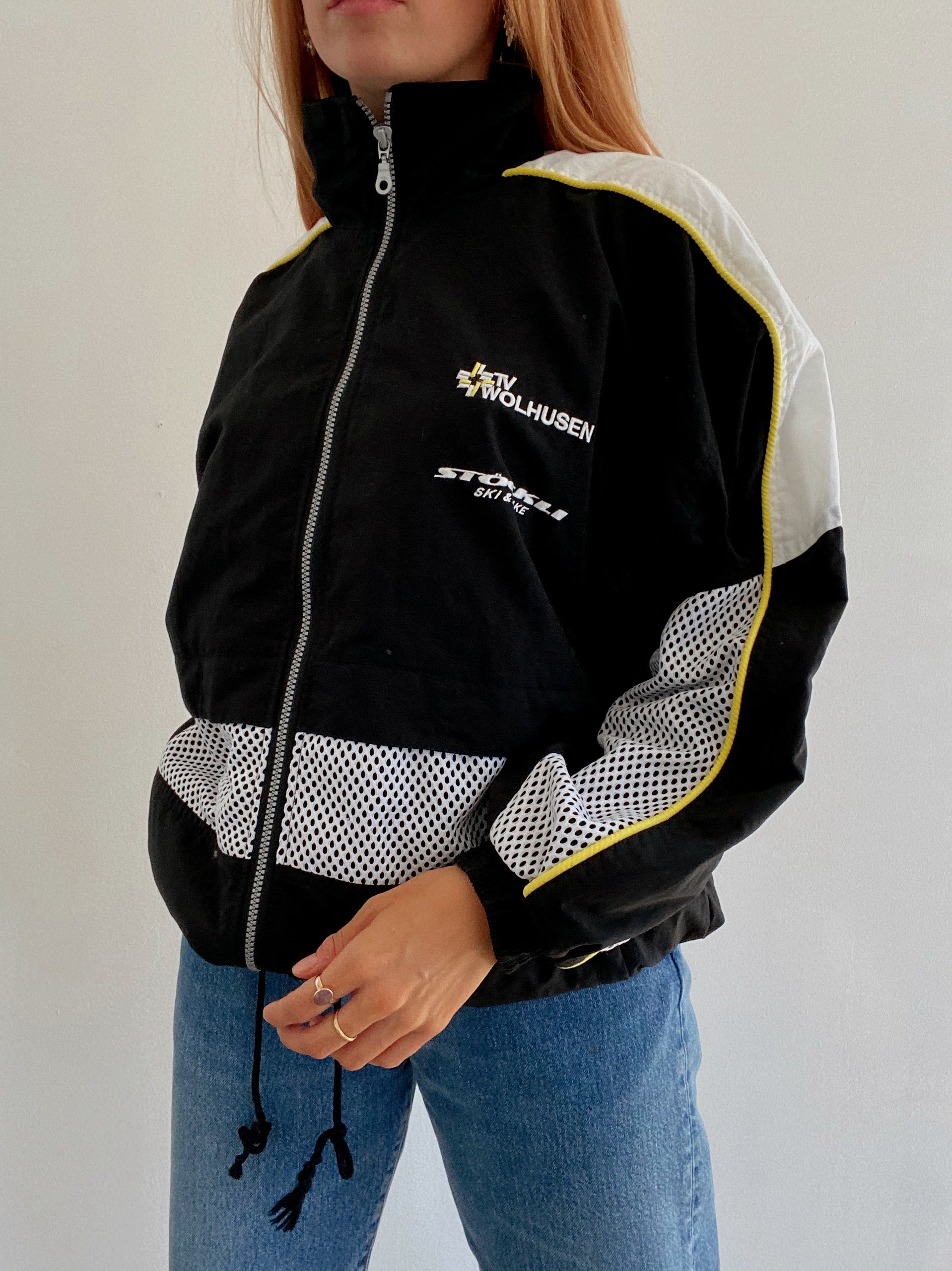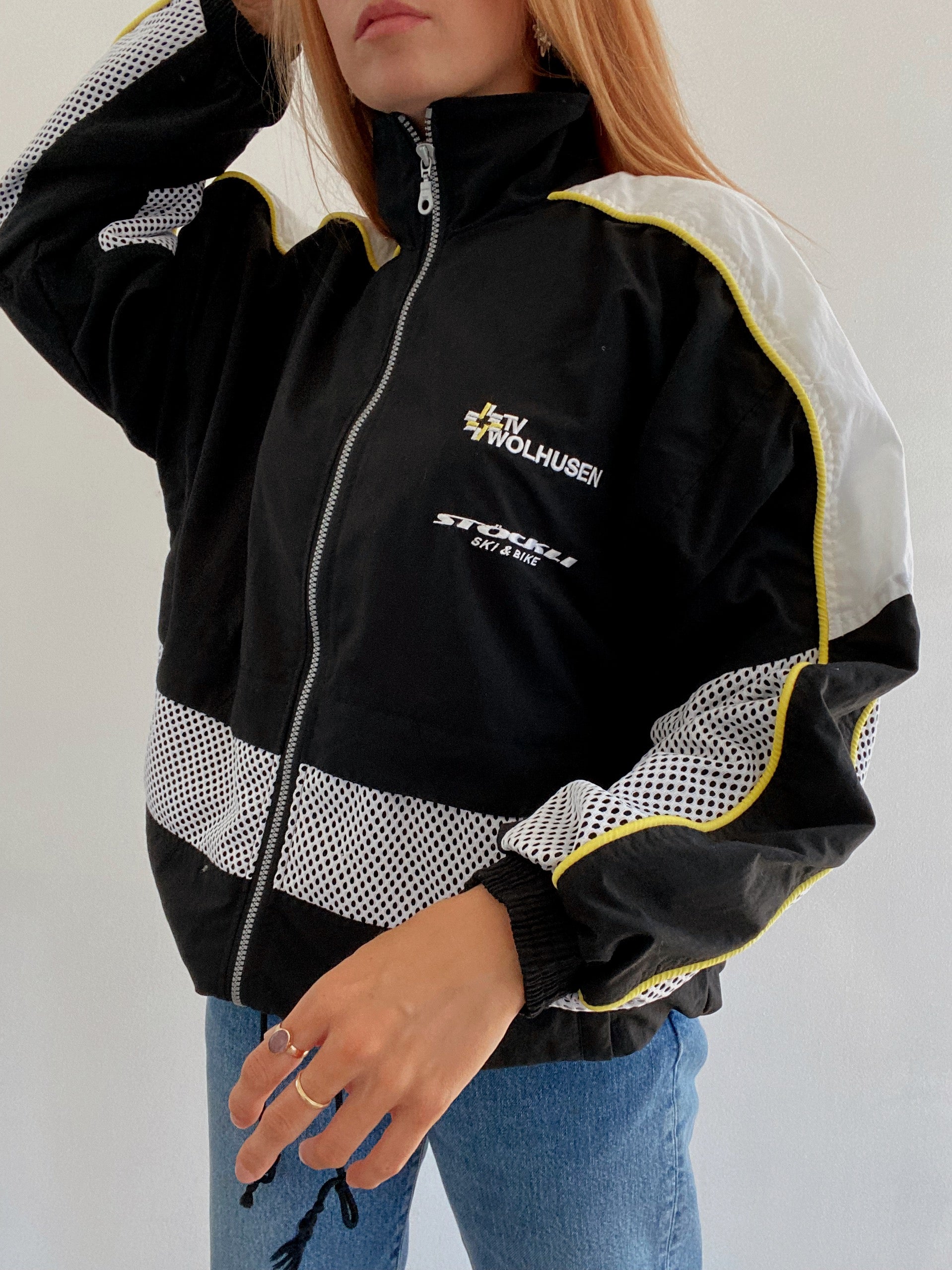 Vintage schwarz-graue und gelbe Joggingjacke M