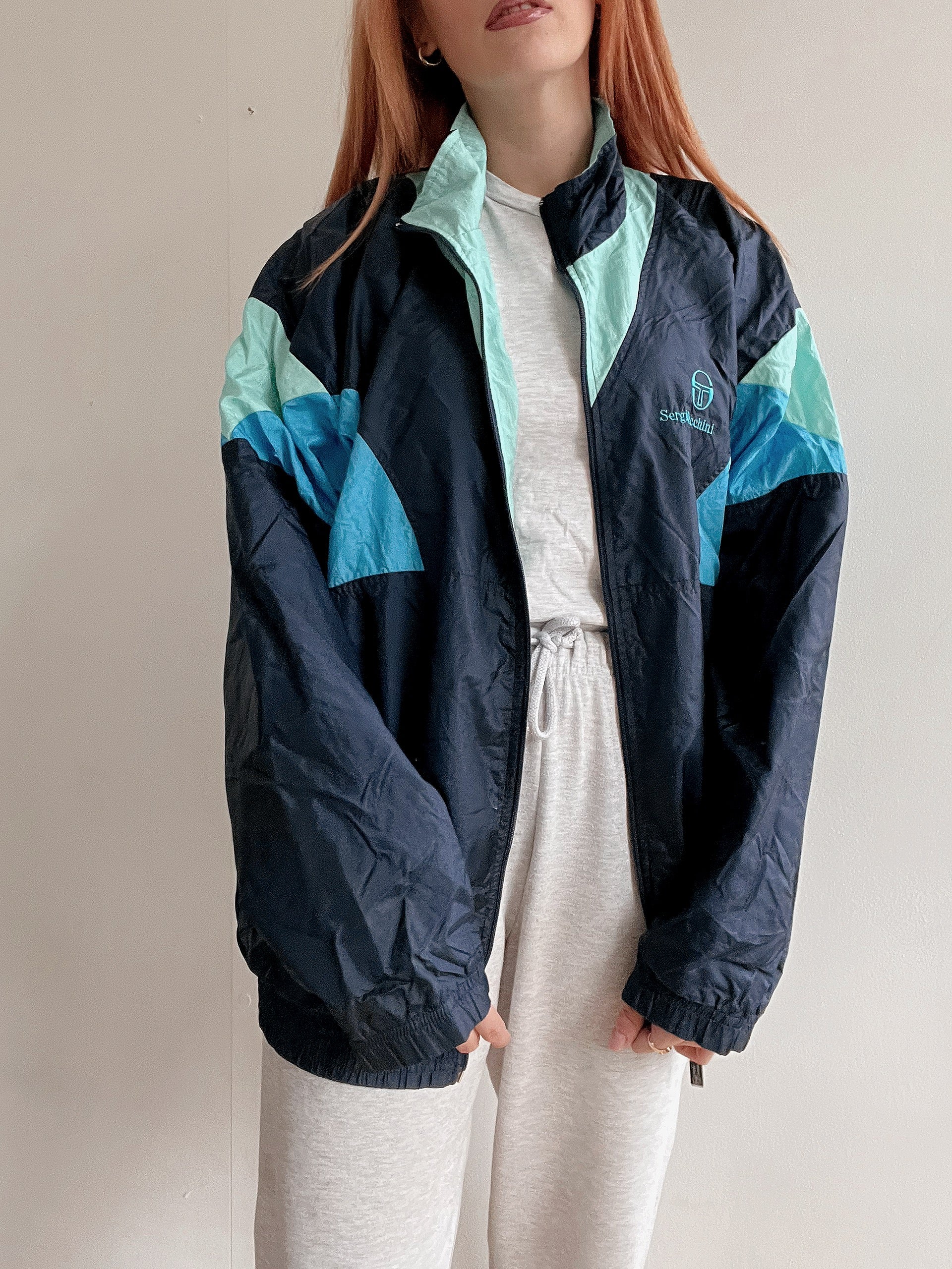 Vintage Sergio Tacchini dunkelblaue Joggingjacke XXL