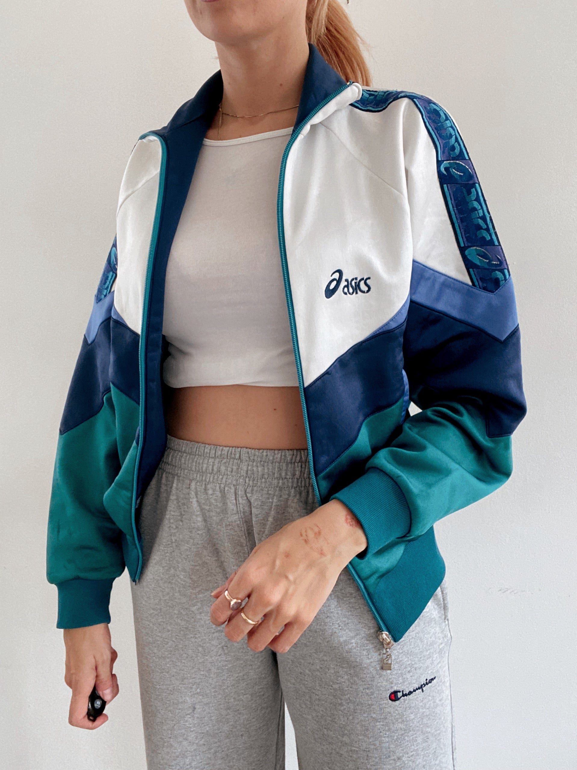 ASICS M Vintage-Joggingjacke in Meeresgrün und Blau