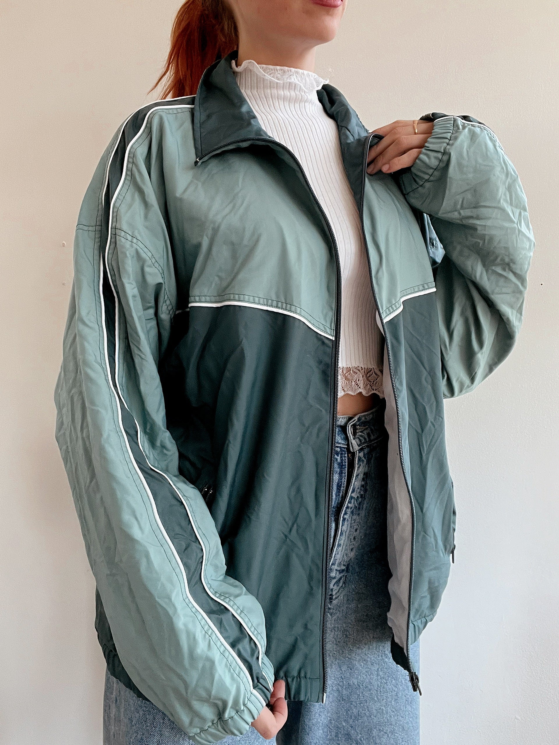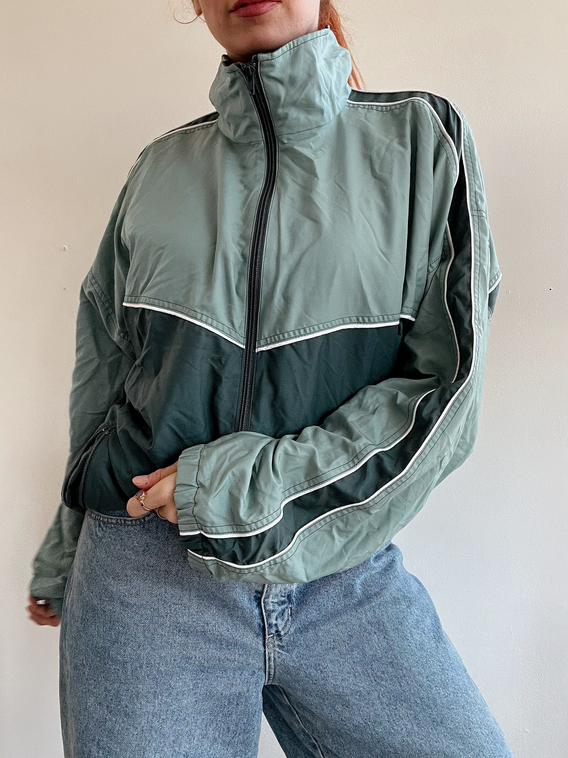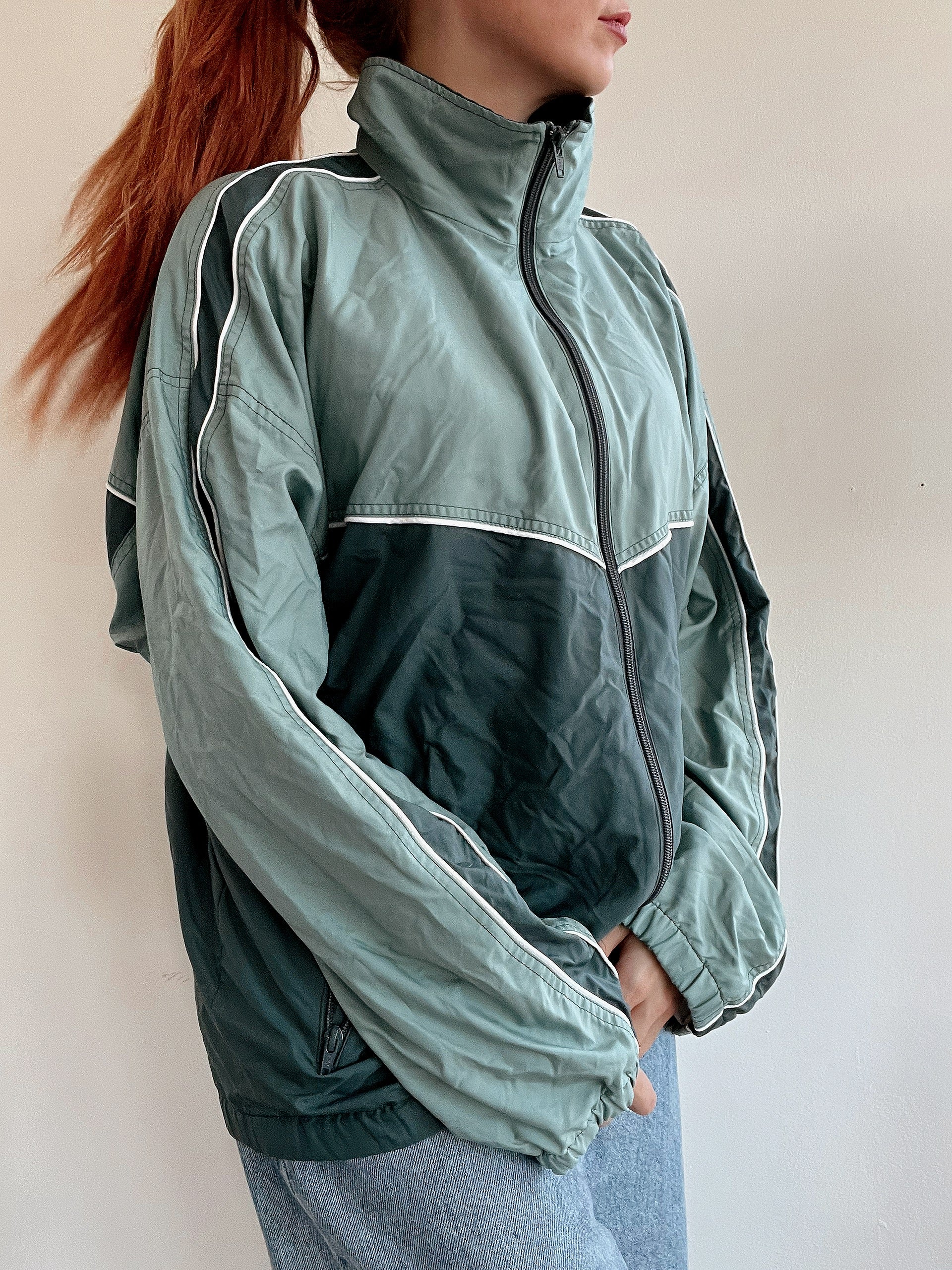 Vintage dunkelgrüne Joggingjacke L