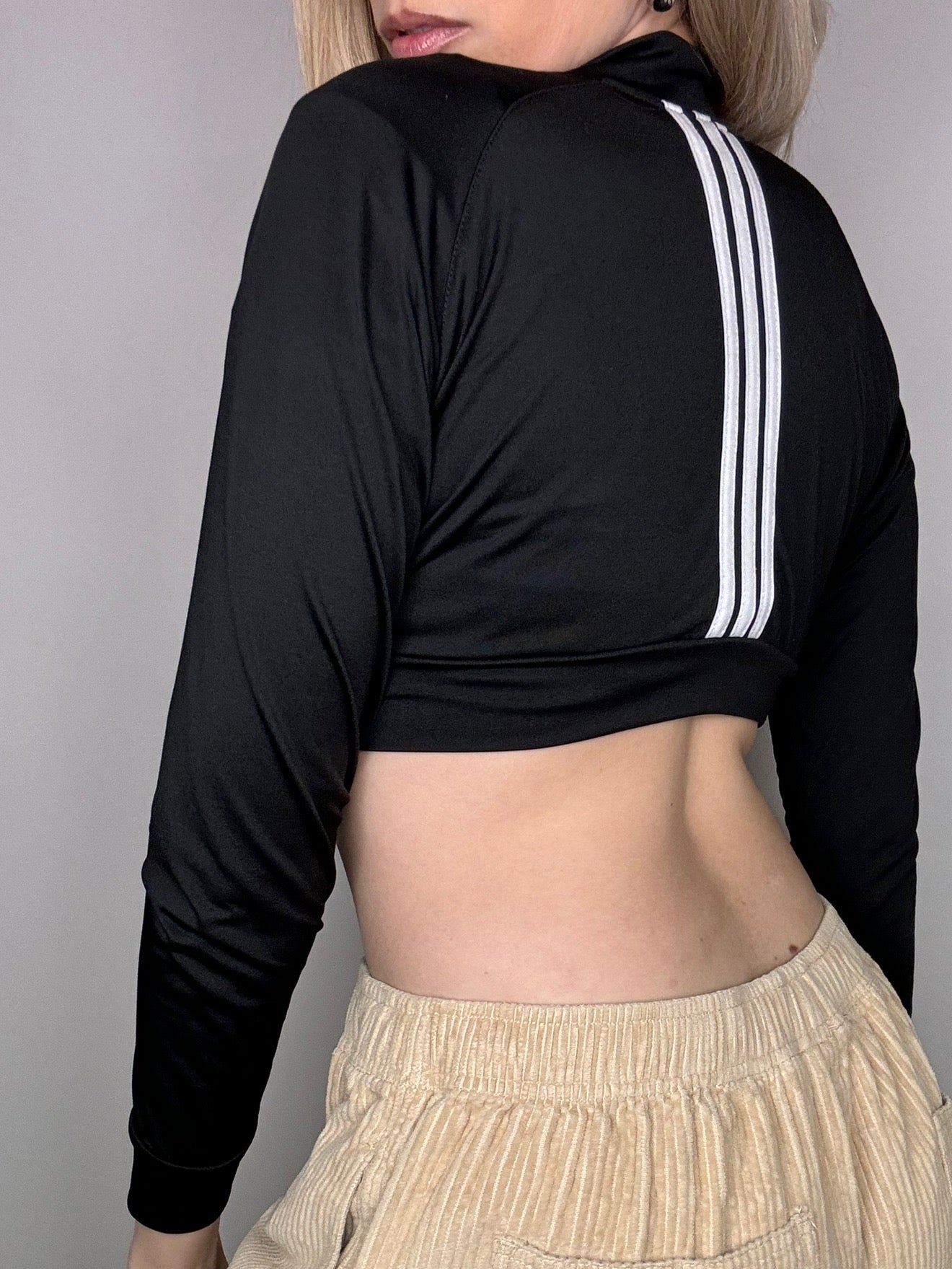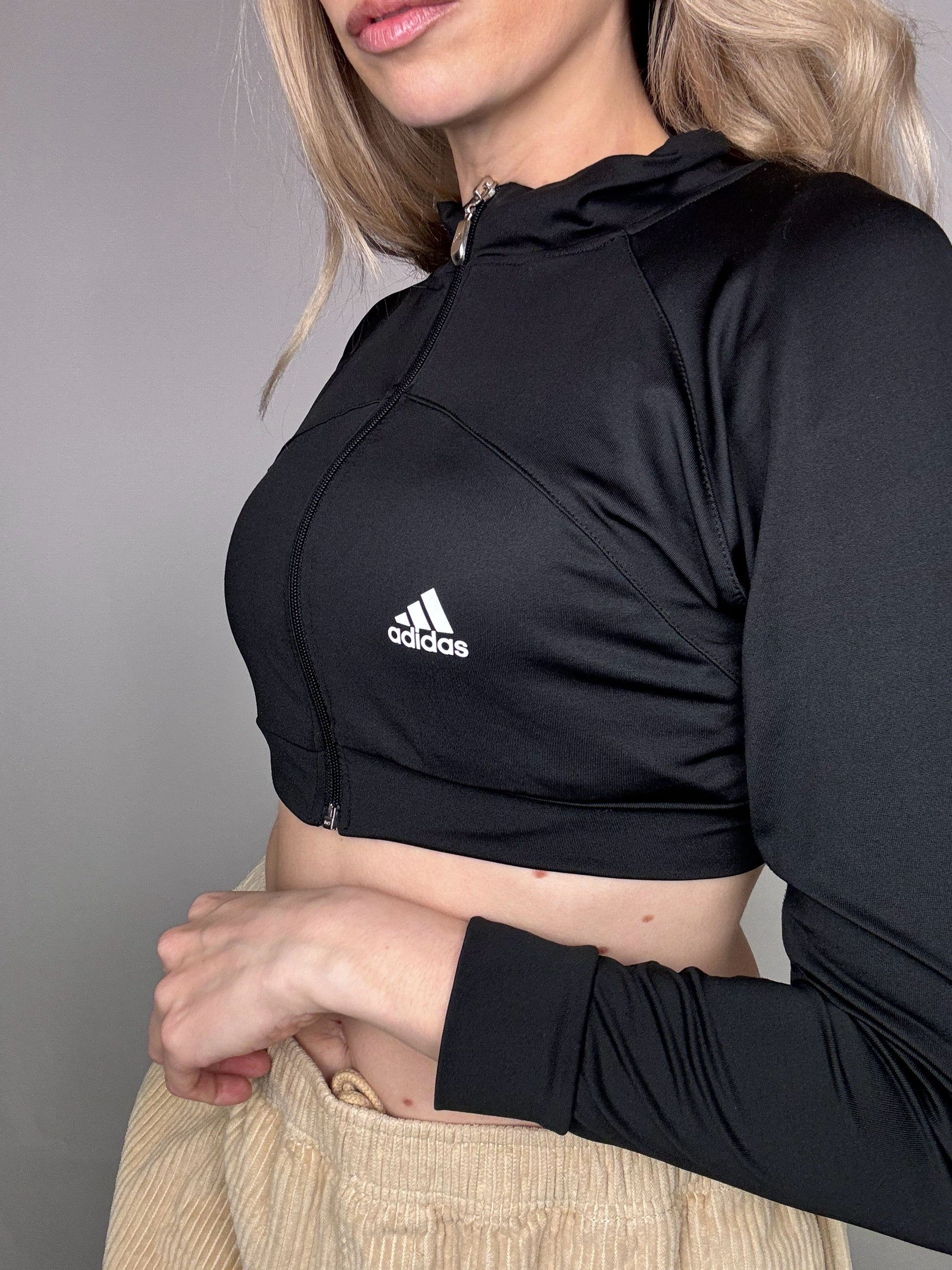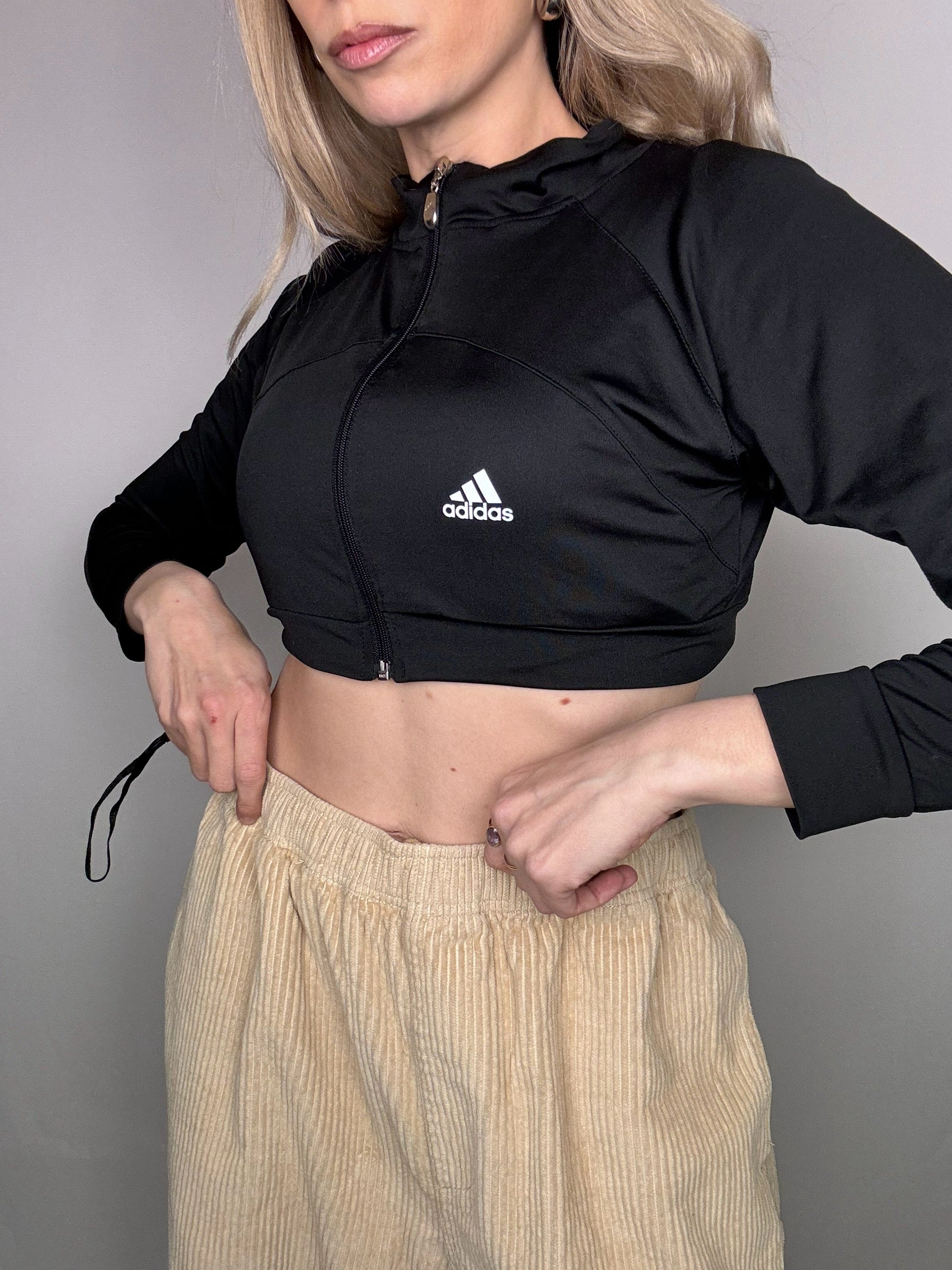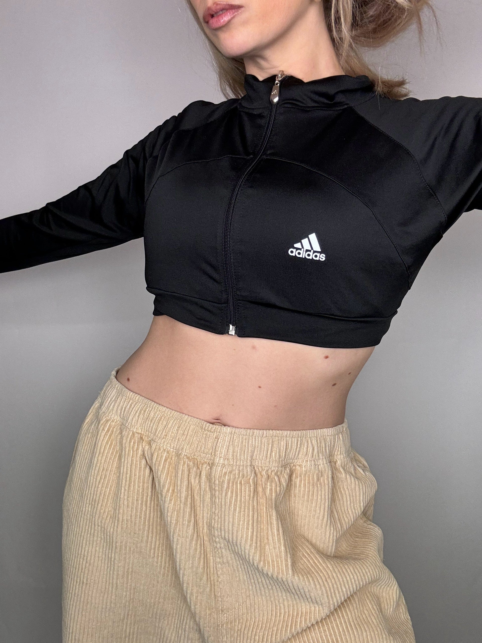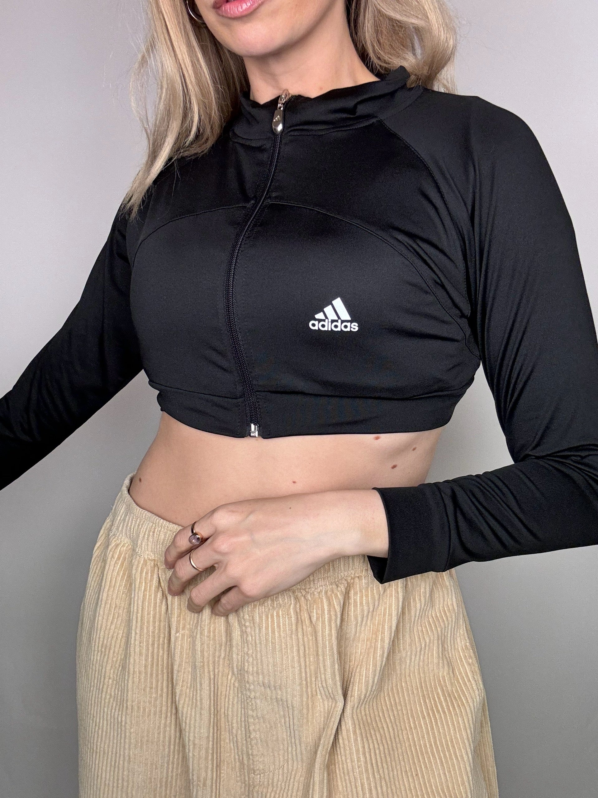 ADIDAS S Vintage Schwarze taillierte, kurze Sportjacke