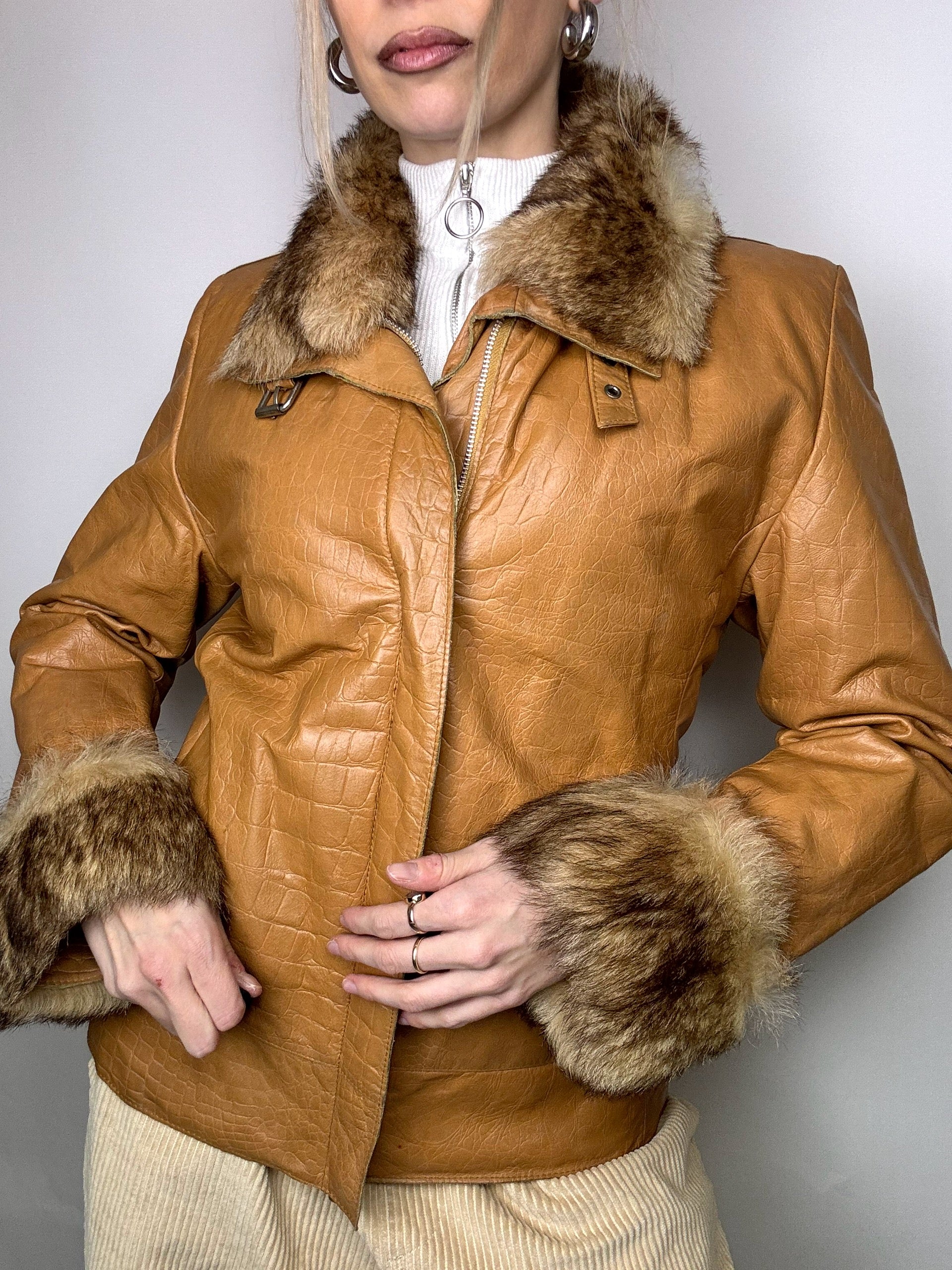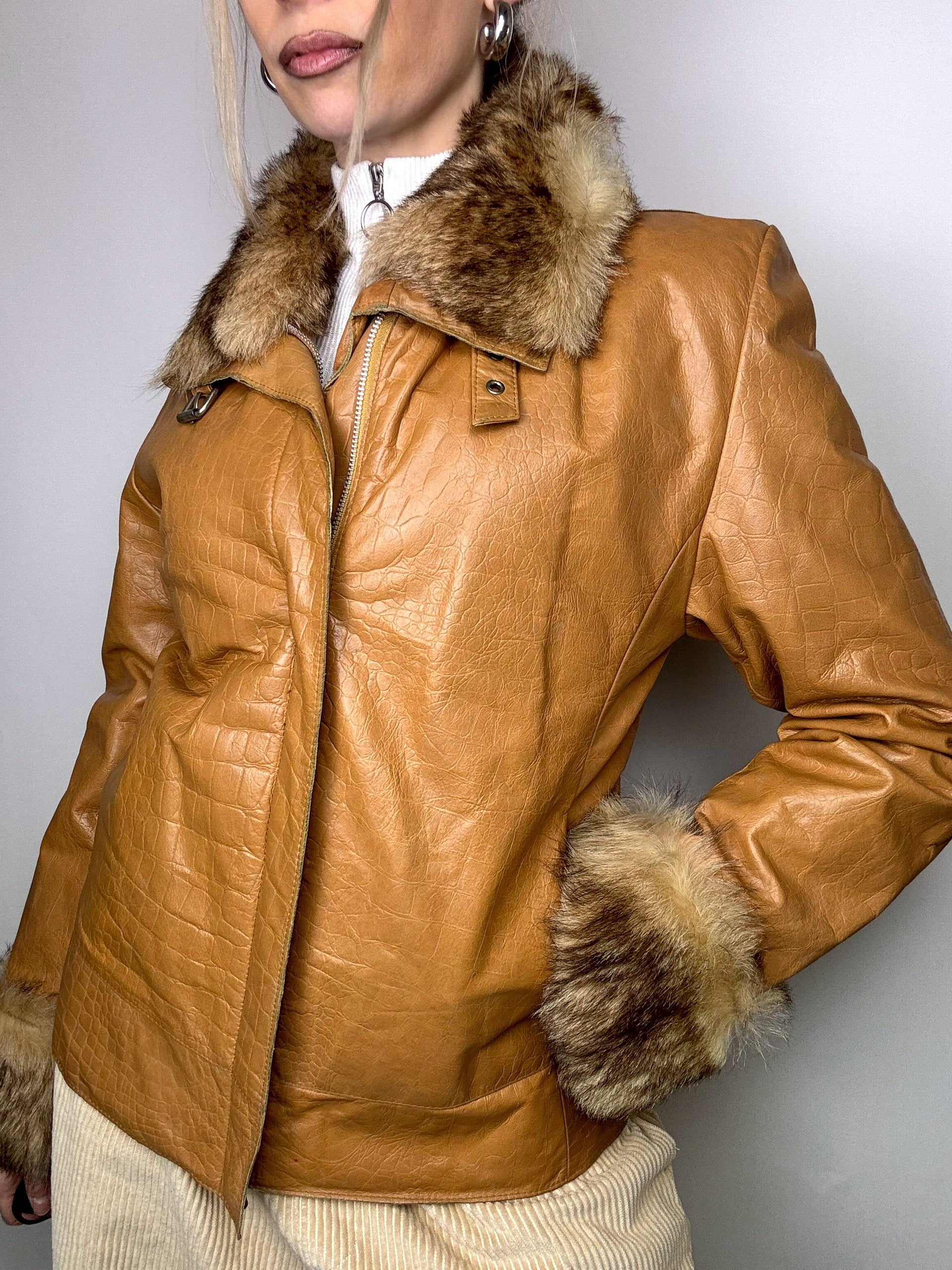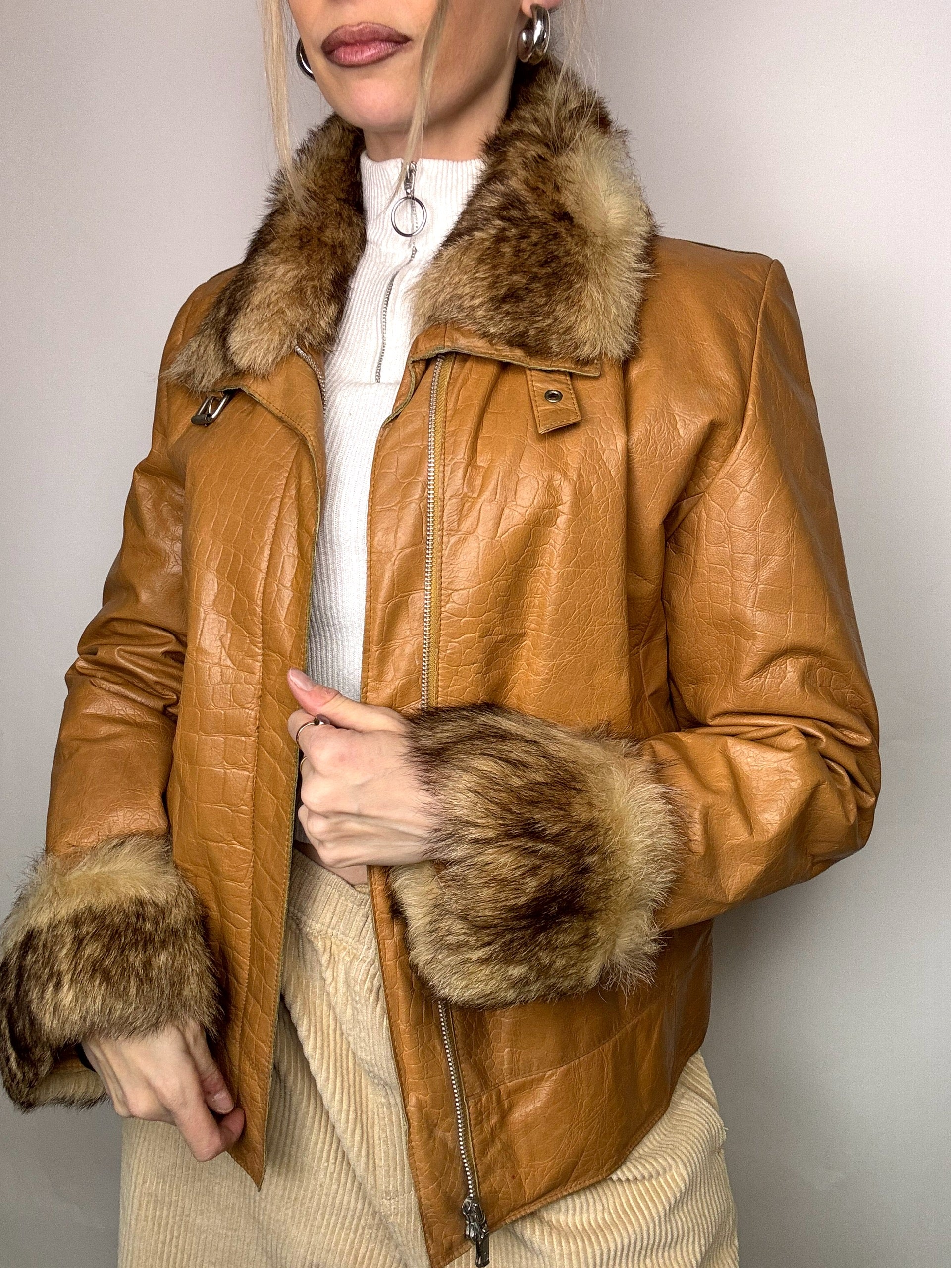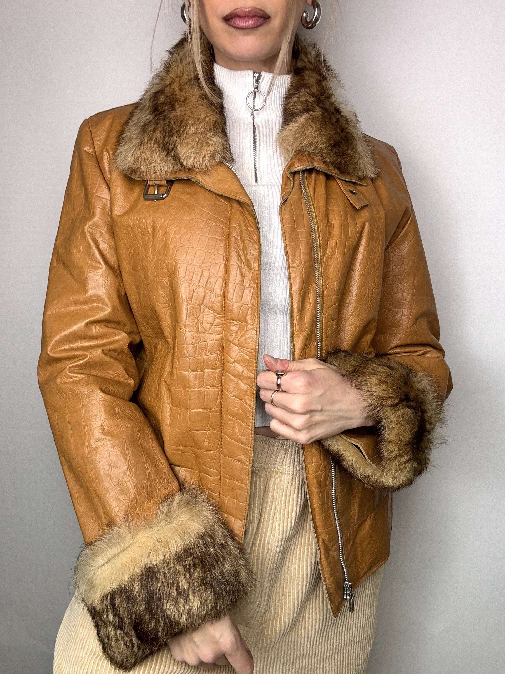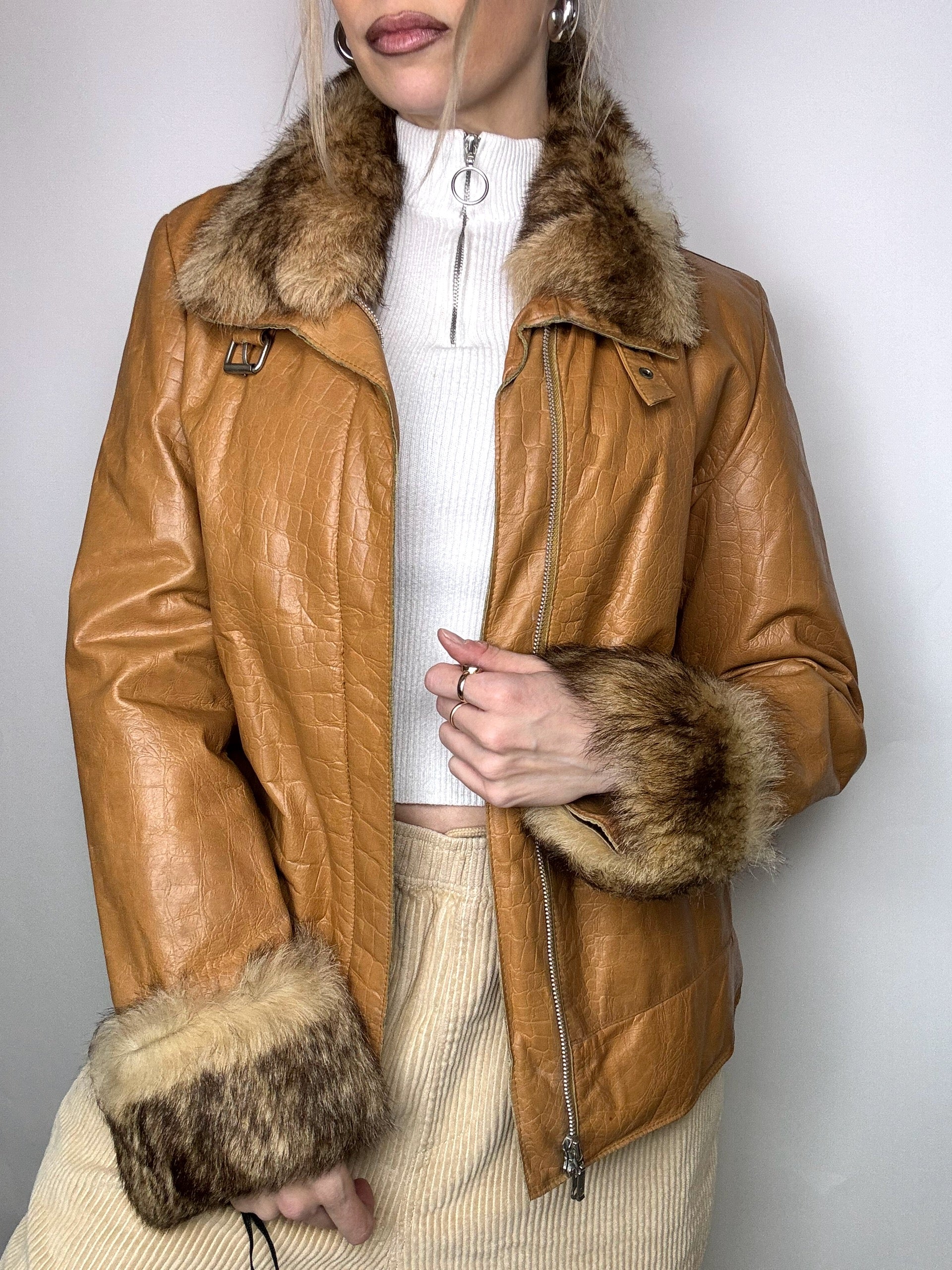 Sie ist unglaublich! Es ist aus Kamelleder gefertigt und hat einen gut sitzenden Schnitt, der den RIESIGEN Pelzkragen und die Ärmelenden betont ... Wir lieben diesen ultrafemininen Look, den es verleiht ... was für ein Charisma!