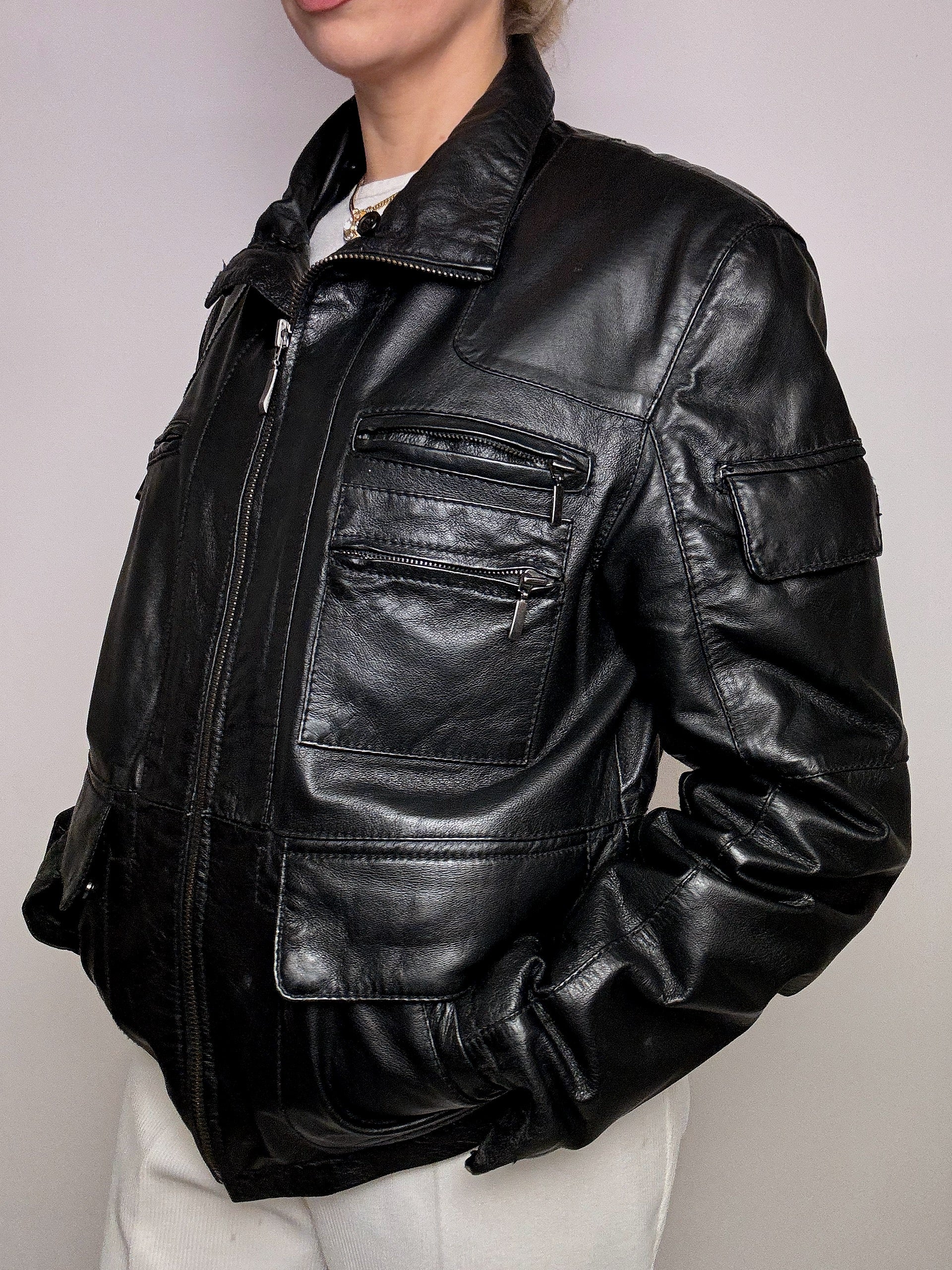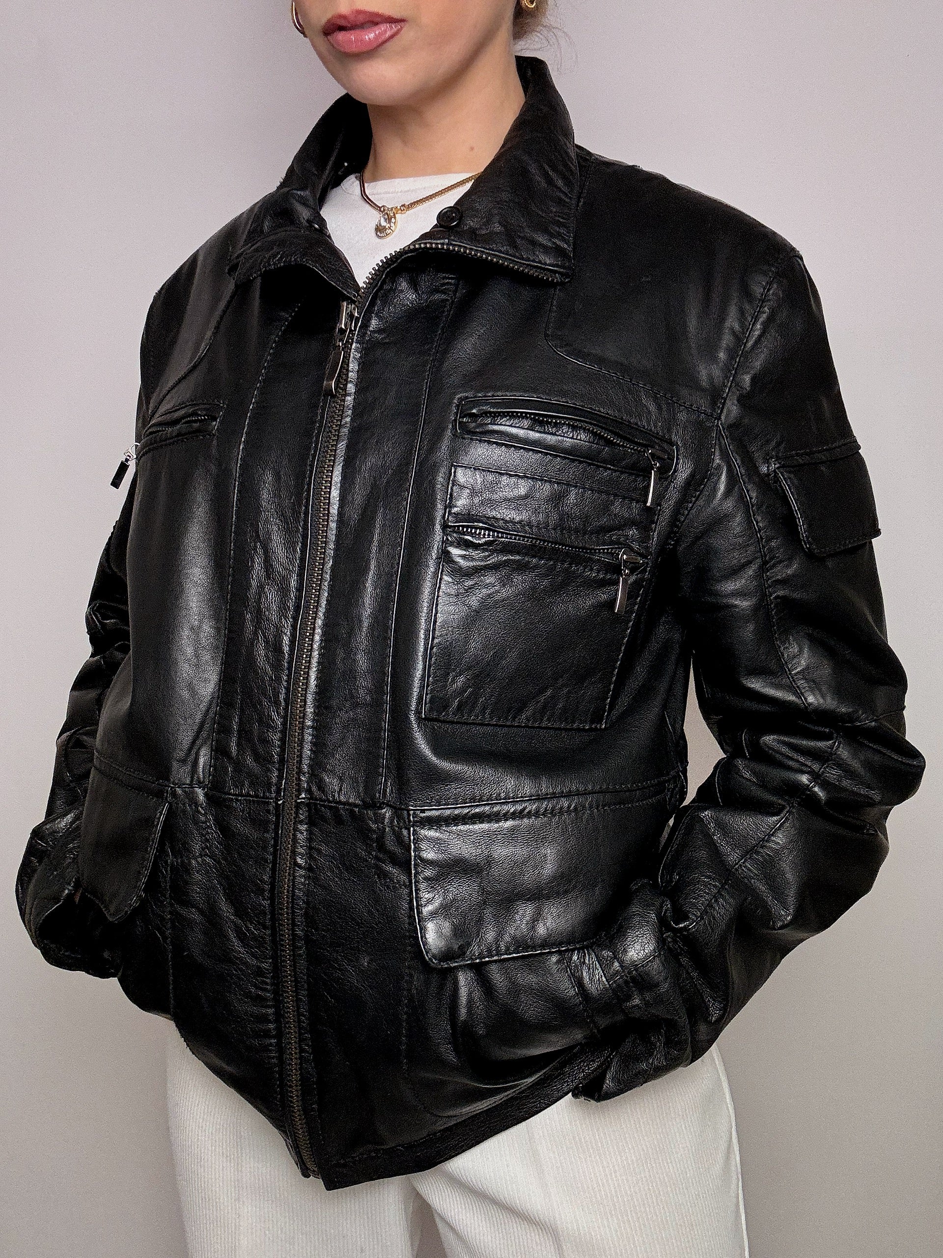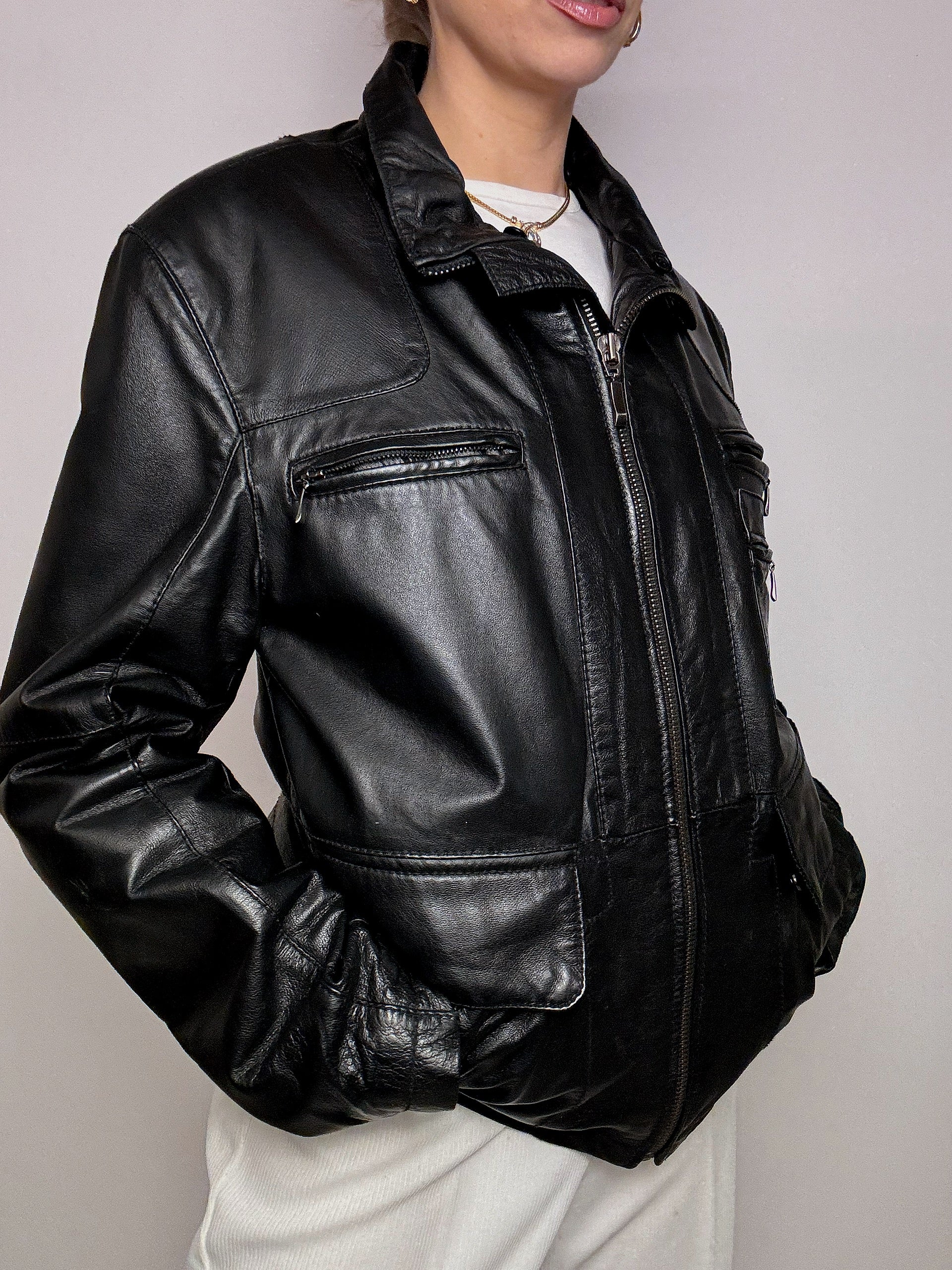 Klassischer gerader Schnitt aus glänzendem Leder, es hat diese leicht androgyne Seite, die wir lieben!