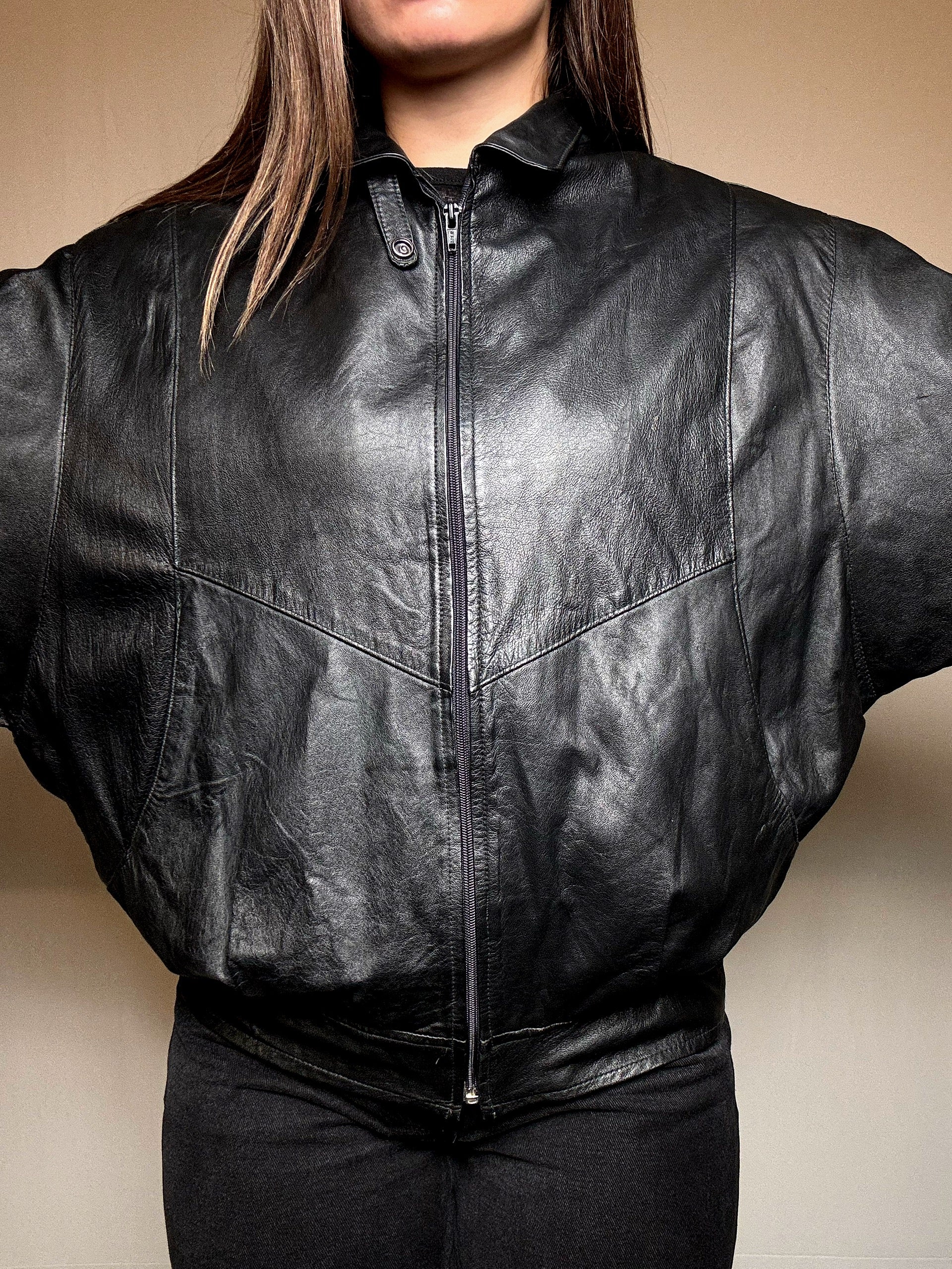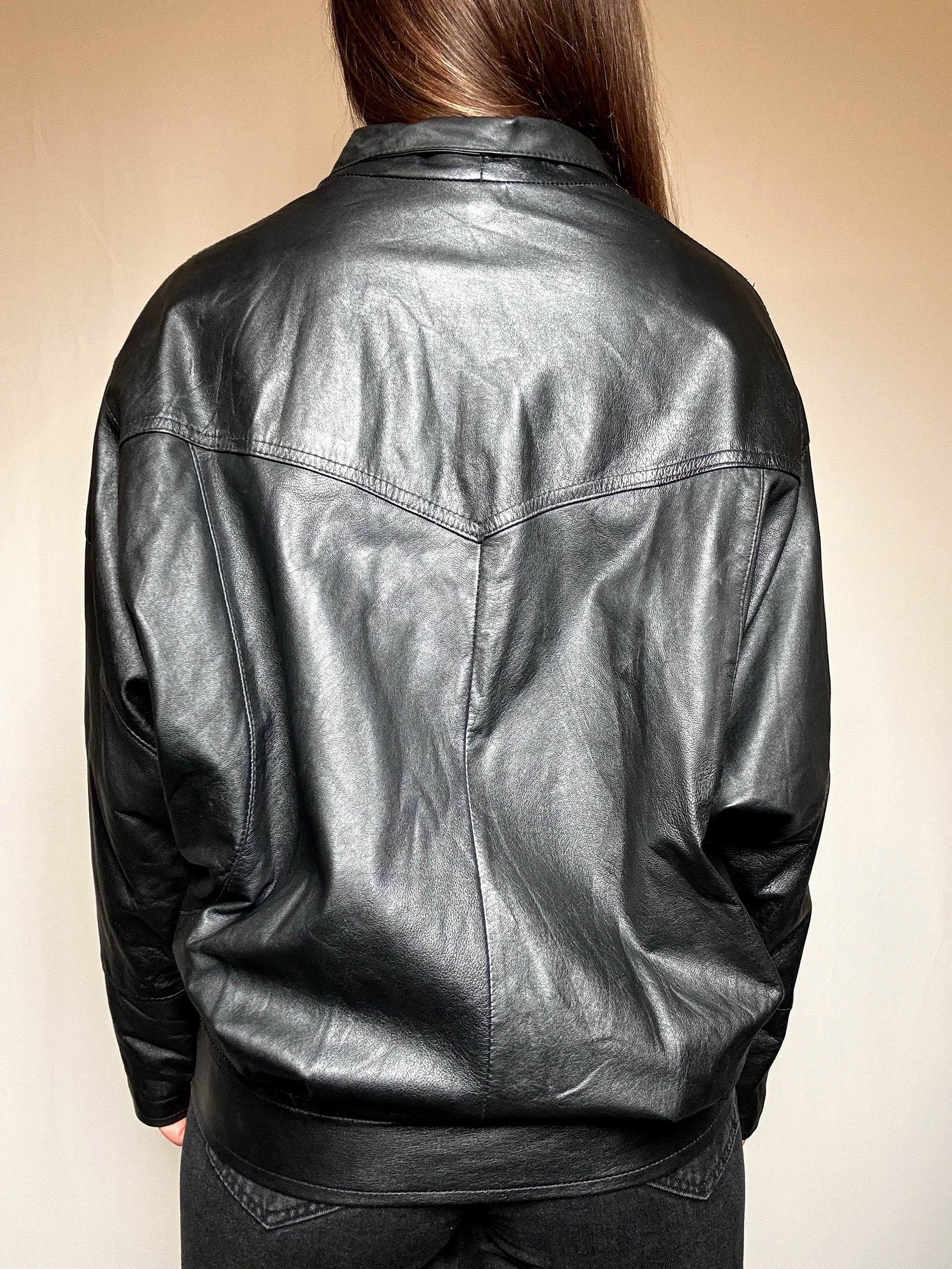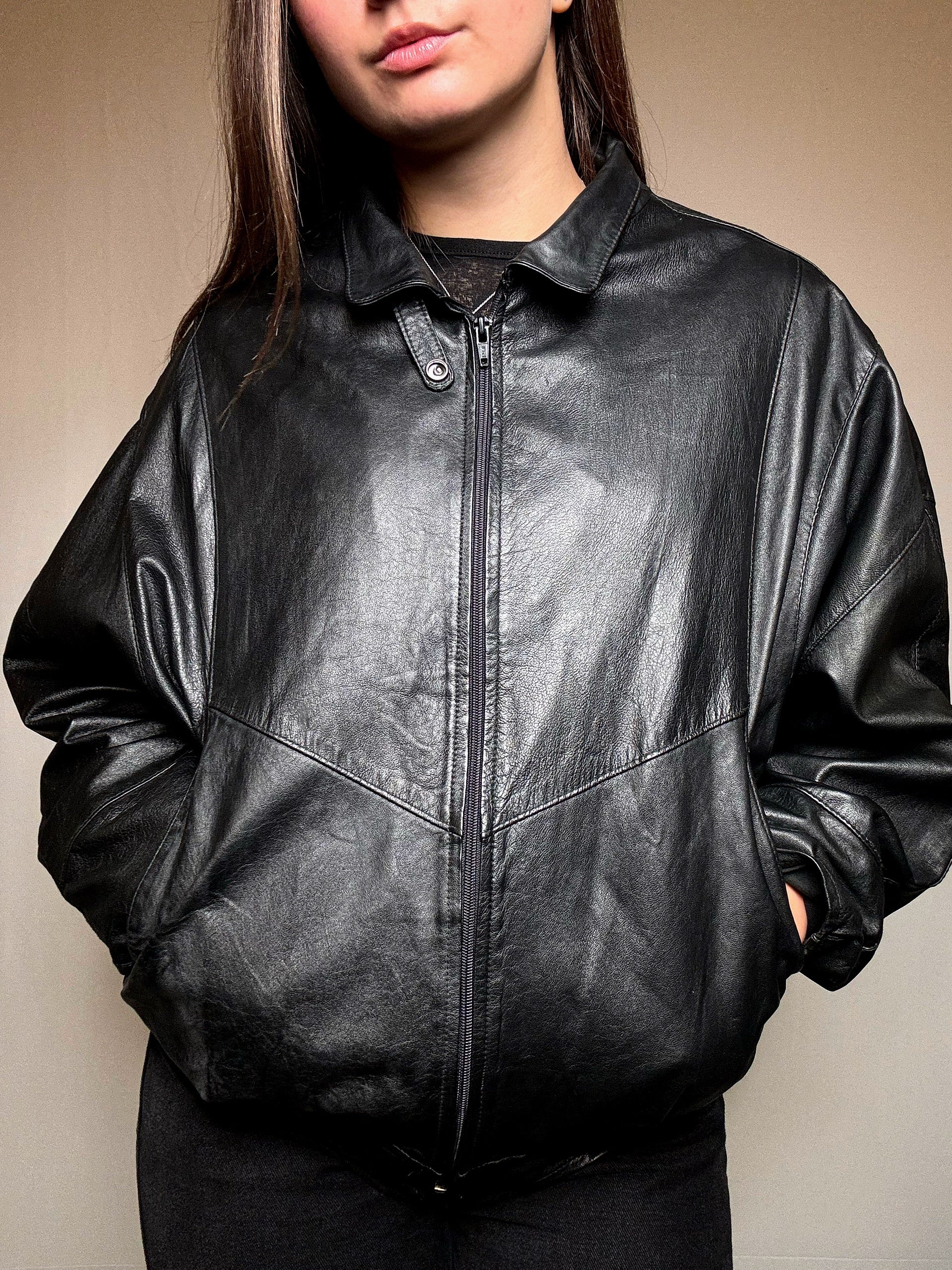 Blouson en cuir noir L vintage