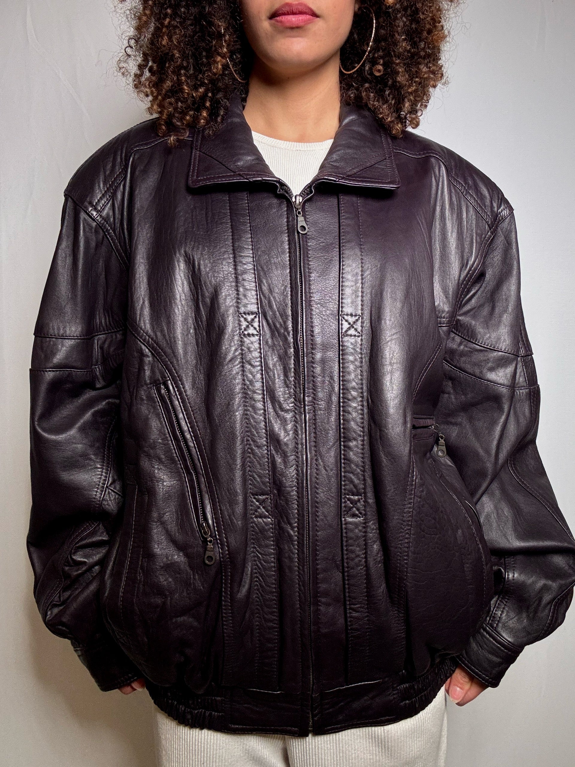 Bomber en cuir bordeaux XL vintage