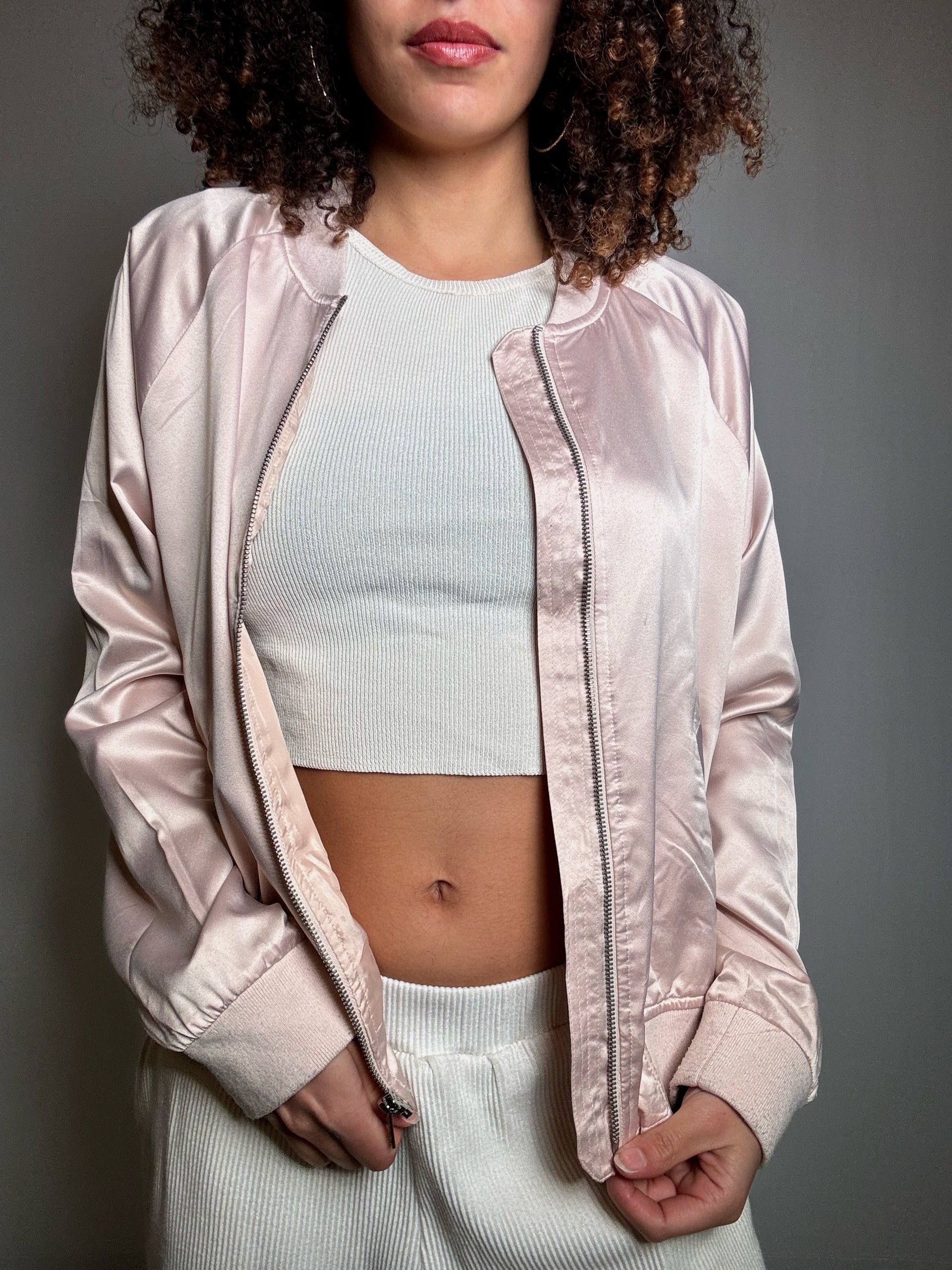 Bomber satin rose pale L vintage