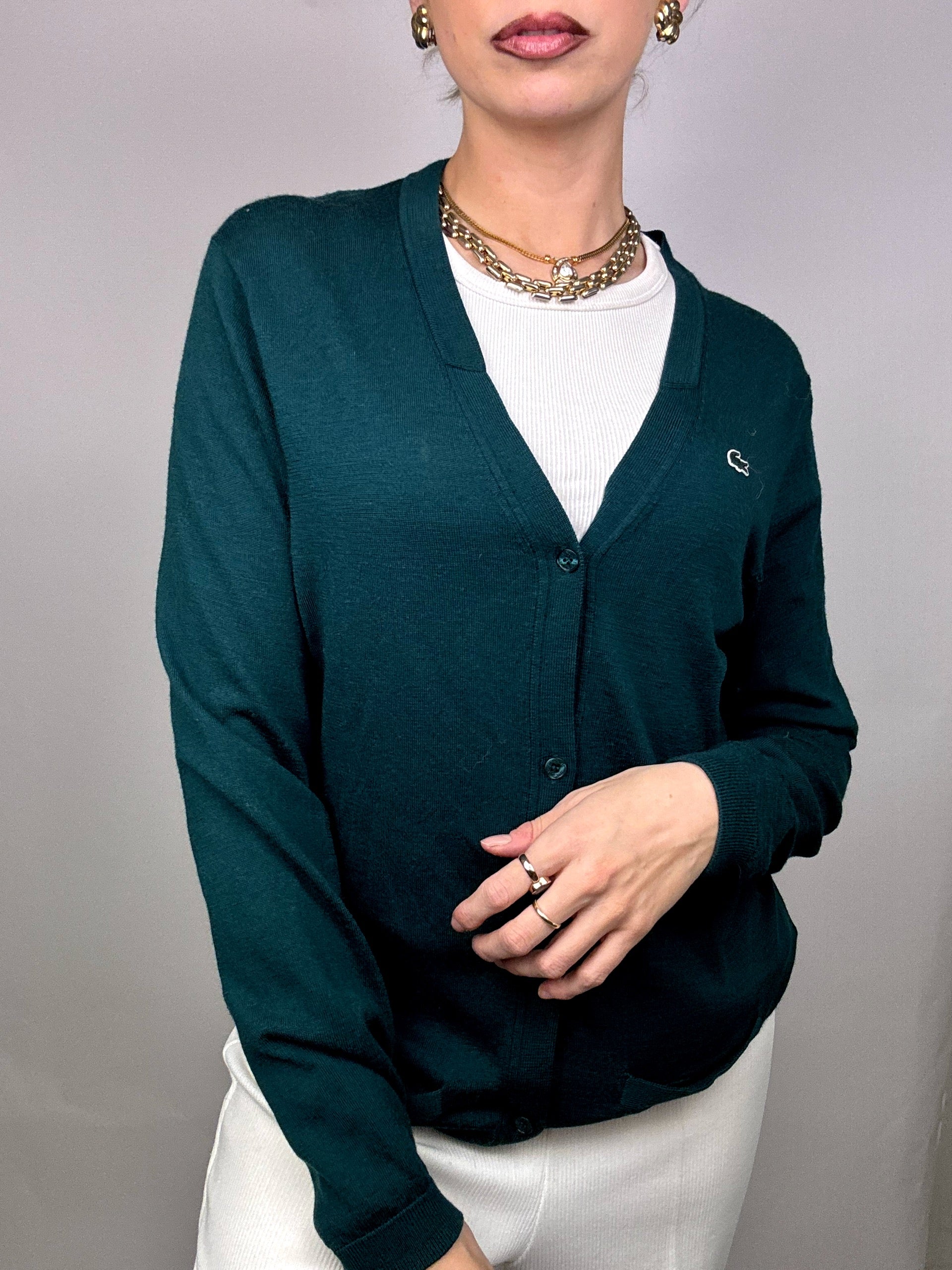 LACOSTE green merino wool cardigan M Vintage