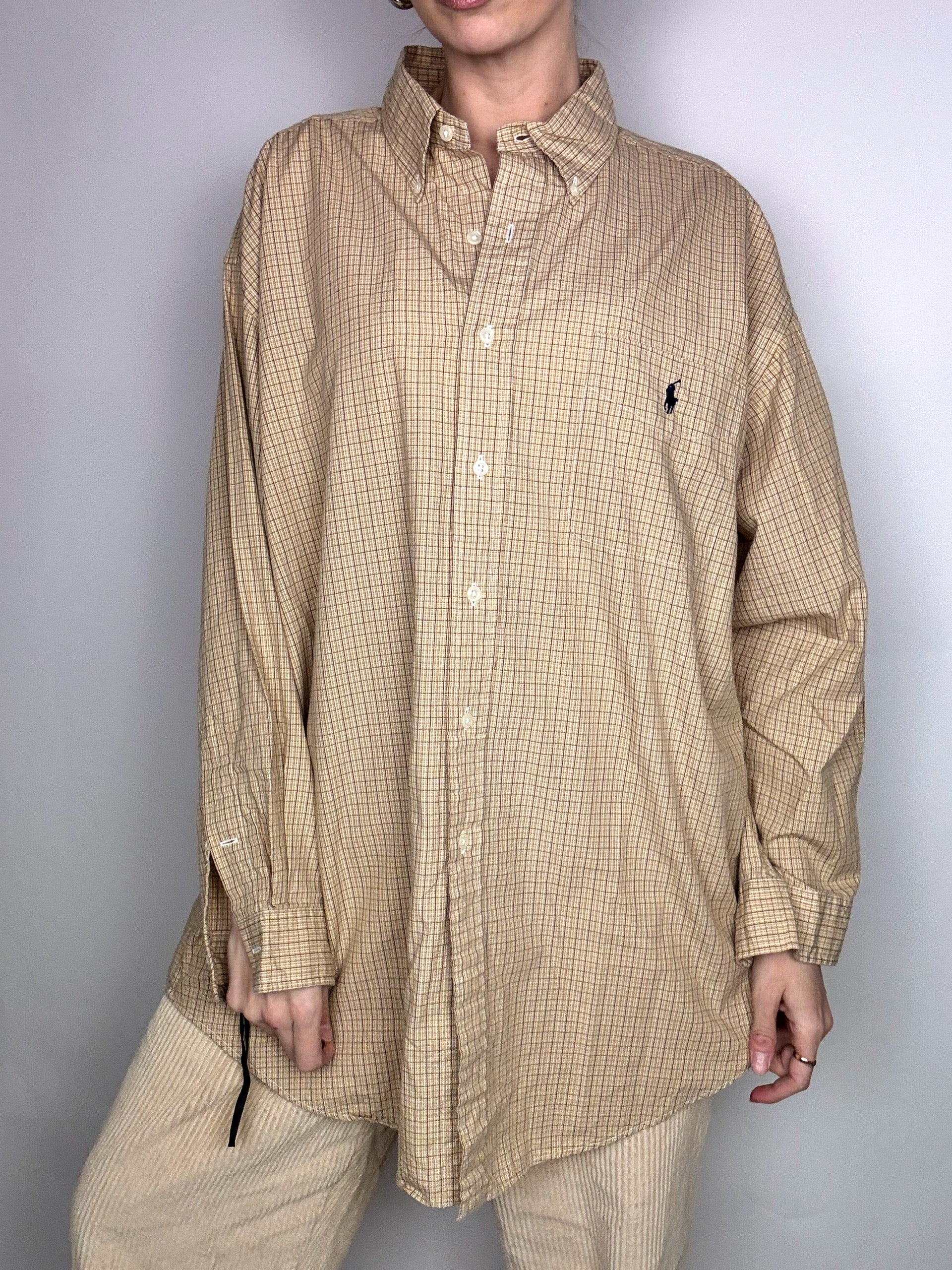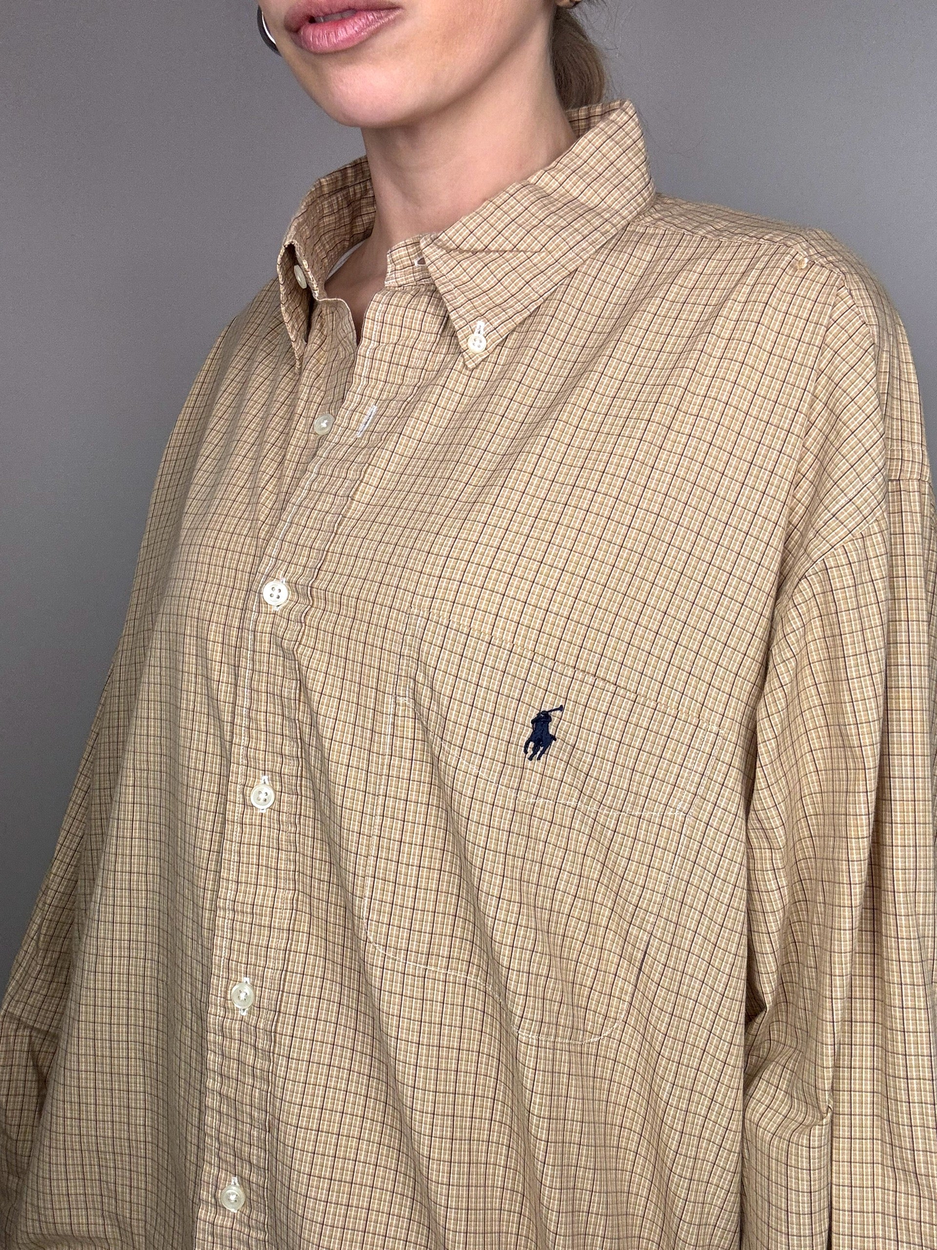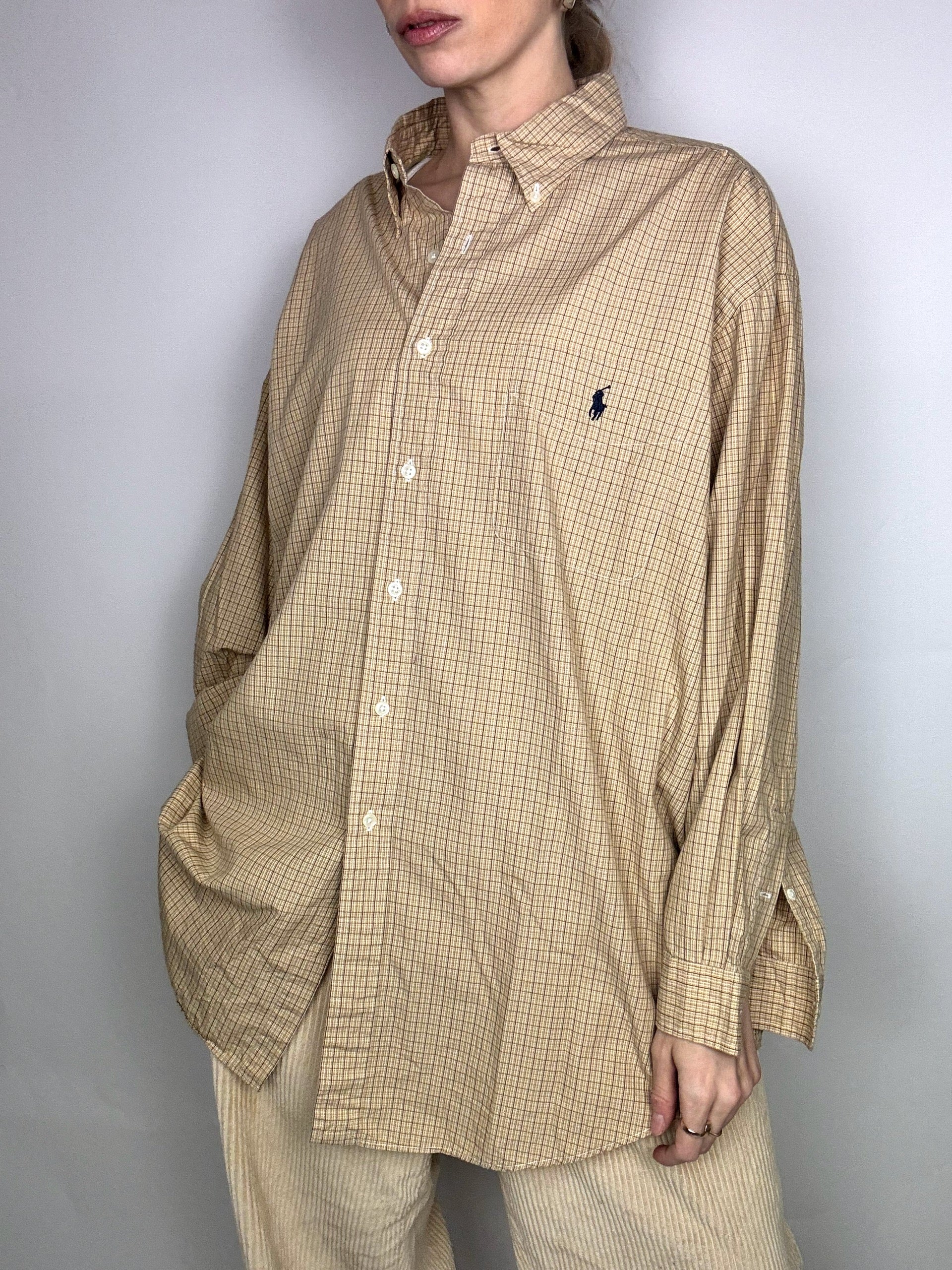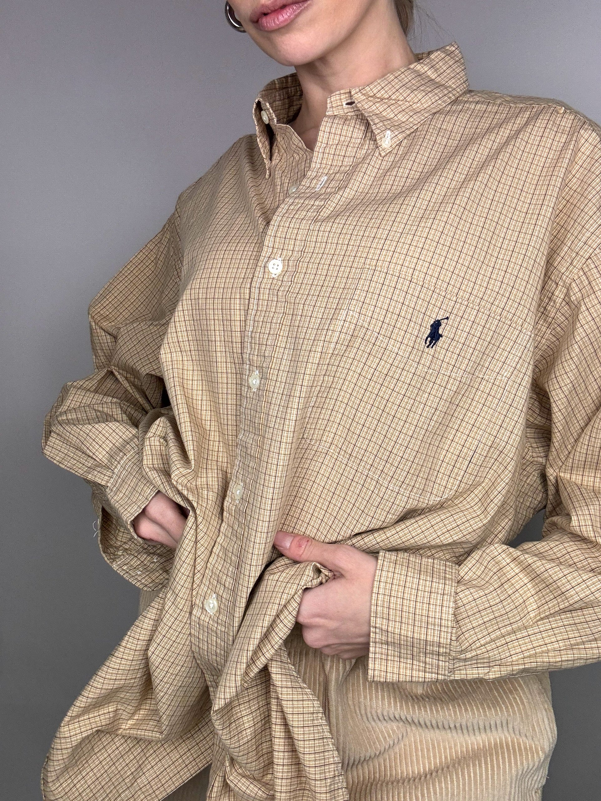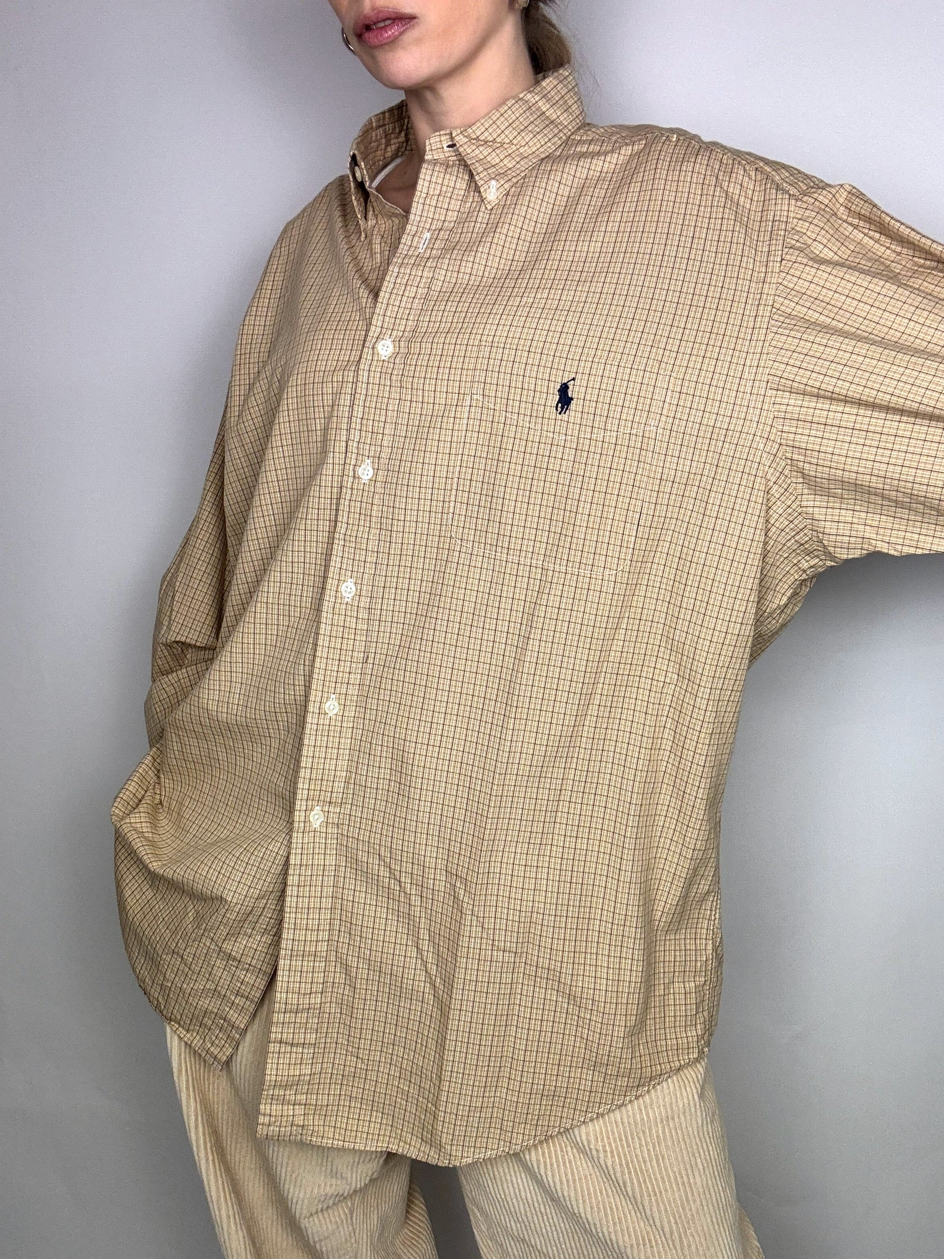 RALPH LAUREN Beige Plaid Shirt - Yarmouth XL Vintage