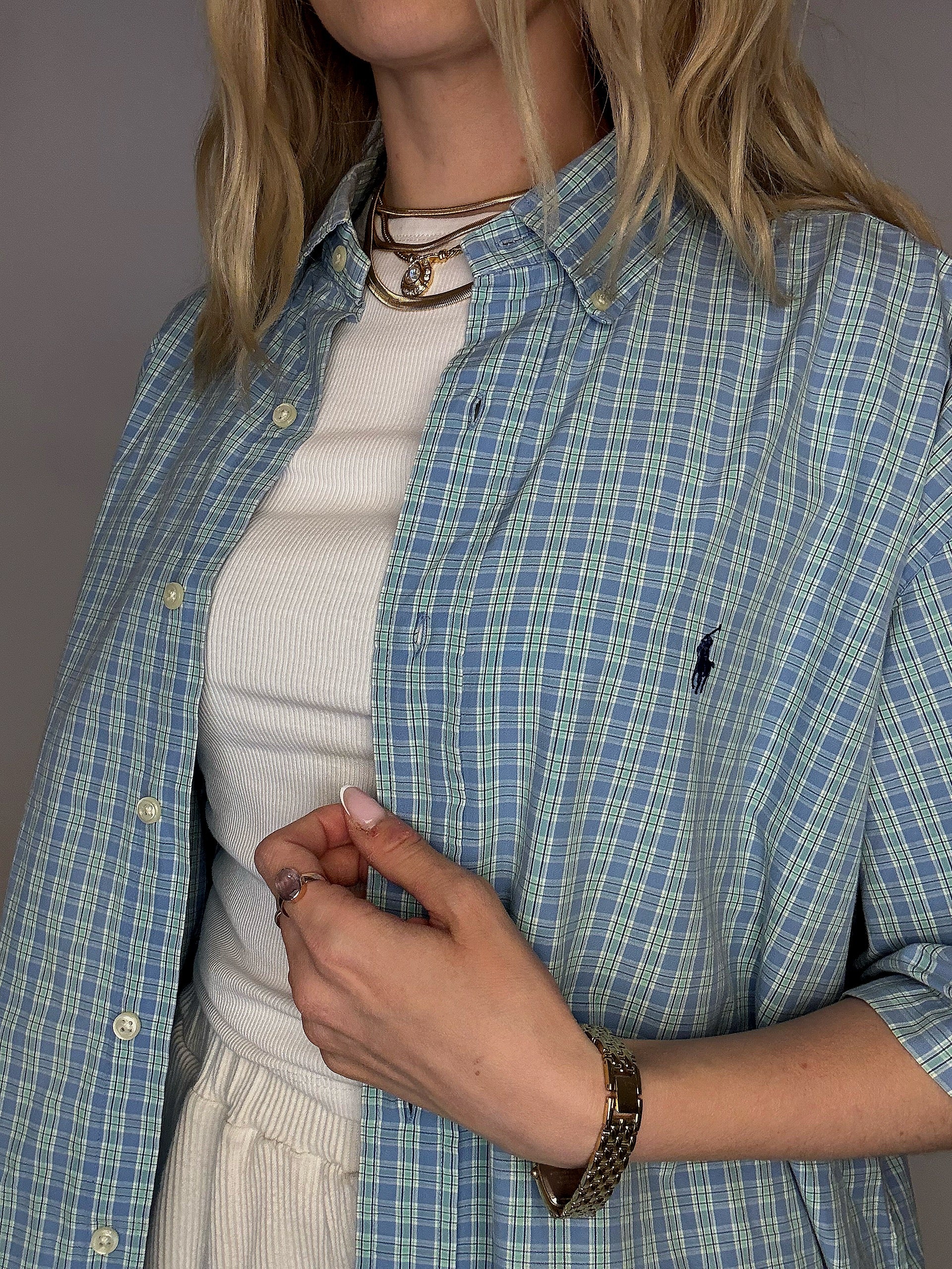 - in winter: layered under a sweater or a knitted cardigan, under a sweatshirt for a preppy effect!