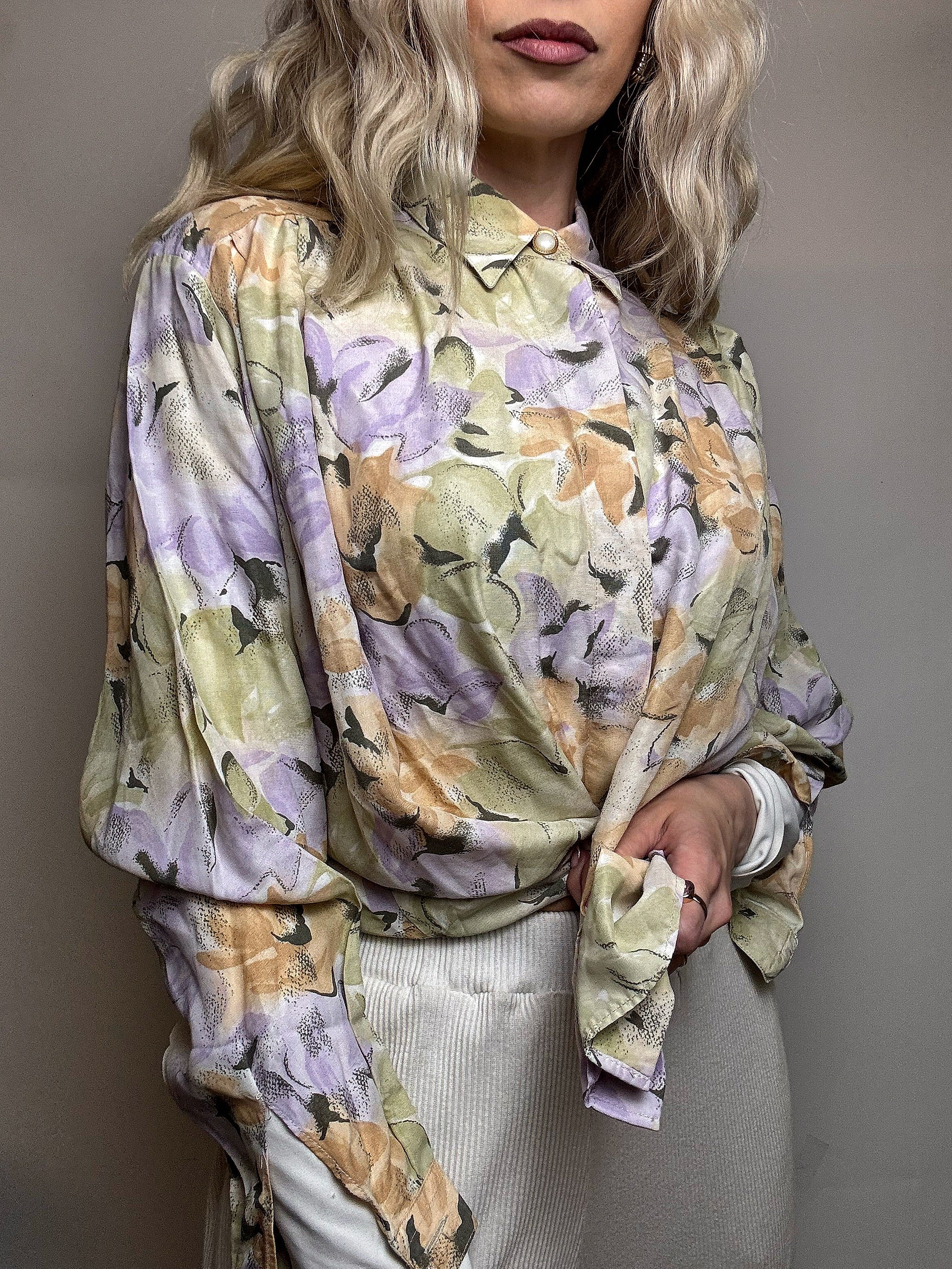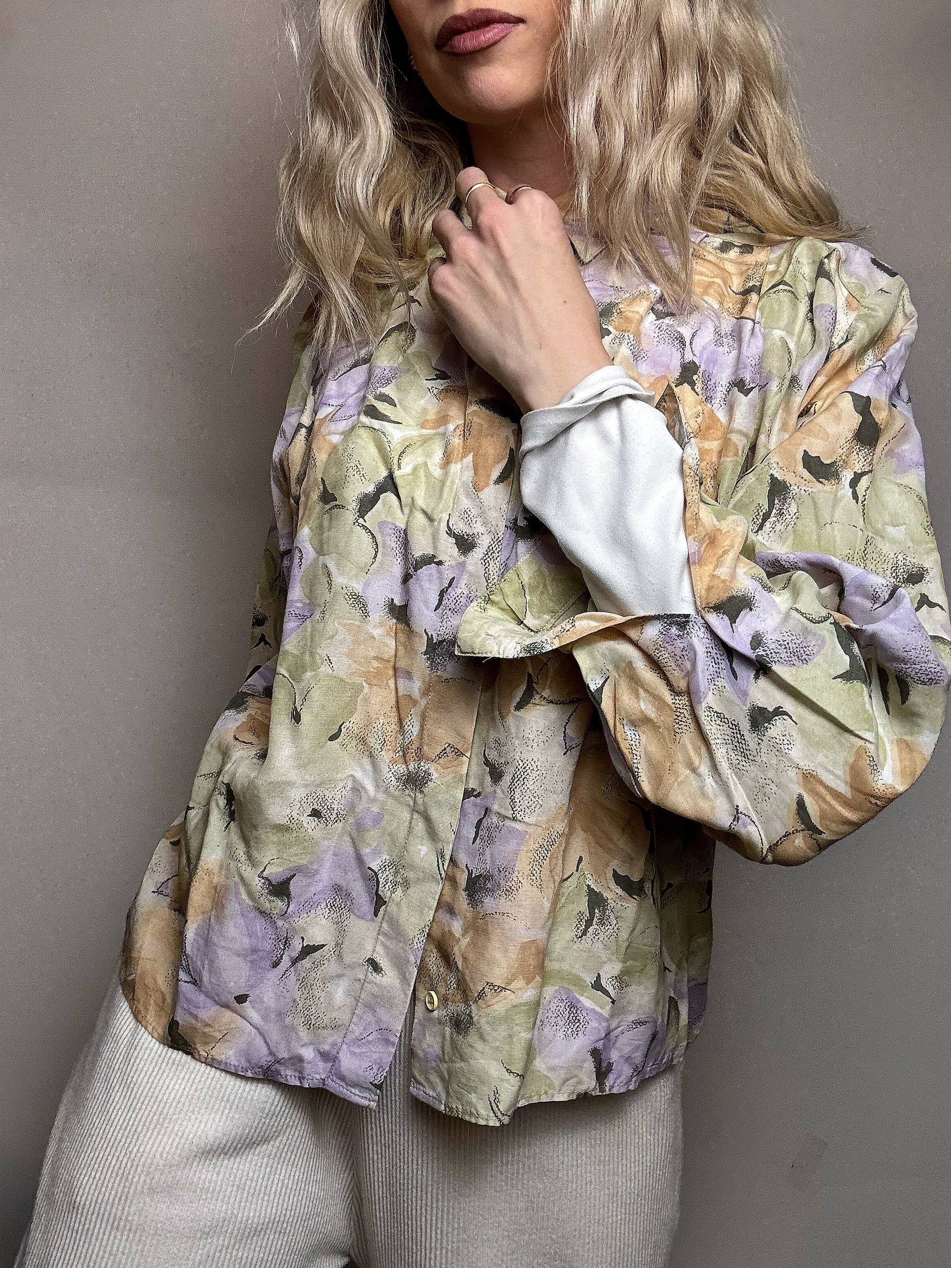 We love the bright colors and the instantly recognizable graphics! It's made of cotton and can be worn open over a white T-shirt and denim shorts or tucked into high-waisted pants...
