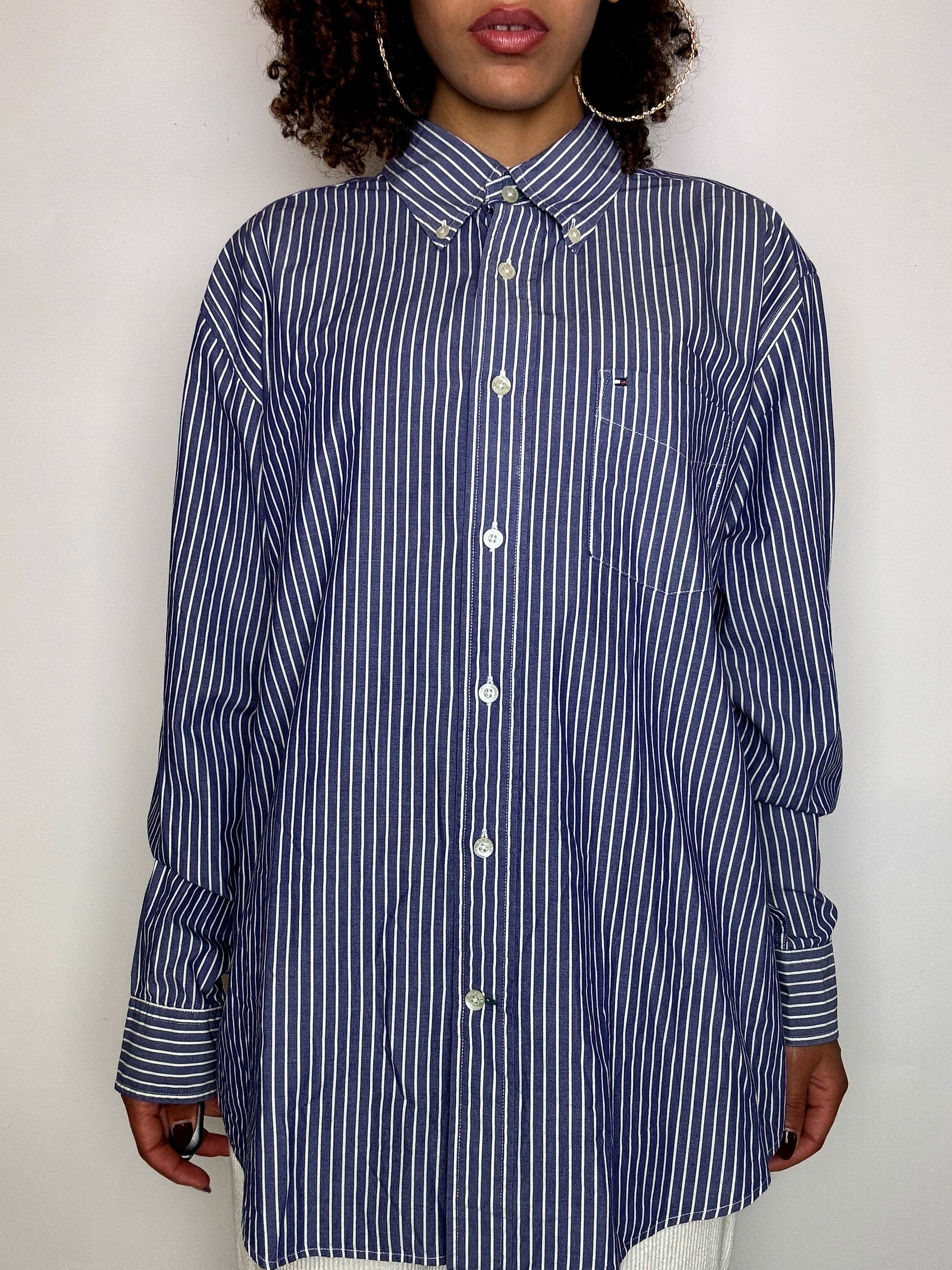 Vintage Navy and White Striped Shirt L/XL