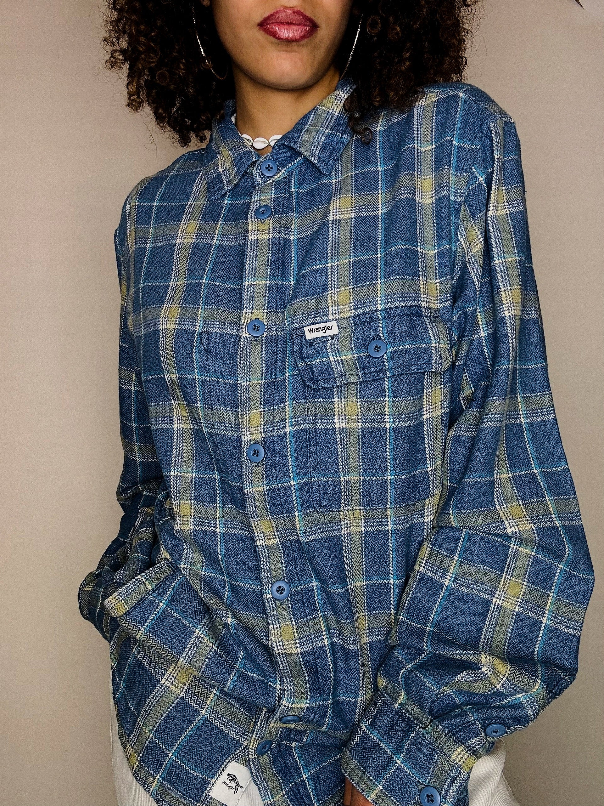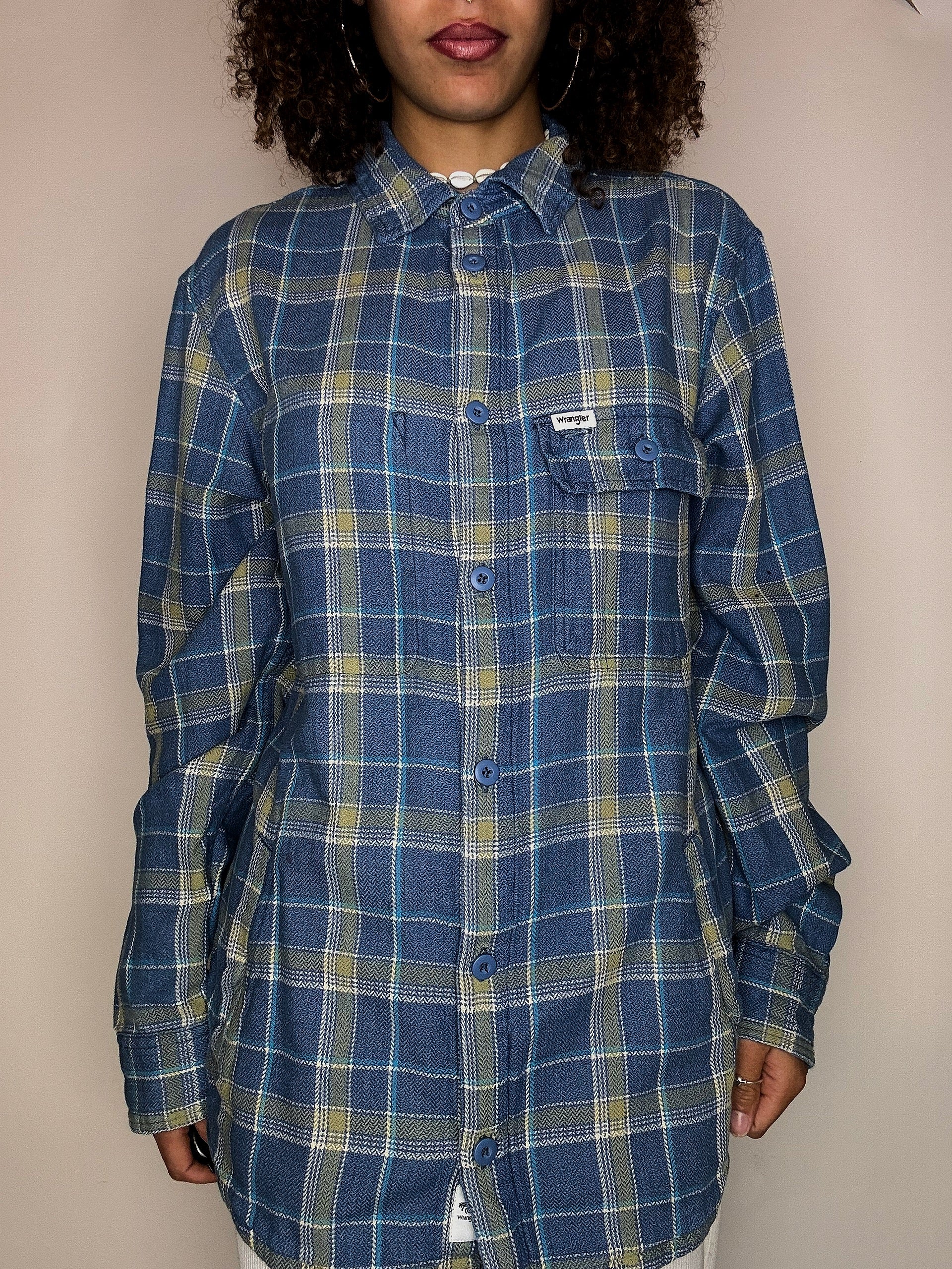Chemise épaisse à carreaux bleue WRANGLER M vintage